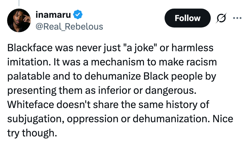 If I never see this man's face again, it'll be too soon. I'm the AAPI Culture Editor here at BuzzFeed, where I cover everything from trending news to pop culture to AAPI issues. druski’s skit is funny because erika kirk has treated her grief as a “comeback tour” and not like actual grief. a black face skit would be racist and unfunny because it stems from harmful stereotypes and white supremacy ideologies. but jake paul is too dumb understand this idea. https://t.co/92RbXyL2M1
