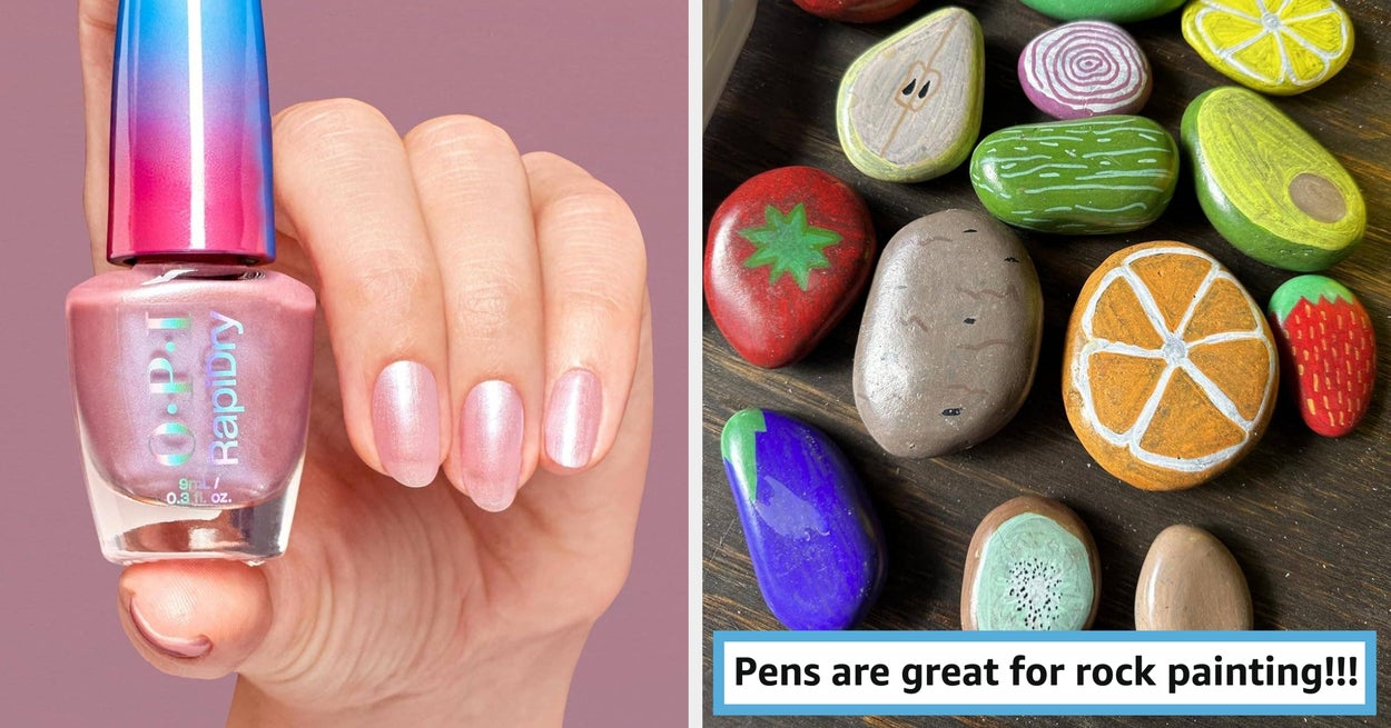 We hope you love our recommendations! While every product is independently chosen by our editors, BuzzFeed and our publishing partners may collect a share of sales or other compensation from the links on this page. You can read more about how our affiliate partnerships work in our Editorial Standards & Ethics Guide. Including the nose balm to make your dog's snoot extra boopable. Promising review: "These bird lights are cute and practical. They give off more light than I expected from a battery-powered lamp. The size is perfect for setting on a bedside table and is able to give off enough light to see pretty well without waking a sleeping partner. It has adjustable light levels, which are attained just by pressing the on button. Having the on/off button on the bird's head, easy to find in the dark, and makes it very easy to use. Although I have mine sitting on its base, the hanging loop is a nice option if you wanted to hang it up." —GSchwan Price: $14.98 (available in two colors and two-packs) Promising review: "My skin became super dry, red, and irritated from overusing a SA (salicylic acid) cleanser. After reaching out for help on a skincare thread, someone told me my skin barrier was likely damaged and recommended this product. I noticed an immediate, soothing difference, and after two months of consistent, daily use, my skin is almost back to what it was. I’ve always dealt with redness and I'm still implementing new products to try to help my skin even further and fix its sensitivity, but I know 100% that this lotion has helped. These and before and after pictures (above), and my empty af bottle because I finished the small one in a little under a month and repurchased the biggest size possible. I wish it were cheaper, but nothing else has helped my skin like this! And a little goes a long way. Thank you." —Berb Price: $13.99+ (available in three sizes) Promising review: "I have used this all day since I got it! Will be buying more!!! Excellent for stainless steel. I had some rust stains on some white ceramic dishes. Removed the stains effortlessly without damaging the finish. Far exceeded my expectations. Goes a very long way. Barely made a dent in the jar, which was priced reasonably. Sinks repel water and remain streak-free." —Jerithom Price: $15.99 (available in five scents) Psst! Wanna paint some rocks like the ones above? Check out this bag of flat river rocks that reviewers are loving. Promising review: "These pens are amazing and can be used by all ages! I bought some rocks on Amazon and had a fun night with friends just panting rocks for a rock garden. The paint dries quickly, which is nice. Oh, and if you mess up, just paint over it. There are a lot of colors with 2–3 shades per color, plus some metallic colors, too. The double-sided function allows you to really make your designs look amazing! It’s easy to write with them as well." —Lindsay K. Read more about the skincare benefits of caffeine at the Cleveland Clinic. Promising review: "These are my all-time favorite eye patches. They are the only patches that I can walk around my house while I’m wearing them, and they don’t budge. The jelly essence feels so awesome on my eyes, and I even use it on my smile lines and upward on the sides of my cheeks. They are well worth the money, and I will always use these. The fact that they are clear and you can’t see them is the icing on the cake. No one can even tell I’m wearing them, and the glow afterward is unreal. It lightens up my under-eye circles, and has significantly helped my fine lines and wrinkles." —Megan F. Promising review: "I don't like night lights because they take up the wall outlet, so this was the perfect solution. I put it in the guest bath and at night with the bathroom door open this provides just enough light to guide a person to the bathroom without blinding them. I ended up putting two on my hallway switches as well. What a great product." —LMK Price: $22.98 (available in three sizes and colors) Promising review: "Color is fantastic if you want a true pale pink. Not streaky when first coat was applied. Went on smoothly, coverage was excellent. The polish hardened fast. I don’t know what I was expecting…… but I’m sold on the OPI rapidry nail polish." —Dee Price: $9.99 (also available in a variety of other shades) Promising review: "I’m not a nails or salon type person, but after showing someone my new ring, I was told how bad my nails looked. I brushed it off, but kept thinking about it later. I tried these and was impressed with how natural they looked after I trimmed and shaped them. They were easy to apply for a novice like me and have stayed put for over a week with just the adhesive tabs." —Sara Price: $14.97 (also available in several other shades) Promising review: "I had a C-Section, and these undies were my best friends. Super comfortable, stretchy, nice fitting, harmless, scar-friendly. I used these with night pads with wings, like using regular underwear, and I never leaked. Definitely buy these! PS: You can even wear these two times max. Afterwards they usually tear when removing the maxi pad." —Shary P. Price: $12.97+ (available in women's sizes S–L and two colors) The kit comes with one scrubber and two shower and tub lemon foaming Magic Erasers. Promising review: "Wow! What a time saver. Once the Magic Eraser is wet and you scrub a couple of times on the shower wall, you can feel it start to glide once it cuts through the shower grime. My shower glass window is super clean, which is difficult for other products to do. I am excited to have a clean shower with minimal effort and in an all-in-one product. This will definitely be a shower and tub staple for my household!" —Kris Price: $13.58 (and you can pick up a pack of the foaming Magic Eraser refills here). Promising review: "I absolutely love this shower cap! My hair is mid back length and usually straight. I used to dread showers because regular 