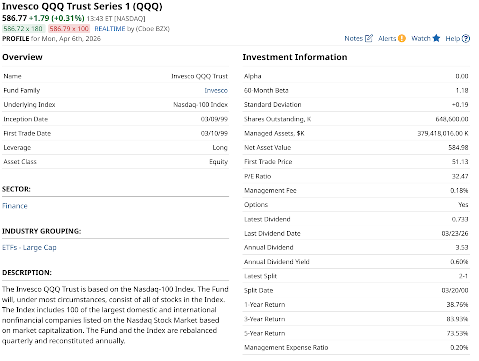 How iconic is the Invesco QQQ Trust Series 1 (QQQ)? I have two different answers. First, its ticker symbol is right in the name. Ever seen that before? Neither have I. The other one: It has had its own line of TV commercials. That's big time, eh? But QQQ has had the Nasdaq 100 Index ($IUXX)-tracking business largely to itself, since it first debuted in 1999. That is changing, and quickly. Nike’s Real Problem Isn’t Sales: It’s Relevance Why Are ORCL Stock Investors So Excited About Oracle Layoffs? Dell Announced Major AI-Driven Layoffs in March 2026. What Comes Next for Dividend-Paying DELL Stock? Stop Missing Market Moves: Get the FREE Barchart Brief – your midday dose of stock movers, trending sectors, and actionable trade ideas, delivered right to your inbox. Sign Up Now! On Monday, BlackRock filed a preliminary prospectus for a new Nasdaq 100 exchange-traded fund (ETF), set to trade under the ticker IQQ. This isn't just another fund launch; it is a direct assault on Invesco’s multi-decade fortress around the Nasdaq 100 Index, a space Invesco has dominated almost exclusively with QQQ, now with around $375 billion in assets under management. For investors, this is the financial equivalent of a heavyweight title fight. So, what is IQQ walking into the ring with? QQQ trades at 32x trailing earnings, so it is not cheap, historically speaking. It is up about 84% the past three years. However, as we see in the table below, the five-year gain is 73%. Translation: It has been an uneven half-decade for QQQ. The Nasdaq 100 is a top-heavy index, which has led to the creation of a top-heavy market, given its popularity. Here are the top holdings, filled with household names in technology, alongside a smattering of other sectors. QQQ’s long-term chart shows that it is certainly elevated. But it is not yet rolling over on a long-term basis. For a long time, Invesco was the only manager licensed to offer a pure U.S.-listed ETF tracking the index. By breaking this exclusivity, the Nasdaq exchange is effectively democratizing its most famous benchmark. BlackRock, the world’s largest asset manager, doesn't enter markets to play second fiddle. They enter to dominate on scale and liquidity. BlackRock isn't just launching a clone. It is launching a challenger designed for the current high-speed, high-liquidity environment. By using the ticker IQQ, BlackRock is signaling a product that will likely focus on institutional efficiency. While the original QQQ is a unit investment trust (UIT) — a somewhat clunky, older structure that cannot reinvest dividends or lend out securities as easily as modern ETFs — BlackRock’s IQQ will likely be a more flexible, modern vehicle. Invesco’s QQQ carries an expense ratio of 0.20%, while its mini version, the Invesco Nasdaq 100 ETF (QQQM), sits at 0.15%. BlackRock is the king of the "low-cost core" in the form of its iShares Core series. The industry expectation is that BlackRock will price IQQ at a level that forces Invesco to choose between protecting its profit margins and defending its assets. If IQQ launches at 0.10% or lower, we could see a massive migration of capital as advisors and institutions swap out the expensive QQQ for the cheaper BlackRock alternative. Why would Nasdaq allow BlackRock in now, after decades of loyalty to Invesco? As artificial intelligence (AI) and Big Tech face increasing volatility and energy-led margin pressure, the exchange needs the world's largest liquidity provider (BlackRock) to ensure the Nasdaq 100 remains the global standard for growth exposure. For the tactical investor, the arrival of IQQ is a major win. It introduces competition to a sector that has been stagnant for years. But it also serves as a warning: When the two biggest titans in finance start fighting over the same basket of 100 stocks, it may mean we have reached peak concentration. And that could spell a market top, before long. Rob Isbitts created the ROAR Score, based on his 40+ years of technical analysis experience. ROAR helps DIY investors manage risk and create their own portfolios. For Rob's written research, check out ETFYourself.com. On the date of publication, Rob Isbitts did not have (either directly or indirectly) positions in any of the securities mentioned in this article. All information and data in this article is solely for informational purposes. This article was originally published on Barchart.com