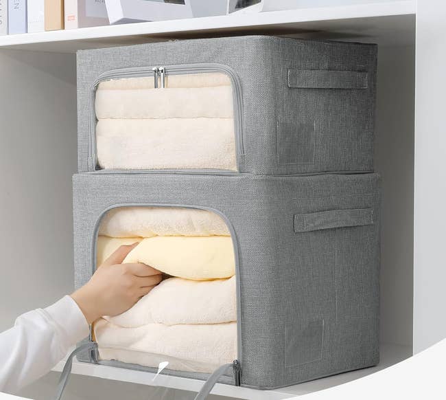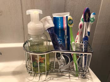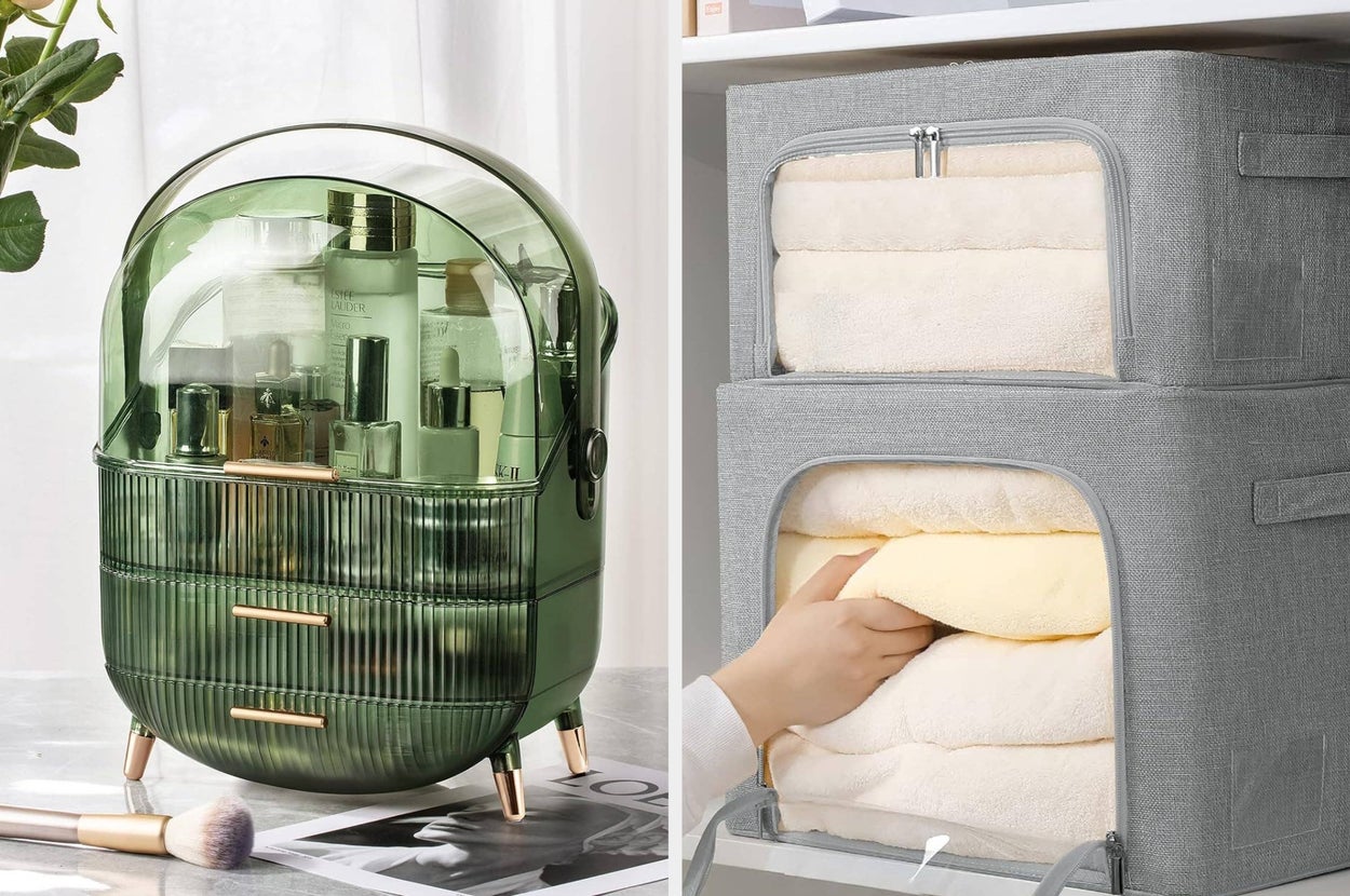We hope you love our recommendations! While every product is independently chosen by our editors, BuzzFeed and our publishing partners may collect a share of sales or other compensation from the links on this page. You can read more about how our affiliate partnerships work in our Editorial Standards & Ethics Guide. Yes, we even found clever storage solutions for your Q-Tips and toilet paper. Promising review: "These are the nicest storage bins/containers I've ever used... The inside has metal support pieces that you just pull out to make the structure of the container. I really like the zipper on top and the sides where you can access the contents both ways. The zippers are smooth and sturdy and there is a viewing window on each side where the handles are and a large clear window on the top with the zipper. These are large enough to hold blankets or comforters, and many others items of other sizes as needed. They look nice and are so well made, I can see these holding up very well for many years and I would reorder again." —Villagemom Get a pack of two from Amazon for $26.99+ (available in five sizes and four colors). Promising review: "The shelf installed in a snap. It has two sturdy magnets that hold it securely onto the slightly rounded back of my stove. I felt comfortable setting a full jar of honey on it, and I haven’t seen it move at all as I have been cooking. I have limited space in the kitchen, so I’m really happy to have an additional place to set things I need frequently. It doesn’t look like an add-on; it looks like part of the stove. I’m really happy with it!" —Sylvia J. Get it from Amazon for $44.99 (available in three sizes and three colors). Promising review: "This product is exactly what I needed for my bathroom sink! It holds a couple of toothbrushes, toothpaste, and hand soap (which I ordered separately). I threw out the one I had that ended up getting yucky moldy stuff at the bottom. Now I have no worries. It's the simple things in life." —ChangingLeaves Get it from Amazon for $11.97 (available in two colors and two styles). The 14-piece set includes four small containers, four medium containers, four tall containers, and two extra tall containers. Promising review: "Absolutely love these containers from Chef’s Path!! Have been searching for a good set for quite some time and am happy I stumbled upon these. I feel these containers are of a higher quality than others, and the price is much more affordable. I really like the fact that the lid handles are made up of durable plastic. The assortment of sizes is a plus; they’re easy to stack one on another and are rather durable. The locking mechanism works well to seal but is not difficult like others I’ve tried to open. The pen, chalkboard labels, and measuring spoon set are a great addition to the set. Everything you might need for pantry organization has been provided." —Manzi Get a set of 24 from Amazon for $48.99+ (available in many set sizes). Promising review: "This has transformed the way my bathroom looks in the best way. I have nothing on my floor and top of my toilet anymore, and it really just makes everything look 10x cleaner!! I wish I would have bought this sooner, literally will do wonders for whatever it is you need to keep clean and organized (just make sure you’re getting the right size and you’ll be golden!!)." —Monika Fia Get it from Amazon for $18.69 (available in five colors). Promising reviews: "This little thing works so well at containing the cord. It makes my mixer all neat and tidy. I love this!" —Isabelleosborne21 3D Home Solutions is a small Etsy shop based in Frisco, Texas. Get it from 3D Home Solutions on Etsy for $8 (available in three colors). Promising review: "This turned a mess of a cabinet into an organized cabinet. We use A LOT of spices and it was always a nightmare to find the right one. Now I just spin to find what I want. It’s a nice height too and allows for different size bottles to be placed on the racks." —Vegmom Get it from Amazon for $13.54+ (available in 10 colors). Promising review: "If you are looking for an alternative to a dresser/closet organizer system due to limited space or limited budget, this is a great product. It is easy to assemble. The drawers slide in and out easily. Has a good amount of storage space. It is secure with the velcro that holds to the closet rod, even with the clothing's weight. It is also a great value for the price." —Kindle Customer Promising review: "I am so happy I found this little gem of a product. I got one for myself and one for a friend who I was helping get organized. The little pockets are great and hold more than you think they will. I love that the front of the pockets is a clear view, so you can see everything that is in the pocket. The product is very sturdy and really super easy to put together and hang up on the doors." —MM1986 Get the six-shelf version from Amazon for $19.97+ (available in seven colors and a four-shelf version). Promising review: "I have a bad habit of buying reusable water bottles. This one is cute, this one has this feature, this one has that. What resulted was a cluttered cabinet, a ton of water bottles falling on me every time I went to get one, and I was only using the handful right at the front. This is a great solution! It keeps the cupboard organized, and I can see what I have and quickly grab the bottle I need. As a bonus, it also creates a built-in limitation on how many water bottles I can have at any given time. Really recommend." —Miki Get the three-shelf version from Amazon for $20.99+ (also available in two other sizes). The set of 12 labels includes six blank ones so you can write your own and six pre-written ones with various bathroom needs (Cotton Balls, Cotton Swabs, Cotton Pads, Hair Ties, Floss Picks, Bath Salt). Promising review: "These are actually cuter than I expected! They are a tad smaller than some I've seen, but they actually looked great an
