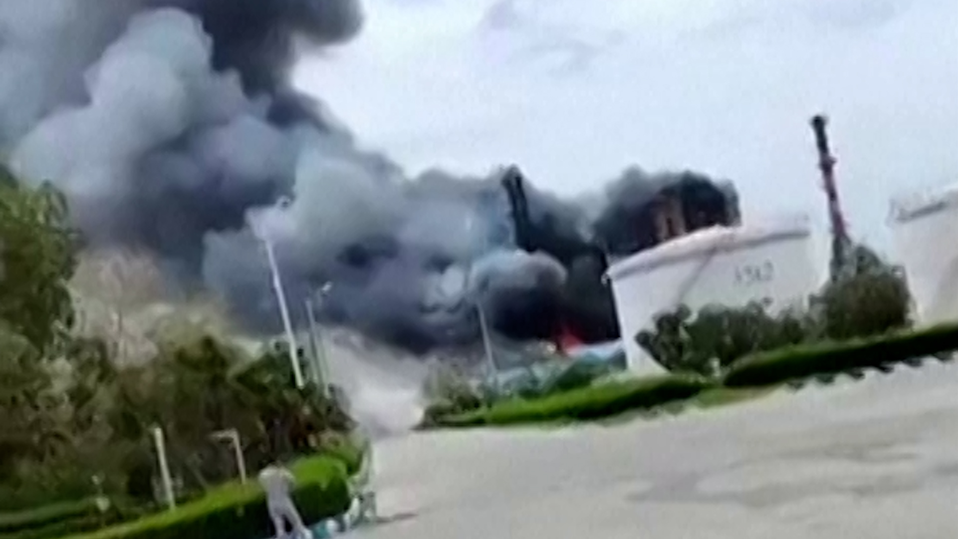 Lavan refinery blaze continues hours after US-Iran ceasefire agreement Black plumes of smoke from an oil refinery on Iran’s Lavan Island were seen, after what Iranian authorities stated was an “enemy attack” on the site. The oil refinery company stated the refinery was hit Wednesday morning. No casualties were immediately reported. Save Share