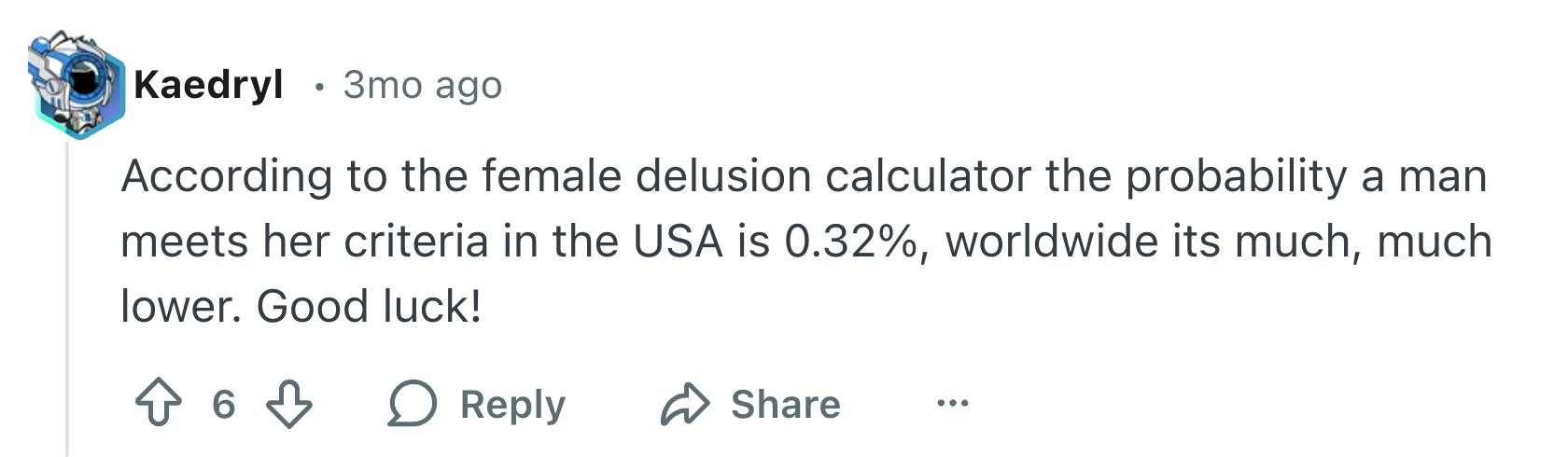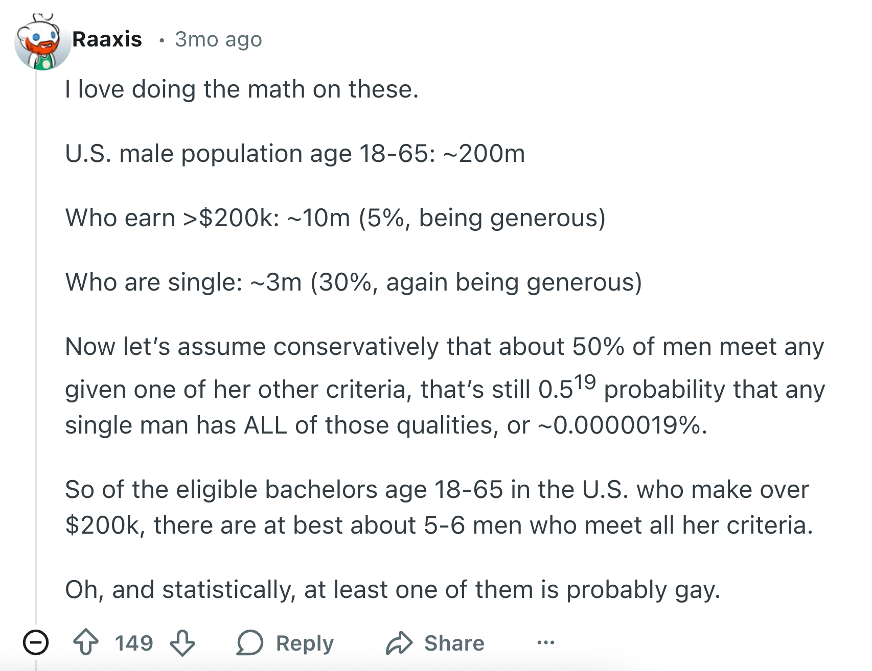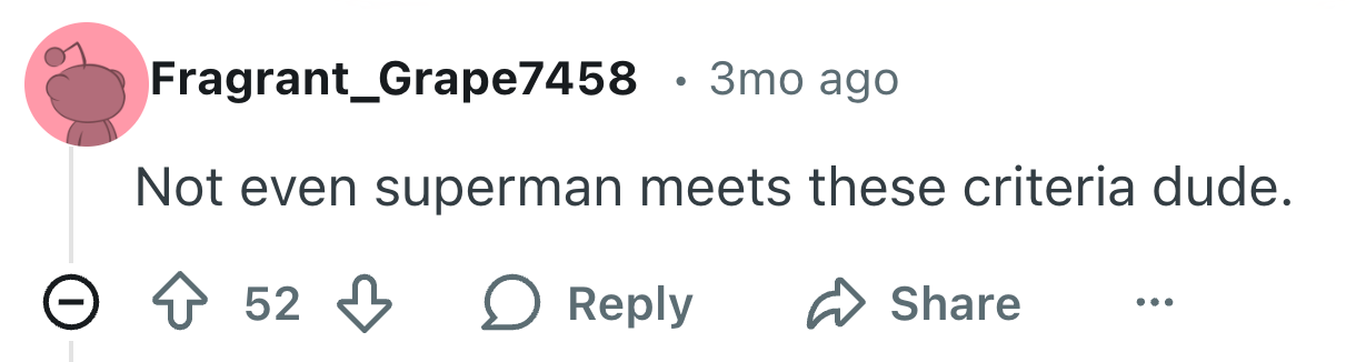 "According to the delusion calculator, the probability that a man meets her criteria in the USA is 0.32%. Worldwide, it's much, much lower. Good luck!" As a Senior Writer and Content Creator for BuzzFeed and Tasty, I specialize in lifestyle reporting, viral human-interest stories, and travel/food media.
