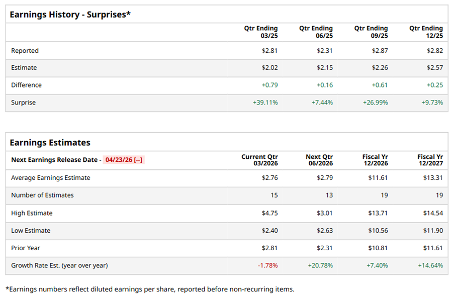 Mountain View, California-based Alphabet Inc. (GOOG) is a multinational technology conglomerate holding company offering various products and platforms. With a market cap of $3.6 trillion, GOOG provides web-based search, advertisements, maps, software applications, mobile operating systems, consumer content, enterprise solutions, commerce, and hardware products. The internet media giant is expected to announce its fiscal first-quarter earnings for 2026 in the near term. Ahead of the event, analysts expect GOOG to report a profit of $2.76 per share on a diluted basis, down 1.8% from $2.81 per share in the year-ago quarter. The company has consistently surpassed Wall Street’s EPS estimates in its last four quarterly reports. Penny Stock Xiao-I Is Surging on Apple Patent Win. Should You Buy Little-Known AIXI Now? Dear Google Stock Fans, Mark Your Calendars for April 23 Stocks Recover on Iran Ceasefire Hopes Our exclusive Barchart Brief newsletter is your FREE midday guide to what's moving stocks, sectors, and investor sentiment - delivered right when you need the info most. Subscribe today! For the full year, analysts expect GOOG to report EPS of $11.61, up 7.4% from $10.81 in fiscal 2025. Its EPS is expected to rise 14.6% year over year to $13.31 in fiscal 2027. GOOG stock has notably outperformed the S&P 500 Index’s ($SPX) 30.7% gains over the past 52 weeks, with shares up 103.7% during this period. Similarly, it considerably outpaced the State Street Communication Services Select Sector SPDR ETF’s (XLC) 28% gains over the same time frame. GOOG's strong performance is fueled by Google Cloud's 55% surge in backlog to $240 billion and widespread AI adoption, with over 75% of Cloud customers using Alphabet's AI products and Gemini hitting 750 million+ monthly active users. Additionally, its AI-driven Search and YouTube ad growth also contributed to the company's success. A key legal win in the U.S. DoJ antitrust case, where Alphabet was allowed to retain Chrome, Android, and its Apple Inc. (AAPL) partnership, removed a major uncertainty and boosted GOOG stock. Analysts’ consensus opinion on GOOG stock is bullish, with a “Strong Buy” rating overall. Out of 55 analysts covering the stock, 47 advise a “Strong Buy” rating, three suggest a “Moderate Buy,” and five give a “Hold.” GOOG’s average analyst price target is $378.72, indicating a potential upside of 24.6% from the current levels. On the date of publication, Neha Panjwani did not have (either directly or indirectly) positions in any of the securities mentioned in this article. All information and data in this article is solely for informational purposes. This article was originally published on Barchart.com