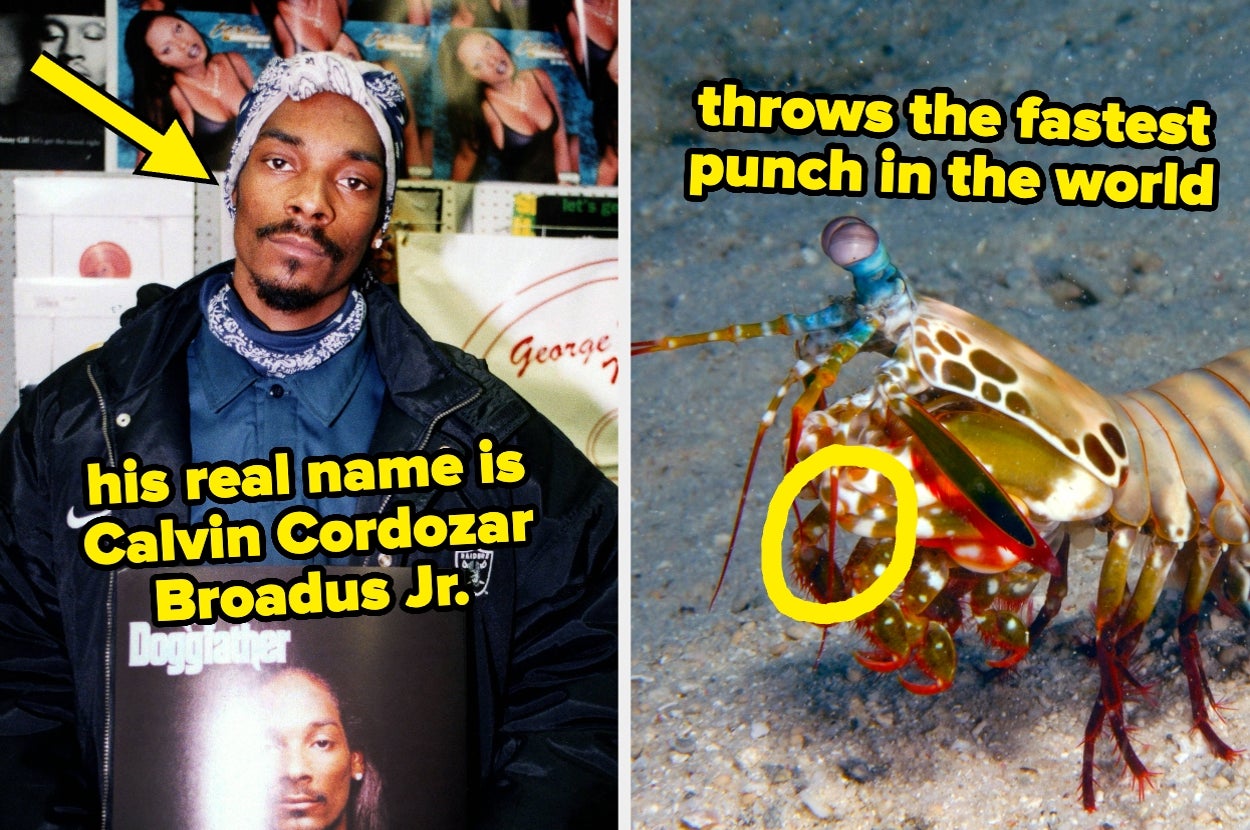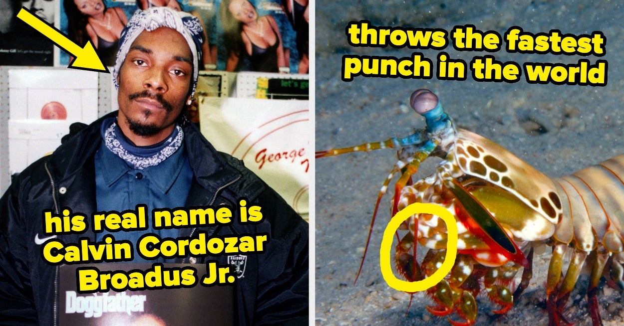 Ancient Romans used WHAT as laundry detergent?!?! I'm a Southern California-based writer on the Lifestyle team who likes to try and rank viral foods and read and recommend awesome books. Did you know me name is Sid? But me still like to be called Cookie Monster. If a bunch of gas builds up in a sloth's intestines, it could get sick and potentially even burst. Rather than farting, the gases are reabsorbed into the bloodstream and are then respired out of the lungs. John Harvey Kellogg invented cornflakes in 1894, but they were later used as part of an extreme diet promoted by his church to basically suppress horniness. Kellogg thought sex and masturbation were abnormal and unhealthy, so he believed cornflakes — and their lack of flavor — would help fight off any desire. The definition of small but mighty, mantis shrimps can throw punches up to 50mph — enough to break through their glass tanks. Police in Japan rarely ever resort to violence, as they choose to de-escalate the situation at hand first. After the wrapping, police will take the drunk or violent person to the station to let them calm down. America would win in the music category every time so long as Beyoncé is willing to compete.
