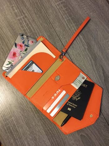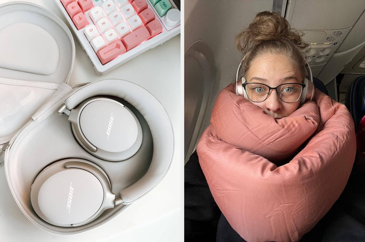 We hope you love our recommendations! While every product is independently chosen by our editors, BuzzFeed and our publishing partners may collect a share of sales or other compensation from the links on this page. You can read more about how our affiliate partnerships work in our Editorial Standards & Ethics Guide. “Where has this been my whole traveling life?” —A reviewer who’s never traveling without the Airplane Pockets tray table cover again. Promising review: "I bought this a few months ago when I knew I'd be flying across the country (more or less) twice this past spring/summer; it was the first new luggage I had bought in about 25 years. I've taken the set on several trips now — two round-trip flights with plane changes, a couple of two-night road-trip hotel stays, a six-day 1,800-mile road trip, and a mandatory wildfire evacuation, and I really, really like it. It rolls like a dream on hard floors, sidewalks, and parking lots — makes it easy for two people to manage three suitcases, each with a laptop bag or duffel attached. The bright red color (my favorite shade of red) really pops and makes it easy to pick out of a luggage carousel. It's lightweight and goes in and out of a hatchback with ease. This set truly makes travel even more fun. Well worth the money." —Rachel Get it from Amazon for $179.99+ (available in 22 colors). Promising reviews: "I would absolutely recommend this for anyone who travels, especially internationally, because of all the extra costs for going over in weight. We were among the few people in line who didn’t need to rearrange our luggage at the airport to meet the weight requirements in Milan. So easy to pack and take with you." —Addison "This little device was well worth the money spent. It saved us a lot of money on our flight home since we knew the weight was over and could pre-purchase the overage in the app instead of paying double at the airport. I’ll never travel without it!! Very easy to use." —Michael Ellis Get it from Amazon for $8.90+ (available in four colors and also as a two-pack). Promising reviews: "I needed a new travel wallet, and this holds everything I need all in one place, and it still closes nicely and stays flat! I can fit my boarding pass, passport, ID, credit cards, money, checked baggage tickets, receipts, and more in it, yet it doesn’t bulk up or look like an overstuffed mess. It's just amazing. The description says it only holds US money, but I just used the boarding pass flap to hold all my Japanese Yen, which are larger. I didn’t use the zippered pocket for coins as I much prefer a separate coin purse for that sort of thing. I definitely recommend to anyone who travels a lot!" —Anthony Luu "I purchased this wallet for my recent trip to Orlando to keep my cash, credit cards, ID, boarding pass, itinerary, etc. It held so many items I was shocked! I saved so much space in my purse by using this wallet. I will never travel without it!" —Amazon Customer Get it from Amazon for $9.99+ (available in 36 colors). Promising review: "I took my kids on their first international trip, and this thing was a total lifesaver. It fits easily in a fanny pack or small purse for easy access, and it fit my whole family's passports, vaccine cards, boarding passes, and a pen with plenty of room for cash and cards if you decide to use it as a wallet for your trip. It made getting checked in a breeze and helped my family keep everything organized." —Kevin Garcia Get it from Amazon for $9.99+ (available in five colors). Reviewers say it's ideal for a suitcase that can roll on four wheels! If you have a suitcase that has to tilt while it rolls, just be careful if the drinks are open at the top. Promising review: "This cup holder is perfect! It helps me a lot! Last time I took a plane with a suitcase and a cup of coffee, I dropped and spilled my drink everywhere when it was my turn to check my passport and ticket. It was a nightmare! This time, I bought this cup holder to do me a favor! I don't have to worry about where my cup and phone are! I can free my hands to do other things. I love it so much! Hope you love it too." —Philip Get it from Amazon for $12.62+ (available in 27 colors and patterns). Promising reviews: "I bought this as a purse for traveling to populated European cities as there are heaps of pickpockets. It worked perfectly! It is the perfect size to fit everything I need and was super comfortable. Highly recommend." —Jessie Anela "I bought this fanny pack to take on our trip to San Francisco and it worked out better than I thought it would! We hiked through Muir Woods and I loved that my hands were free from holding a purse! Then we walked across the Golden Gate Bridge, went to Chinatown, the wharf, etc. and again it was great not having to hold anything. This is by far the best bag I've ever traveled with. It is almost the same exact size a (name brand) bag but a lot less. Best purchase for the vacation :)" —Pat Get it from Amazon for $13.98 (available in 40 colors). Unlike the regular U-shaped pillows, Trtl Pillows are machine-washable and fast-drying. Promising review: "Used it for a 14-hour flight to Japan last week, and it helped tremendously. This was the first time I was able to sleep on the plane so this helped tremendously. Definitely a must-have for travel. It is very light so I was able to easily pack it in my under-the-seat wheeled trolley. I want to emphasize how much the light warmth of the fleece (and I don't like being hot) was just right to help me nod off to sleep. Since this is primarily for sitting upright in the seat or someone in the middle or the aisle seat, this was ideal for me. I just got back yesterday. Again I used it — this time for a 12-hour flight." —Ambience Get it from Amazon for $59.99+ (available in four colors). The pillow is made with a breathable, super soft bamboo fabric, and fully machine washable. Promising review: "We got a few different types of travel 