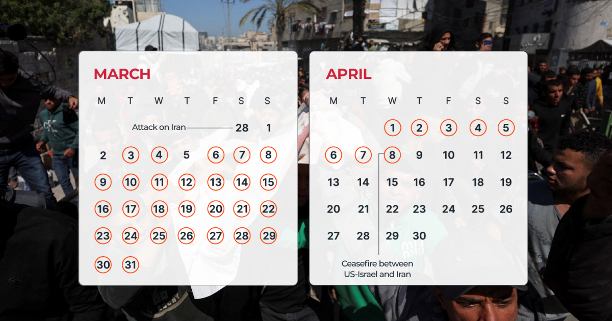 In that short time, Israel killed at least 107 people, permitted only 8 percent of medical evacuations, and admitted just 20 percent of trucks. Save Share The United States and Iran agreed on Wednesday to a two-week ceasefire following 40 days of war, with talks set to begin on Saturday in Islamabad, Pakistan. But since February 28, when Israel and the US began bombing Iran, Israel has also, on a near-daily basis, launched attacks on Lebanon, Gaza and the occupied West Bank. While much of the world’s attention has been on Iran, here are three main things that you may have missed in Gaza. Since the declaration of a “ceasefire” in the Gaza Strip six months ago, Israel has violated the agreement thousands of times, with attacks on a nearly daily basis. Over the past 40 days, Israel has not only continued bombing Gaza, but has also closed the Rafah crossing and withheld life‑saving food and medical supplies. According to an analysis by Al Jazeera, Israel has attacked Gaza on 36 out of the past 40 days, meaning there were only four days on which no violent attacks, deaths or injuries were reported in the Strip. Between February 28 and April 8, Israeli attacks killed at least 107 people in Gaza and injured 342 others. Since the “ceasefire” in Gaza took effect six months ago, Israeli attacks have killed at least 738 people and injured more than 2,000. In total, since launching its genocidal war on Gaza, Israel has killed or injured at least 10 percent of the Strip’s population, killing more than 72,000 people, the majority of them women and children, and injuring at least 172,000 others, with thousands more buried under the rubble and presumed dead. On Wednesday, as the world awaited the much-anticipated pause in attacks between the US, Israel and Iran, Israel killed another journalist in Gaza – Al Jazeera’s correspondent Mohammed Wiswash, who was killed in a targeted drone strike. On the same day, Israel launched one of its largest-ever attacks on Lebanon in a single day, launching a wave of strikes that killed at least 254 people and injured 1,165. On February 28, the day Israel and the US began strikes on Iran, Israeli authorities closed all crossings into Gaza, halting the transfer of wounded patients abroad and suspending medical evacuations. Among them was Rafah crossing, Gaza’s sole gateway to the outside world through Egypt, which was supposed to open under the US-brokered 20-point ceasefire plan for the Strip. Based on the agreement, 50 patients per day, plus their companions – typically one or two per patient – were supposed to be allowed out of the enclave for treatment. More than two years of Israeli attacks have left thousands injured and in need of urgent medical treatment. According to OCHA, more than 18,500 critical patients, including 4,000 children, require medical evacuations. On March 19, Israeli authorities announced the resumption of limited medical evacuations through Rafah. According to the Gaza Media Office, since February 28, 625 out of 7,800 travellers have been permitted to leave Gaza for treatment – about 8 percent of the agreed number. Israel has continued to limit urgent food and medical supplies, exacerbating severe shortages and deepening a humanitarian crisis. According to the Integrated Phase Classification (IPC), the global hunger monitor, more than three-quarters (77 percent) of the population in Gaza are facing high levels of acute food insecurity. Of the 1.6 million people analysed by IPC: According to the Gaza Media Office, since the US-Israel war on Iran began, Israel has allowed only 4,999 of the 23,400 trucks stipulated in the ceasefire agreement into the Strip – just one-fifth of the promised deliveries.