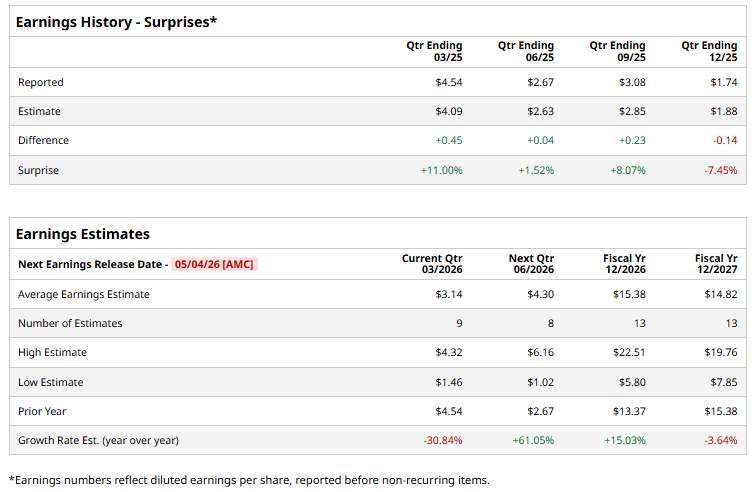 The above button links to Coinbase. Yahoo Finance is not a broker-dealer or investment adviser and does not offer securities or cryptocurrencies for sale or facilitate trading. Coinbase pays us for certain activity generated through this link. Prices displayed are informational. With a market cap of $52.5 billion, Diamondback Energy, Inc. (FANG) is an independent exploration and production (E&P) company focused on the development of unconventional oil and natural gas reserves. Headquartered in Midland, Texas, the company operates primarily in the Permian Basin, one of the most prolific and cost-efficient oil-producing regions in the world. The leading independent oil and gas company is expected to announce its fiscal first-quarter earnings for 2026 after the market closes on Monday, May 4. Ahead of the event, analysts expect FANG to report a profit of $3.14 per share on a diluted basis, down 30.8% from $4.54 per share in the year-ago quarter. The company has surpassed Wall Street’s EPS estimates in three of its last four quarterly reports, while missing on another occasion. Dear Intel Stock Fans, Mark Your Calendars for April 23 Dear Amazon Stock Fans, Mark Your Calendars for April 17 The Selloffs in ServiceNow and Salesforce Stocks Are Disconnected, Says Wedbush. Should You Buy the Dips? Markets move fast. Keep up by reading our FREE midday Barchart Brief newsletter for exclusive charts, analysis, and headlines. For the current year, analysts expect FANG to report an EPS of $15.38, up 15% from $13.37 in fiscal 2025. FANG stock has climbed 38.1% over the past 52 weeks, outperforming the S&P 500 Index’s ($SPX) 25.1% gains, but slightly trailing the State Street Energy Select Sector SPDR Fund’s (XLE) 39.2% gains over the same time frame. Diamondback Energy gained more than 2% on Apr. 9, as energy stocks moved higher, driven by over 7% surge in WTI crude oil prices, which boosted sentiment across the oil and gas sector. Analysts’ consensus opinion on FANG stock is very bullish, with a “Strong Buy” rating overall. Out of 33 analysts covering the stock, 25 advise a “Strong Buy” rating, three suggest a “Moderate Buy,” and five give a “Hold.” FANG’s average analyst price target is $214.97, indicating a potential upside of 15.4% from the current levels. On the date of publication, Kritika Sarmah did not have (either directly or indirectly) positions in any of the securities mentioned in this article. All information and data in this article is solely for informational purposes. This article was originally published on Barchart.com