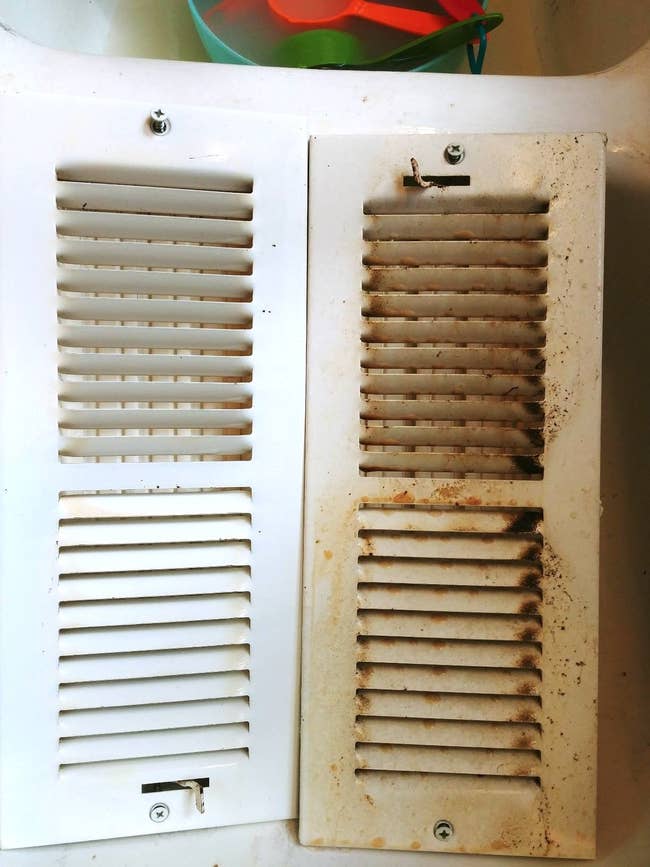We hope you love our recommendations! While every product is independently chosen by our editors, BuzzFeed and our publishing partners may collect a share of sales or other compensation from the links on this page. You can read more about how our affiliate partnerships work in our Editorial Standards & Ethics Guide. Wave goodbye to it all: Splotches of mildew in your shower, deeply embedded pet hair in your carpet, and caked-on food splatters in your microwave. Homes can get SO nasty. And if you don't know how to clean a particular mess, you can end up spending way too much of your precious time and elbow-grease energy, only to get disappointing results. Been there, done that myself. Never again! With these tips, you'll know exactly what you need to do to shine up crusty glass shower doors, eliminate even that several-year-old carpet stain, and banish the cooked-on food on your stove. *bookmarks for later* That's exactly what I did with our filter, which hadn't been cleaned or replaced in over three years, and it worked like a charm! Yep, I took these pictures myself! And yes, I also made sure the PB jar's lid wasn't close to submerged, and I washed the jar afterward. Sure, it's not expensive to buy a new filter (they run about $10 from Amazon), but we're renters, and I wasn't sure what brand we needed to get. Our NYC landlord was not about to replace it for us without a loooooot of hassle. Aluminum ones like these are perfectly washable. If you have a charcoal filter, though, you'll need to replace it if you want it to remove odors the way it's designed to. Get a large Dawn dish soap refill from Amazon for $8.69. Sure, you could use an old toothbrush for this too, but it'll take you longer because the brush head's not nearly as long as this one. Reviewers say the stiff scraper end of this brush really helps get into tricky corners, too. Get a pack of two from Amazon for $4.99 (available in 5 color combos). The reviewer who got these pictured results used Purple Power, which works wonders on stuff like nasty car wheels, greasy clothing stains, and built-up oil on stoves. While it's excellent for heavy-duty problems, it is a tad harsh, so always test it in a hidden area before using it on painted surfaces or fabrics. Get two spray bottles of it from Amazon for $17.43. It's also available as a gallon of concentrate for $17.99. I do exactly this about every six months or so, and it works every single time! See my full shower hack review. A different type of microfiber than the towels you use for car and other house cleaning, these have a super tight weave that's safe for more delicate surfaces like camera lenses, eye glasses, and modern flat screen TVs. Get a three pack from Amazon for $14.99. 1. Turn the water to your toilet off with the little metal valve in the back. 2. Flush the toilet so the tank empties, but doesn't refill (because the water's off). 3. Pour a half cup of citric acid in the tank. 4. Fill the tank up with hot water (some people boil it, some people just use hot from the tap). 5. Let it sit for at least two hours, and up to overnight. 6. Give it all a scrub with your toilet brush. 7. Turn the water back on, and flush a few times till all the mess is gone! Get a two-pound bag from Amazon for $14.99. You do have to let it sit for four to five hours (or even overnight), but the results, as proven by the review photos like the one here, are worth it. The gel formula lets it stick and stay exactly where you put it down, which is why it works better than just spraying with regular bleach: The bleach stays right on the mold stain until it's gone, without drying up or running off. And spoiler alert: I'll show you later in this post that this cleans the mold in front-loading washing machine gaskets, too! It really is like magic: It can also remove rust stains from color-safe fabrics, among many other surfaces. One reviewer who mentioned BuzzFeed said they needed to leave it for a while for it to really work on their stains, but it did! Heads up that some reviewers say it's fume-y, so you'll want to open a window while you use it. Citric acid could work here too, if you want to leave it sitting overnight. But if you want that ring gone in five minutes of scrubbing, the pumice stone's the way to go. Get one from Amazon for $10.80. You'll probably still need a pumice stone to get it clean the first time, but regular use of these can help keep your toilet hard-water-stain-free for longer. These are both made and sold by Bombs Away, an Elizabethtown, Pennsylvania-based small business that sells handmade cleaning and bath products. Get them on Etsy for $12+ (available in seven scents). All you have to do is restamp as needed (about every 12 days or so, depending on how often the toilet's flushed). If you can't imagine not using your toilet brush, you can use the small remaining bit of gel to scrub down the bowl before applying more. I used these all the time in college because my roommates and I couldn't be bothered to scrub, and they do actually work! You just press it beneath the rim (after a regular toilet cleaning, of course!) and let it get to work. Oh, and make sure to stamp it somewhere it won't become a, well, "target" and get sprayed off before its time. Get enough to keep your toilet clean for up to four months from Amazon for $9.76. Get a pack of two bottles from Amazon for $16.30 (about $8.15 each). And it takes just 15 minutes to see results; simply run your water, pour in some cleaner, and start your jets. Get it from Amazon: a bottle good for four cleans for $22.99 ($5.50/clean), two bottles for $34.99 ($4.37/clean), or a gallon good for 32 cleanings for $89.99 ($2.34/clean). The brand also makes a highly-rated hot tub cleaner, if that's what you need! I've used this stuff on a week-old strawberry smoothie stain on a rug, chocolate stains on fuzzy pillows, and other mystery stains, and have seen it for myself — it really does work! It's great for all kinds of stains, l