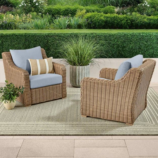 We hope you love our recommendations! While every product is independently chosen by our editors, BuzzFeed and our publishing partners may collect a share of sales or other compensation from the links on this page. You can read more about how our affiliate partnerships work in our Editorial Standards & Ethics Guide. You’ll wonder how you ever lived without a garden duck before. Pair the table with matching armchairs or stackable armless chairs. Promising review: "High quality and beautiful style. The color is a softer , lighter green than what’s pictured. I like it better than the picture. Love it! " —Barbara D. Get it from Article for $469+ (originally $499+; available in four colors and also in a larger size that seats 4–6 people). Promising review: "This is the MOST durable and solid outdoor furniture we have ever owned. We bought our first chair three years ago and it has stayed outside buried in snow in the winter, covered with leaves in the fall, and subjected to the rain and heat of spring and summer. We never bought the chair inside or covered it. We just ordered a second one and side by side its hard to tell which one has been left out in the elements for three years. Highly recommend. Solid, heavy, and durable." —Anonymous Get it from Wayfair for $102.99+ (available in 14 colors). Promising review: "Nice firepit, especially for the price. Its lightweight but compared to similar thickness firepits at the big box stores, this one has way more functionality. I knew this was thinner metal to begin with, idk what anyone else was expecting. Easy to put together to the point its idiot proof. Everything stores inside the pit when not in use and doubles as a table when you dont want a fire. The cover fits very snug and seems nice. Its raining here in CA so i just got it put together and havent used it outside yet, will update if theres any issues." —Christopher P. Boyd Get it from Amazon for $109.99+ (available in three sizes). Promising review: "For being lightweight, this is a sturdy game. So fun too! We just opened it today and it managed to keep 6- and-12 year-old boys, along with their father entertained for some time. After lunch, everyone hurriedly returned to the game." —Debs Promising review: "I waited several months before writing a review. I purchased a country home that I love. But living in the country comes with more wildlife and insects. I keep my bug zapper on the windowsill of my kitchen. I have problems with flies, mosquitos, fruit flies and gnats. I have a professional exterminator but still need indoor / outdoor solutions. This bug zapper is excellent in every way. I am attaching several photos showing all the gnats it has killed that bounce off the zapper due to the size. The flies fall in the bottom compartment to be emptied since they are heavier than gnats. My country home honestly is fly, mosquitos, moth, gnat and fruit fly free since I purchased this product. Now I will start buying replacement bulbs to have on hand. The bulb it came with is still working strong after several months so I believe it will last at least 1 year if not more based on usage. I am so glad I purchased this bug zapper and will recommend it to everyone." —Mario B. Promising review: "These ducks are so cute and add the perfect bit of whimsical feeling. They look great out in the garden and every time I see them they bring a smile to my face. I want to buy more of them and give them all to my family and friends. They are well crafted too and pretty big!! Definitely recommend these." —Roxy Get it from Uncommon Goods for $30+ (available in three sizes). Promising review: "Used it for the first time yesterday for a small gathering. Even though it was in our 96-degree Florida heat there was still some unmelted ice this morning. Great product even it you only use it as a table." —Dochinger Get it on Amazon for $66.82+ (available in two colors). Promising review: "This set is amazing quality for the price! We have had one of these sets on our beach patio and it has held up well to the extreme elements. I knew it was going to be perfect for our patio at our new house. The green is more muted than online photos show, but a perfect shade for an outdoor space. They were easy to put together and came with extra screws if needed. 10/10 would recommend to anyone looking for new outdoor furniture!" —Mickaela Get it from Walmart for $494 (available in three colors). Promising review: "Cheap with good quality and is pretty big." —Lola Promising review: "I had to replace my heavy duty hoses (that came with the home we bought) and get far lighter hoses. Dragging and maneuvering a hose around flowers etc. without mashing or breaking them, is a trick. I couldn't take it anymore. I love these hoses. They crank up into the hose storage easily and though light, do not hamper water flow. I love them." —artgirl Get it from Amazon for $11.57+ (available in eight sizes and five colors). Promising review: "I took a long time deciding which outdoor sofa to order, and we're SO happy with our choice! It looks great in our space, is the perfect height and depth, and the cushions are very plush and comfortable (unlike some outdoor furniture where it very quickly feels like sitting on a wood plank). The cushion tie downs are also very handy, and necessary I think. I knew this from reading reviews so I'm not bothered, and I think the colour is beautiful, but just FYI it isn't a true black but more of a dark heathered charcoal. We bought this couch on a great sale, so I am very extra pleased with the value!" —Emma S. Get it from Article for $2,289+ (originally $2,699; also available in black and with or without a coffee table). Promising review: "Lovely color and perfect addition to my outdoor space. They are surprisingly comfortable to lean on!" —Kathryn Get it from Birch Lane for $109+ (originally $115+; available in five sizes and two colors). Promising review: "I don't ever write reviews, but