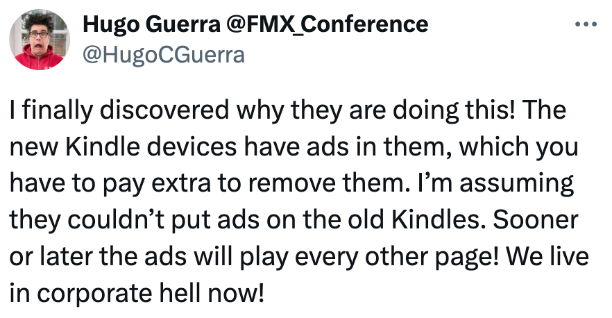 Never fear: $2.508 trillion market-cap company Amazon is, most generously, offering a 20% discount on the new e-reader they are pressing their customers into buying.