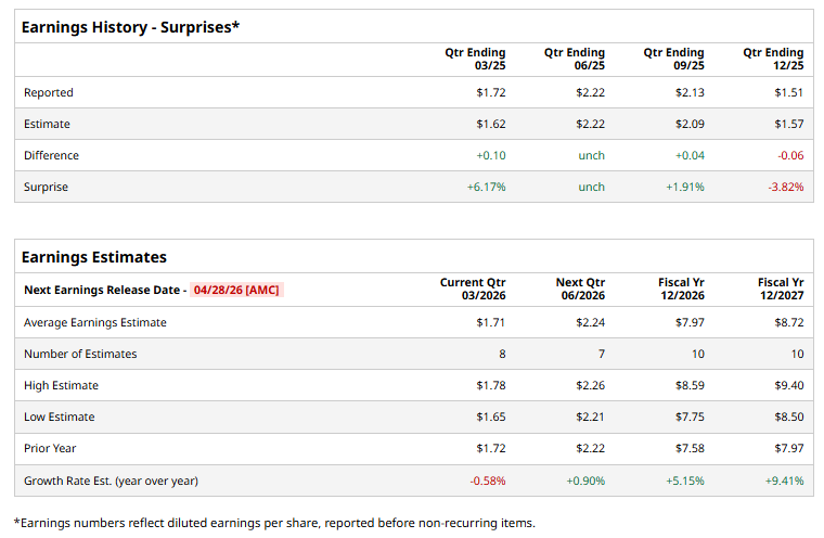 The above button links to Coinbase. Yahoo Finance is not a broker-dealer or investment adviser and does not offer securities or cryptocurrencies for sale or facilitate trading. Coinbase pays us for certain activity generated through this link. Prices displayed are informational. With a market cap of $24.5 billion, PPG Industries, Inc. (PPG) is a global leader in paints, coatings, and specialty materials, serving industries such as automotive, aerospace, construction, and industrial manufacturing. The Pennsylvania-based company focuses on high-performance and protective coatings that enhance durability and aesthetics, operating through segments like Performance Coatings and Industrial Coatings. PPG is expected to release its fiscal Q1 2026 earnings results on Tuesday, Apr. 28, after the market closes. Ahead of this event, analysts project the company to report an adjusted EPS of $1.71, down marginally from $1.72 in the year-ago quarter. The company has met or surpassed Wall Street's bottom-line estimates in three of the last four quarterly reports while missing on another occasion. While the Stock Market Was Rallying, Palantir Stock Sold Off. Should You Buy the Dip in PLTR? ConocoPhillips vs. EOG: 1 of These Energy Stocks Is Cheaper and Pays You More. Which One? Dear IBM Stock Fans, Mark Your Calendars for April 22 Our exclusive Barchart Brief newsletter is your FREE midday guide to what's moving stocks, sectors, and investor sentiment - delivered right when you need the info most. Subscribe today! For fiscal 2026, analysts forecast the paints and coatings company to report an adjusted EPS of $7.97, a 5.2% increase from $7.58 in fiscal 2025. But its adjusted EPS is expected to increase 9.4% year over year to $8.72 in fiscal 2027. Over the past 52 weeks, shares of PPG Industries have surged 12%, underperforming the broader S&P 500 Index's ($SPX) 29.4% gain and the Materials Select Sector SPDR Fund's (XLB) 32.9% rise over the same time frame. On Mar. 19, PPG Industries dropped more than 3% as a sharp rise in oil prices pushed up input costs for key raw materials such as resins, solvents, and chemicals, which are heavily derived from petrochemicals. The spike in input costs raised concerns over margin compression across the materials sector, prompting a sell-off in PPG shares as investors weighed the risk of weaker profitability if the company is unable to fully pass these higher costs on to customers. Analysts' consensus view on PPG Industries stock is cautiously optimistic, with an overall “Moderate Buy” rating. Among 23 analysts covering the stock, nine suggest a "Strong Buy" and 14 recommend a "Hold.” The average analyst price target of $121.68 represents a premium of 10.3% from the prevailing price level. On the date of publication, Kritika Sarmah did not have (either directly or indirectly) positions in any of the securities mentioned in this article. All information and data in this article is solely for informational purposes. This article was originally published on Barchart.com