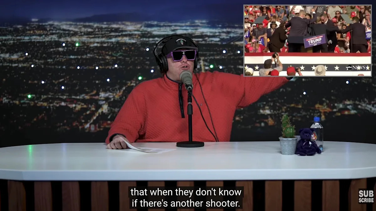 Comedian and podcaster Tim Dillon said on his latest episode on Saturday that President Donald Trump should just come out and admit that he faked the assassination attempt against him in Butler, PA. Trump was speaking to a rally in Oct. 2024 when police said Matthew Thomas Crooks fired at Trump — then the GOP’s presidential nominee — whose ear was grazed by the bullet before he was escorted off the stage by Secret Service. A man sitting behind Trump, Corey Comperatore, was killed in the attack, and Crooks was killed by police. Several rally attendees were also injured. “Let me come out and defend Trump right now. Can I defend him?” Dillon began. “I don’t care if he staged the assassination attempt in Butler. I don’t care! I don’t care, and I think he should admit it.” “I would change the subject, stop talking about Iran. Just admit you staged it in Butler,” Dillon continued. It was the heat of the campaign. People do crazy things in campaigns. I think — I’m speaking just for myself — I will not think less of you if you admit to staging and faking the assassination attempt in Butler, Pennsylvania. I will be impressed by the level of coordination. Explain to us how you did it! Kind of like those David Copperfield behind the — and I know that David Copperfield had some Epstein links. Folks, that’s neither here nor there. I’m trying to explain the way a magician will show you how they do their trick. I think Donald Trump should do a one-hour special on Bari Weiss’s CBS News. This is a great idea! With Bari, members of the Mossad, and Trump to discuss how they fabricated and staged the assassination attempt. “Now, of course, a real person died and that’s terrible. RIP,” Dillon added. “And they should say, that in high-stakes things like this, stuff like that happens.” “Some people are gonna say, ‘Well it was wrong that he did that,'” Dillon said. “And some people like myself are gonna be more interested in the ‘how.’ How did you do it? It’s fascinating!” “I think it would be fascinating for the country. And it would move us in the right direction,” Dillon said. Watch the clip above via The Tim Dillon Show on YouTube. The post Tim Dillon Says Trump Needs To Come Out And Admit He Faked The Assassination Attempt in Butler, PA first appeared on Mediaite.