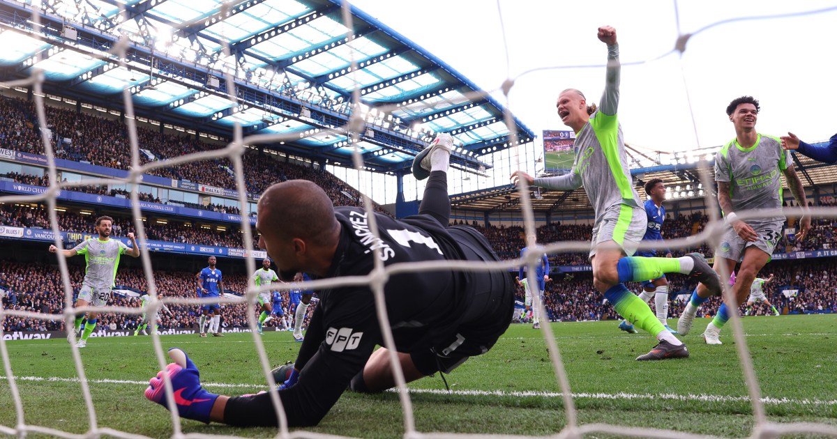 City score three goals in 17 second-half minutes to crush Chelsea at Stamford Bridge and move within six points of football league leaders Arsenal. Save Share Manchester City ignited the Premier League title race with a second-half blitz that sealed a 3-0 win against Chelsea as they closed the gap on leaders Arsenal. Pep Guardiola’s side produced a devastating spell immediately after half-time on Sunday, with Nico O’Reilly and Marc Guehi scoring in the space of six minutes at Stamford Bridge. Jeremy Doku wrapped up a statement victory to ensure City took advantage of Arsenal’s shock 2-1 home defeat against Bournemouth on Saturday. Second-placed City are now only six points behind Arsenal with a game in hand, setting up a seismic showdown against the Gunners at the Etihad Stadium on April 19. Having beaten Arsenal in the League Cup final and thrashed Liverpool in the FA Cup quarterfinals, City are hitting form at just the right time. Their bid for a seventh English football title under Guardiola had appeared to be fading after successive draws with strugglers West Ham and Nottingham Forest in their previous two league matches. A disjointed first half against Chelsea suggested City might waste a golden opportunity to pile pressure on Arsenal. But Guardiola’s half-time team talk had the desired effect, and City can now target next weekend’s do-or-die visit from Mikel Arteta’s spluttering team. If City win that blockbuster clash, they will be within three points of Arsenal, who blew substantial leads in the 2023 and 2024 title races, and will have a game in hand, possibly allowing Guardiola’s men to pip them to the trophy. After winning their first four league matches following Liam Rosenior’s arrival from Strasbourg to replace Enzo Maresca, Chelsea have won just one of their last seven football matches, losing three in a row to leave the Blues boss facing some difficult questions. Chelsea, who have not beaten City since the 2021 Champions League final, were again without Enzo Fernandez after Rosenior’s controversial decision to drop the Argentinian midfielder for hinting he might leave in the summer. Sixth-placed Chelsea looked subdued without Fernandez, and they trail four points behind Liverpool in the race to qualify for the Champions League via a top-five finish. Lacking energy and cohesion in a sloppy start, City were fortunate not to fall behind when Marc Cucurella’s clinical finish was disallowed for a tight offside. City also let Pedro Neto in far too easily for a stinging strike that forced Gianluigi Donnarumma to save at his near post. It took City 35 minutes to mount an incisive raid as Bernardo Silva stretched to meet O’Reilly’s cross, but Robert Sanchez made a fine save from the midfielder’s close-range effort. But City stepped up after the interval and O’Reilly made the breakthrough in the 51st minute. Rayan Cherki whipped an in-swinging cross towards O’Reilly, and the City left-back reprised his League Cup final heroics with another clinical header from close range. Six minutes later, Cherki again showed the creative genius that has won over Guardiola despite some impetuous moments in his first season in Manchester. The France playmaker glided past a gaggle of Chelsea players on the edge of the area before threading a sublime pass to Guehi, who looked more like a forward than a centre-back as he smashed a perfect strike into the far corner from 12 yards. City benefitted from wretched Chelsea defending for their third goal in the 68th minute. Sanchez rolled the ball to Moises Caicedo even though the Chelsea midfielder was surrounded by three City players and Doku pounced, racing into the area to drill home as Guardiola celebrated a priceless result. Doku praised City’s “exceptional” win after the game. “I watched the Arsenal game, and when I saw them lose [at Bournemouth on Saturday], I saw that the Premier League is really unpredictable,” he told Sky Sports. “We were also focused on our own game. Winning here [at Stamford Bridge] is not a given, so that we did it today is exceptional.” Elsewhere on Sunday, Tottenham’s survival fight took another blow after a 1-0 loss to Sunderland left them rooted in the relegation zone. In coach Roberto De Zerbi’s first game in charge, Spurs fell to a 16th league loss of the season. Their 14-game winless run in the league dates back to January 1. Nordi Mukiele’s deflected shot sealed the game at the Stadium of Light and plunged Tottenham’s campaign deeper into crisis. Tottenham are two points adrift of safety with six games to go. Their plight was not helped by relegation-fighting Nottingham Forest drawing 1-1 with Aston Villa. Meanwhile, Crystal Palace came back from 1-0 down to beat Newcastle 2-1 at Selhurst Park.