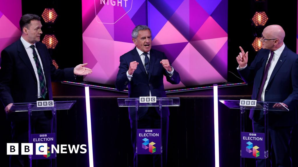 Scotland could have a second independence referendum as soon as 2028, First Minister John Swinney has said. The SNP leader, who was facing other party leaders in a BBC Scotland Debate Night special in Paisley Town Hall, said it was "perfectly conceivable" that a vote on the constitution could be held within two years. Green co-leader Ross Greer said Scotland's future should be "in Scotland's hands". But Labour leader Anas Sarwar said next month's election was "not about independence", while Conservative chief Russell Findlay said the break-up of the UK would be an "unmitigated disaster". Reform UK's Scottish leader, Malcolm Offord, said another referendum would be "divisive" - but did not rule out a future vote if support for a Yes vote reaches 60%. Alex Cole-Hamilton, Scottish Liberal Democrat leader, said he had not given a second referendum "a moment's thought" because he was focused on other issues. The party chiefs - who were asked questions by a live studio audience - also clashed over immigration, the NHS and energy during the debate. A second independence referendum would need to be signed off by the UK government. However, Prime Minister Sir Keir Starmer has said he cannot imagine another vote taking place during his time in 10 Downing Street. Earlier on Sunday, Health Secretary Wes Streeting told LBC: "We're not having one" and added that "this country has had enough of chaos". At the BBC debate, Swinney told the audience the people of Scotland were "entitled" to decide their own constitutional future. However, he said the country was stuck in a "constitutional logjam" that could be broken by an SNP majority - which the party achieved ahead of the 2014 referendum. The first minister urged voters to deliver an "emphatic mandate of an SNP majority so the future of our country can be taken into our own hands". Asked when the vote could be held, he said it was "perfectly conceivable to have a second referendum by 2028". Greer said a majority of pro-independence MSPs - from the Greens or SNP - in the next parliament would represent a mandate for a referendum. He told the audience it was "profoundly anti-democratic" for Westminster to deny Scotland a second vote, and said independence could help the country solve major issues it faces with the NHS and economy. Sarwar said the Scottish government should be focused on fixing the NHS, providing good jobs, building more homes and bringing down cost of living. He added: "This election is not about independence, it's about having a government that works for the people of this country." Findlay warned that a referendum could be given the green light by a "weak" prime minister, insisting his party would "stand up for Scotland's proud place in the union". He urged Swinney to "get on with the day job", adding: "By every measure you've been distracted and Scotland has got worse." Offord said: "People want Holyrood to get on with the day job and improve people's lives." However, he accepted that the situation could change if support for independence increased. Cole-Hamilton said the government should focus should be on other issues โ citing the NHS, education and cost of living. Control over immigration and borders is reserved to the UK government, but it has emerged as a major issue during the Holyrood election campaign. Offord said he wanted "cohesion" in Scotland's communities - but claimed some people coming to the country were "jumping the queue" to the detriment of local people. Findlay said: "People in Glasgow and other communities are seeing a system at breaking point with too much pressure on local services." Glasgow houses more asylum seekers - about 3,800 - than any city outside of London. Glasgow City Council leader Susan Aitken told BBC Scotland News last year that the city had essentially "run out of temporary accommodation". Greer called Offord a "chancer" and called for more immigration to Scotland. "The problem is we do not have enough immigration to meet the needs of the country," he said. The Green co-leader said immigrants are needed for the NHS, social care and rural communities. Cole-Hamilton accused Offord of "trying to win an election based on dividing the people of Scotland". He said that while there was a problem with small boats crossings, immigration was needed to plug a "skills crisis". Sarwar accused Offord of "questioning my loyalty to my country" and accused the Reform UK leader of attacking people from migrant backgrounds. He said while skilled workers were needed for the economy, there was "unfairness" in the immigration system due to "illegal migration". Swinney said some of the rhetoric on immigration had been "inflammatory" and backed calls for the UK government to allow asylum seekers to work. There is a dispute ahead of every election in Scotland about whether it might lead to an independence referendum. The UK Supreme Court ruled in 2022 that the constitution, including the union between Scotland and England, is a matter for Westminster rather than Holyrood. Former First Minister Nicola Sturgeon had brought the case to query whether MSPs could legislate for an independence referendum. Judges unanimously concluded that they could not do so without a transfer of powers from Westminster - known as a "section 30 order" - as happened ahead of the previous vote in 2014. The question is whether the SNP can persuade UK ministers to grant such an order again. The party had previously argued that a pro-independence majority at Holyrood should be enough to do this. But the SNP and Greens had just such a majority last term, at the time of the Supreme Court ruling, and John Swinney now says an outright SNP majority would provide a mandate - noting that this is what happened for the 2014 vote. In recent years Scotland has struck out on a different path to the rest of the UK when it comes to income tax and social security. Elections are taking place across the country in May. Use our postcode lookup to find out if ther