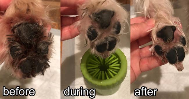 We hope you love our recommendations! While every product is independently chosen by our editors, BuzzFeed and our publishing partners may collect a share of sales or other compensation from the links on this page. You can read more about how our affiliate partnerships work in our Editorial Standards & Ethics Guide. Because apparently the secret to peace was...a $13 puppy paw cleaner all along. The holder fits two 3/4-inch ordinary transparent tapes with a 1-inch core and four 3/8-inch tapes with a 3-inch core. It also features a compartment for pens and other small items. Promising reviews: "Bought it for crafting, but will definitely be using it for regular tape. Wrapping gifts is gonna be sooo easy with this." —Casey "Oh gosh, this thing is amazing!! I can add three rolls of the yellow heat tape! It dispenses beautifully and makes taping that much easier and faster! I even got one for my mom!" —Kimberly Get it from Amazon for $15.99 (available in three colors). Promising review: "These Color Catcher sheets really protect colors from bleeding. It makes all clothes/laundry brighter and looks like new, not that old-washed color after just one wash without these sheets. I give this product 5+ stars. Highly recommend. A few pennies spent additionally on your laundry makes one look like wearing new clothes all the time." —Nikita Get 72 sheets from Amazon for $11.81 (also available in multipacks). Promising review: "I prep my meals a month at a time, and these make it much more convenient. These are especially helpful with raw meat, as I can use two hands while prepping the food and don't have to worry about keeping one clean to open the bag. I've also used them to portion out servings and ounces of meat when placed on a scale. They're not made of anything incredibly strong, but they're sturdy enough for full Ziplock bags of food." —Julie M Get a set of two from Amazon for $11.99. Simply fill your dirty mug with water, add a tablet, let it fizz for 30 minutes, and then rinse. Promising review: "I seriously can't believe how well these little tablets work. I had the most disgusting Hydro Flask coffee mug — I tried everything. Bottle brush, different kinds of soap, vinegar, EVERYTHING, and there was still a seemingly impenetrable layer of black sludge inside. It grossed me out so much that I bought ANOTHER Hydro Flask to replace it. Eventually, they both turned black inside, so I tried these little magic tablets. I let a tablet sit in each of my mugs for an hour or two, and the black sludge rinsed out completely, without even needing to scrub. They look brand new. What a magical product. No weird smell or taste afterward, either. I liked it so much that I used it on another Hydro Flask, which I primarily use to store my Bloody Mary mix in the fridge. I couldn't put anything else in it because it would always taste like spicy tomato juice. Bottle Bright to the rescue! No residual smell or taste anymore. AMAZING AMAZING AMAZING." —Amazon Customer Check out our closer look at these Bottle Bright tablets for more incredible before and afters. Promising review: "Best. Thing. Ever. This product works like a charm. It gets the sand from between their pads and is gentle enough that even my most stubborn pup tolerates it! I have a terrier/schnauzer who likes to dig, a mini golden doodle who is prissy about her paws, and a standard Labradoodle puppy who is still very fuzzy. We have a farm where it is extremely sandy, and we stay in a travel trailer. The amount of sand they were tracking into the camper was ridiculous. It takes me three minutes to clean and dry off all of their paws. Seriously, the best purchase I have made!" —Rachel Get it from Amazon for $14.99+ (available in three sizes and eight colors). My mom says I can play Monster Leaf Scooper if your mom says it's okay. Promising review: "We have a very large wooded property that requires a lot of leaves and sticks to be raked up. We have tried various brands of leaf scoops, but most have lasted only one season. Since purchasing the ReLeaf Leaf Scoops, my job has been much easier. First of all is the way your hands grasp the scoops. These are much more ergonomic and are actually like extensions of your own hands. Second, these are very sturdy and do not bend when trying to pick up a pile of sticks and debris. We have made it through the season so far without issue. Next will be the dreaded fall cleanup. I highly recommend the ReLeaf Leaf Scoops, which make our yard, woods, and garden cleanup easier." —trouble54 Promising review: "Oh my gosh — this stuff is a life changer! I used it to thoroughly clean my fiberglass shower. Nothing else would have done the job, and this product restored my shower to nearly new condition in just one use. We’ve since cleaned a weird, chalky film off our garage door, removed wall markings, and cleaned my storm door. We’ll never be without a jar (or three) of this stuff. Worth every penny." —Nancy F. Twist the bottom of the pen to dispense the fluid and brush onto the gem to clean! Promising reviews: "Saw this product on TikTok (I know lol). I didn’t think my ring was that dirty, as I haven’t had it for a year yet, and it wasn’t until my wedding band came in that I realized how dirty my ring was. One quick clean with this, and my ring looks better than brand new! Will be repurchasing when this one runs out." —David Barnes "Once I rinsed my stone, the original sparkle was revealed; it looked just like the day I received it! Even the silver mounting was left shiny and undamaged. My ring is not expensive by any stretch of the imagination, but this cleaner made it look like a million!" —Joyce S. Promising review: "I have super fine hair with lots of breakage. No matter how I put my hair up, I have bad flyaways. This stuff is great! So easy, and it stays better and looks smoother than stiff hairspray." —Jill Stilfield Get two from Amazon for $6.88+ (also available in four other styles).