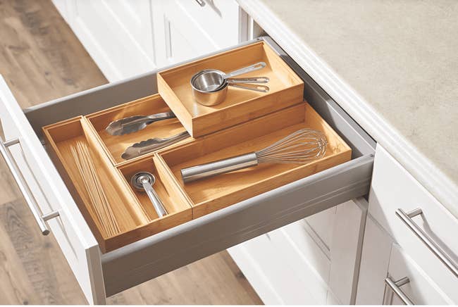 We hope you love our recommendations! While every product is independently chosen by our editors, BuzzFeed and our publishing partners may collect a share of sales or other compensation from the links on this page. You can read more about how our affiliate partnerships work in our Editorial Standards & Ethics Guide. These organizational solutions will have your cabinets looking like they are on an episode of The Home Edit. Promising review: "It looks small, but honestly, it fits everything I need for my shower routine. The pockets fit all my items for skincare, oral care, and shampoo bottles. everything. I definitely recommend." —Ana Price: $6.99+ (originally $14.99; available in five colors and two styles) Promising review: "LOVE LOVE LOVE. A must-have for your pantry!!! Saves so much space, looks organized, and I would definitely buy this again!" —Tjadams Price: $19.97 (also available in a two-pack) Promising review: "I loved the price, and this is a perfect fit for a countertop. I've been wanting one for a while. I love it and would highly recommend." —TessaB Price: $23.97+ (also available in a two-pack) Promising review: "Just what I wanted. Now I can get to my spices without knocking half of them off the shelf." —Hastory Promising review: "My closet is the most organized room in my house. These hanging shelves give me easy access to my clothes and keep them neat and fresh. It gives me a way to have extra space to hang clothes next to the shelves." —Anonymous Price: $7.97 (also available in a three-pack) Promising review: "Love this and just what I needed. More than enough room plus interior can be used for purses, gloves, hats, etc. I like the idea of the way it rotates. Very happy with this purchase and it is well made as well!" —Null Promising review: "I just got a new bedroom set and the drawers are a bit smaller than my previous set, so organizing the drawers is a bit challenging. These little drawer organizer units are flexible and hold everything in place. They are the perfect solution for organizing things like underwear and socks." —Mary Promising review: "It helped me organize my makeup and it fits perfectly on my shelf." —Sharon Price: $43.99+ (available in four colors) Promising review: "I like everything about it. I use it under my cabinet to corral my fruits and vegetables. It makes my counter look nice and organized." —Martha Promising review: "I changed out my cereal boxes to these containers. I love the clear look, it's much more organized, and airtight." —Maria Promising review: "I love this product. It is sturdy and fits all size lids." —HunteratHeart Price: $16.99 (originally $21.04; available in two finishes) Promising review: "I ordered these racks because I had tall cabinets and not enough space. I added the rack and instantly had more space not only for dinner plates but I could also add salad plates, bowls, and coffee cups, a much better use of space. The cabinet looks more organized and has a clean uncluttered look. I highly recommend if you're needing a little extra space." —Frances Price: $16.63 (also available in a two-pack) Promising review: "We purchased different sizes of items like this. We have them in our kitchen pantry to keep the kids snacks organized and in the bathroom to keep toiletries/bathroom things organized. We have teens in the home and the product is holding up well. The quality is great and we would recommend this product to families or anyone looking to organize." —Darryl Price: $22.86+ (available in two sizes and colors) Price: $23.99 for four (originally $27.99; also available in a six-pack) Promising review: "Love it! Just what I've needed for so many years. Trash the boxes and refill my organizer. Now I can say how neat this wooden box looks, with all my baggies and the sizes showing on the side of the openings. Wow!! How neat and clean they look in my kitchen drawer. Thanks Better Homes and Gardens." —Princess Price: $19.98 (also available in a two-pack) Promising review: "I love these. I've bought several packs of them because I used them for everything from pens and pencils to cooking utensils to straws. They are so easy to clean and are customizable to your drawer! I definitely recommend to anyone for their organizing needs!" —Walmart customer Price: $26.42 (also available in a three pack) Promising review: "Fits easily over bathroom cabinet door. adjustable shelves awesome! easy to wipe clean plan to buy a couple more." —Rebecca Promising review: "Amazing, soft close, sturdy. Be advised it takes a lot more cabinet space than traditional Lazy Susan–pie shaped." —Arthur Promising review: "Saving space is a big concern for me %26 this helped me tremendously. For those who are putting them in your cabinets taking up space use this. Price was great too. Thank you, Kathy" —Kathryn Price: $16.82 (originally $22.99; also available in a four-tier) Promising review: "oml!!! I LOVE it!!! Takes up very little space, it's sturdy %26 countertop looks tidier! lol" —Donna Promising review: "i really like this tea stand. it holds about seven tea bags each. i would recommend this product." —Renee Promising review: "This is a BIG storage box! Will not fit under the bed. It would probably fit in a standard closet if turned sideways to get it through the door. They stack well and hold a lot of stuff." —Ellen Price: $6.98+ (also available in multi-packs) Promising review: "I am having so much fun with this label maker. I label everything with it! Has so many features, and it is easy to use." —Yuri Promising review: "This product makes it so much easier to dispense detergent plus no mess! Love it. 😍" —LisaG Promising review: "This damage-free spray bottle hanger is a must-have product. Easy to install and use. One less spray bottle under your sink and right at your fingertips whenever you need it. It easily holds spray bottles up to 32 ounces and holds spray bottles right by the trigger, so no need 