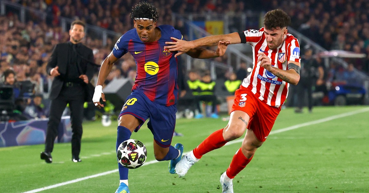 La Liga leaders Barcelona face Atletico Madrid, hoping to bounce back from their first-leg football defeat at home. Save Share Who: Atletico Madrid vs Barcelona What: Champions League quarterfinal, second leg Where: Metropolitano Stadium, Madrid, Spain When: Tuesday at 9pm (19:00 GMT) How to follow: We’ll have all the build-up on Al Jazeera Sport from 16:00 GMT in advance of our live text commentary stream. Spanish football clubs Atletico Madrid and Barcelona will meet for the third time in 10 days but, crucially, with a UEFA Champions League (UCL) semifinal berth on the line. Atletico may be far behind their Catalan opponents in the La Liga title race, but they go into Tuesday’s fixture as strong favourites, thanks to a first-leg victory against 10-man Barcelona at Camp Nou, and a strong home form in Europe this season. Barcelona, the reigning La Liga champions, will have it all to do if they are to keep alive their dream of clinching their sixth UCL trophy, and first since the 2014–2015 season. Here is all to know before the knockout tie: Julian Alvarez and Alexander Sorloth scored in each half as Atletico earned a precious 2-0 lead in a tense first-leg clash. The La Liga leaders were on top in the first half before Pau Cubarsi was sent off for bringing down Atletico’s Giuliano Simeone, who was through on goal. Alvarez whipped home the free kick at the stroke of halftime, and Sorloth doubled their advantage in the 70th minute to give Atletico a strong chance of reaching the semifinals. Barcelona thrashed crosstown rivals Espanyol 4-1 on Saturday, taking a major step towards retaining their La Liga title as they moved nine points clear of rivals Real Madrid, who are second. Ferran Torres struck twice, assisted by Lamine Yamal both times, first with a header from a corner in the 10th minute before doubling the lead in the 25th, racing clear from another Yamal pass. Espanyol pulled one back in the 56th minute when Pol Lozano fired in a rebound from just inside the box. But Yamal restored control in the 87th on a quick counter, with Marcus Rashford adding a fourth from Frenkie de Jong’s cross. Barca moved to 79 points with seven games left. Coach Diego Simeone rotated heavily for his team’s visit to face Sevilla to keep players fresh, as Atletico fell to a 2-1 defeat. Akor Adams sent the hosts ahead from the penalty spot, and after 20-year-old Atletico reserve defender Javier Bonar levelled, Nemanja Gudelj struck again for Sevilla before the interval. Atletico are fourth in the league standings with 57 points, four points behind third-placed Villarreal. Diego Simeone’s side have never won the competition. They reached the final in 2014 and 2016, but were beaten by city rivals Real on both occasions. Barcelona stormed into the quarterfinals with an emphatic 8-3 aggregate win over Newcastle United. Much of the work was done in their second-leg tie, in which Barca thrashed the Premier League side 7-2 at Camp Nou, as five different players scored. Atletico Madrid withstood a rousing Tottenham Hotspur fightback to advance 7-5 on aggregate despite a 3-2 second-leg loss in North London. Simeone’s side, who scored four times in the opening 22 minutes in the 5-2 first-leg home romp, wobbled under a home onslaught, but goals by Julian Alvarez and David Hancko ultimately gave them breathing space. The two teams have met twice in the Champions League knockout stages, both times at the quarterfinal stage, with Atletico going through in 2014 and 2016 on their run to the final each season. Atletico played the second leg at home on those occasions, too. Diego Simeone: “We know the opponent we are going to face, and we are aware of how strong they are, but we are also aware of what our objective is – to advance.” Hansi Flick: “We have the quality. We have the players who can change this. But, of course, we have to fight. We have to focus on the magic.” The two clubs have faced each other on 251 occasions. Barcelona have won 115 of those games, Atletico have won 79, and 57 ended as draws. April 8: Barcelona 0-2 Atletico (Champions League quarterfinal, first leg) April 4: Atletico 1-2 Barcelona (La Liga) March 3: Barcelona 3-0 Atletico (Copa del Rey semifinal) February 12 : Atletico 4-0 Barcelona (Copa del Rey semifinal) December 2 : Barcelona 3-1 Atletico (La Liga) April 2, 2025: Atletico 0-1 Barcelona (Copa del Rey semifinal) March 16, 2025: Atletico 2-4 Barcelona (La Liga) February 25, 2025: Barcelona 4-4 Atletico (Copa del Rey semifinal) December 21, 2024: Barcelona 1-2 Atletico (La Liga) April 17, 2024: Atletico 0-3 Barcelona (La Liga) Marc Pubill is suspended after picking up three yellow cards, while Jose Gimenez, Pablo Barrios, and David Hancko are doubtful due to injuries. Musso (goalkeeper); Molina, Le Normand, Lenglet, Ruggeri; Llorente, Koke; Simeone, Griezmann, Lookman; Alvarez Defender Cubarsi is suspended after his red card in the first leg and will be replaced by Ronald Araujo, who featured in the backline against Espanyol at the weekend. Marc Bernal, Raphinha, and Andreas Christensen are all out injured. Joan Garcia (goalkeeper); Kounde, Araujo, Martin, Cancelo; Eric Garcia, Pedri; Yamal, Fermin, Rashford; Lewandowski