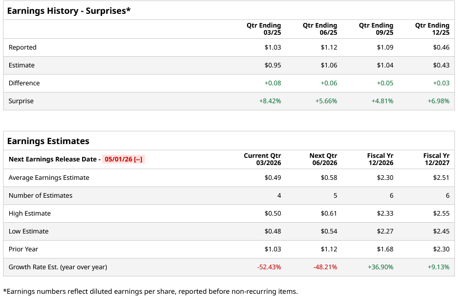 The above button links to Coinbase. Yahoo Finance is not a broker-dealer or investment adviser and does not offer securities or cryptocurrencies for sale or facilitate trading. Coinbase pays us for certain activity generated through this link. Prices displayed are informational. Wilmington, Delaware-based DuPont de Nemours, Inc. (DD) provides technology-based materials and solutions in the United States and internationally. The company has a market cap of $19.3 billion and operates through two segments, Healthcare & Water Technologies and Diversified Industrials. DD is expected to release its Q1 2026 earnings soon. Ahead of the event, analysts expect the company’s EPS to be $0.49 on a diluted basis, down 52.4% from $1.03 in the year-ago quarter. The company has exceeded Wall Street’s EPS estimates in each of its last four quarters. As the Cybersecurity Selloff Continues, Palo Alto Just Scored a New Deal with Anthropic. Should You Buy the Dip in PANW Stock? Dear ASML Stock Fans, Mark Your Calendars for April 15 Palantir Stock Is at 6-Month Lows - Time to Buy PLTR? Stop Missing Market Moves: Get the FREE Barchart Brief – your midday dose of stock movers, trending sectors, and actionable trade ideas, delivered right to your inbox. Sign Up Now! For fiscal 2026, analysts project the company’s earnings per share to be $2.30, up 36.9% from $1.68 in fiscal 2025. Moreover, its EPS is expected to rise 9.1% year over year (YoY) to $2.51 in fiscal 2027. DD stock has surged 95.9% over the past 52 weeks, outperforming the S&P 500 Index’s ($SPX) 29.4% rise and the State Street Basic Materials Select Sector SPDR ETF’s (XLB) 32.9% rise during the same time frame. On Feb. 10, DD stock rose 5% following the release of its Q4 2025 earnings. The company’s net sales for the quarter remained flat, coming in at $1.7 billion; its full-year net sales rose 2% from the prior year’s quarter to $6.8 billion. Moreover, DD’s adjusted EPS for the quarter rose 18% from its year-ago value to $0.46 and came in on top of the Wall Street estimates. For the full year, the company expects its net sales and adjusted EPS to be in the range of $7 billion to $7.1 billion and $2.25 to $2.30, respectively. Analysts are highly bullish on DD, with the stock having a “Strong Buy” rating overall. Among the 15 analysts covering the stock, 12 are recommending a “Strong Buy,” one suggests a “Moderate Buy,” and two suggest a “Hold.” DD’s average analyst price target of $55.64 indicates an upside of 17.8% from current levels. On the date of publication, Aritra Gangopadhyay did not have (either directly or indirectly) positions in any of the securities mentioned in this article. All information and data in this article is solely for informational purposes. This article was originally published on Barchart.com