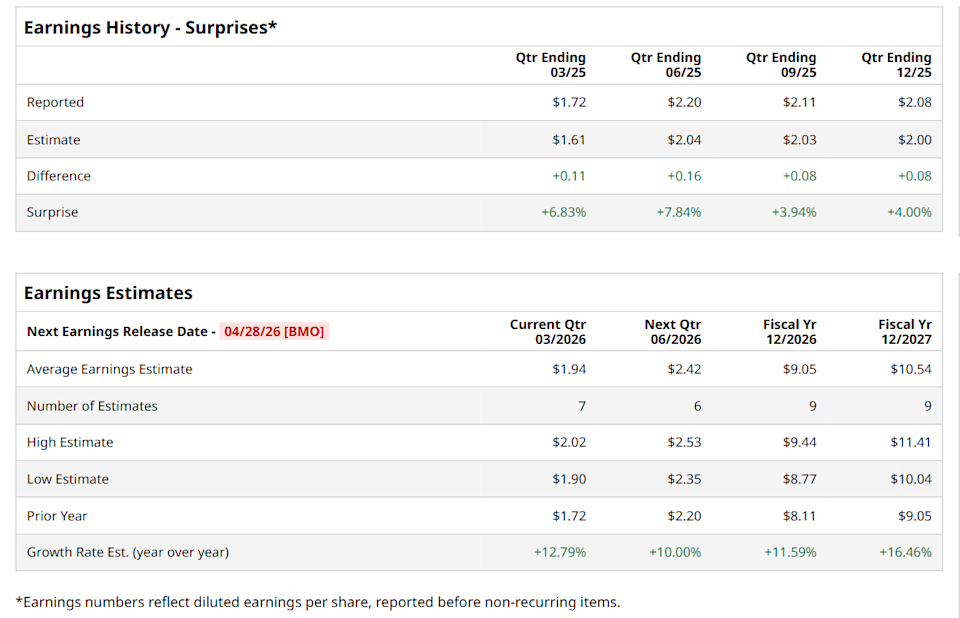 The above button links to Coinbase. Yahoo Finance is not a broker-dealer or investment adviser and does not offer securities or cryptocurrencies for sale or facilitate trading. Coinbase pays us for certain activity generated through this link. Prices displayed are informational. McLean, Virginia-based Hilton Worldwide Holdings Inc. (HLT) is a hospitality company that manages, franchises, and leases hotels and resorts. Valued at a market cap of $74 billion, the company is scheduled to report fiscal Q1 2026 earnings before the market opens on Tuesday, Apr. 28. Before this event, analysts expect this hospitality company to report a profit of $1.94 per share, up 12.8% from $1.72 per share in the year-ago quarter. The company has topped Wall Street’s bottom-line estimates in each of the last four quarters. Its earnings of $2.08 per share in the previous quarter outpaced the forecasted figure by 4%. As the Cybersecurity Selloff Continues, Palo Alto Just Scored a New Deal with Anthropic. Should You Buy the Dip in PANW Stock? Dear ASML Stock Fans, Mark Your Calendars for April 15 Palantir Stock Is at 6-Month Lows - Time to Buy PLTR? Tired of missing midday reversals? The FREE Barchart Brief newsletter keeps you in the know. Sign up now! For the current fiscal year, ending in December, analysts expect HLT to report a profit of $9.05 per share, representing an 11.6% increase from $8.11 per share in fiscal 2025. Furthermore, its EPS is expected to grow 16.5% year-over-year to $10.54 in fiscal 2027. HLT has rallied 54.1% over the past 52 weeks, considerably outperforming both the S&P 500 Index's ($SPX) 29.4% return and the State Street Consumer Discretionary Select Sector SPDR ETF’s (XLY) 20.2% uptick over the same time period. On Feb. 11, shares of HLT surged marginally after reporting better-than-expected Q4 results. The company’s total revenue increased 10.9% year-over-year to $3.1 billion, while its adjusted EPS improved 18.2% from the year-ago quarter, reaching $2.08. Strong international demand, stable group bookings, and continued cost discipline helped the company surpass Wall Street’s expectations. Wall Street analysts are moderately optimistic about HLT’s stock, with a "Moderate Buy" rating overall. Among 24 analysts covering the stock, 10 recommend "Strong Buy," three indicate "Moderate Buy,” and 11 suggest "Hold." The mean price target for HLT is $329, indicating a 1.7% potential upside from the current levels. On the date of publication, Neharika Jain did not have (either directly or indirectly) positions in any of the securities mentioned in this article. All information and data in this article is solely for informational purposes. This article was originally published on Barchart.com