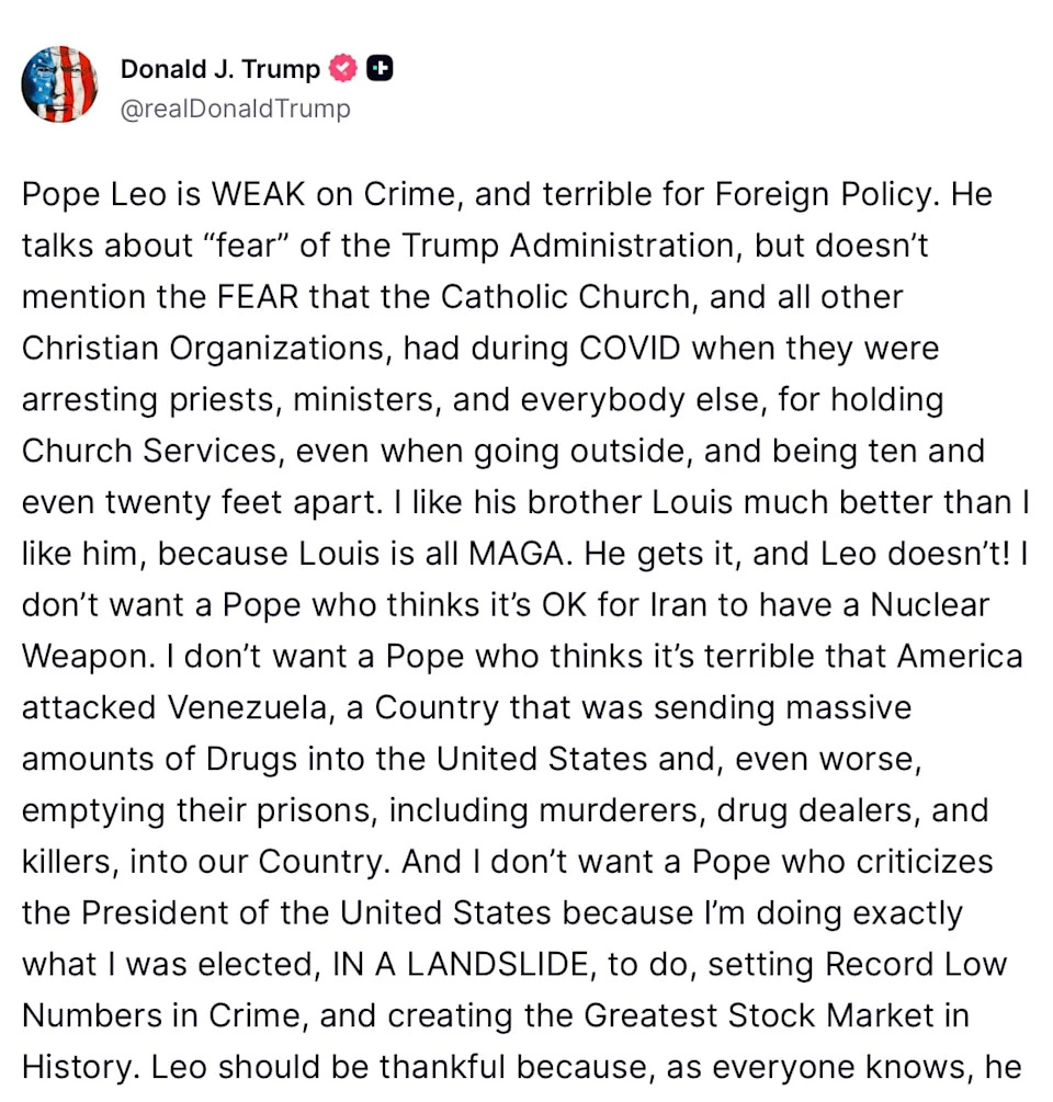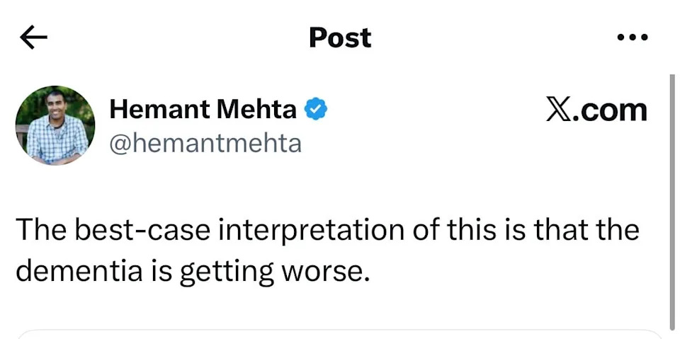 Donald Trump’s critics are pointing to one explanation for the president’s apparent mix-up of Jesus Christ and a Red Cross doctor: cognitive decline. After the president, 79, was lambasted—including by some in his MAGA base—for sharing a now-deleted post depicting him as Jesus, he offered a puzzling explanation. “It’s supposed to be me as a doctor making people better,” the president said of the AI-generated image on Monday afternoon. The image, posted to Truth Social late Sunday night, portrays Trump as Christ, laying his hand on a patient in a hospital bed as if healing him. He is surrounded by other figures, including a nurse, a soldier, and a praying woman. Also visible are the U.S. flag, several bald eagles, the Statue of Liberty, and the Lincoln Memorial. “I thought it was me as a doctor, and had to do with Red Cross, as a Red Cross worker there, which we support,” he said, adding, “Only the fake news could come up with that one.” Many appeared unconvinced by his half-baked explanation, prompting renewed speculation about Trump’s cognitive health. The White House did not respond to the Daily Beast’s request for comment on the now-deleted post. “The best-case interpretation of this is that the dementia is getting worse,” Hemant Mehta, a political commentator, shared with his over 100,000 X followers. “He is so mentally deficient it’s nearly impossible to distinguish between his delusions and disorders on one hand, and his deceit and distractions on the other,” another user who identifies as “Duty To Warn,” piled on. Another X user renewed calls for the 25th Amendment, which would forcibly remove the president from office. “25th Amendment. NOW! I thought Biden was loosing it, but this is on a whole different level,” the user, who identifies as “Paddy,” wrote. Throughout his second term, the Daily Beast has extensively reported on Trump’s declining health, as the president is seen frequently napping during Cabinet meetings, having mental slip-ups, slurring his words, and suffering from swollen ankles. However, the president shared his Christ-like post immediately after he raged against Pope Leo XIV in a 353-word Truth Social screed, where he referred to the American pontiff as “weak” for opposing his war on Iran, and accused him of catering to the “Radical Left.” “Leo should be thankful,” Trump raged, claiming that the Chicago-native “wasn’t on any list to be Pope, and was only put there by the Church because he was an American, and they thought that would be the best way to deal with President Donald J. Trump.” On Monday morning, an unruffled Pope Leo responded to the president’s 334-word Truth Social screed by doubling down in his criticism of Trump and Israel’s war on Iran. “I have no fear of the Trump administration, or speaking out loudly of the message of the Gospel, which is what I believe I am here to do,” the pontiff told reporters aboard the papal flight to Algiers—the start of an 11-day trip to four African countries. When asked about Trump’s Truth Social website itself, the pope offered his own wry remark. “It’s ironic—the name of the site itself. Say no more,” he added.