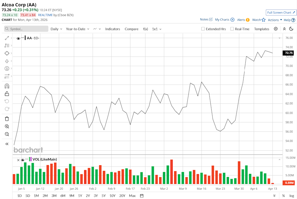 The above button links to Coinbase. Yahoo Finance is not a broker-dealer or investment adviser and does not offer securities or cryptocurrencies for sale or facilitate trading. Coinbase pays us for certain activity generated through this link. Prices displayed are informational. Wall Street major Morgan Stanley's upgrade of the aluminum company Alcoa (AA) to “Overweight” resulted in its shares rising by more than 2%. The institution's bull case was primarily based on the disruptions brought about by the war in the Middle East, a region that accounts for 9% of the global aluminum supply. About 70% of which is exported. Consequently, the firm has revised its pricing for Alcoa's aluminum segment higher by 13% in 2026, along with a 41% and 52% upward revision in EBITDA and EPS, respectively. Dollar Turns Lower After President Trump Said Iran Wants a Deal Dollar Strengthens as US-Iran Peace Talks Break Down Dollar Retreats on US-Iran Peace Optimism and Below-Estimate PPI Report Tired of missing midday reversals? The FREE Barchart Brief newsletter keeps you in the know. Sign up now! Founded way back in 1888, Alcoa is a pure upstream aluminum company and operates across the entire aluminum value chain. It is involved in bauxite mining, alumina refining, and aluminum smelting, while also owning its own power assets. It has operations in about ten countries worldwide. Valued at a market cap of about $19.3 billion, AA stock is up 39% on a year-to-date (YTD) basis. Notably, Morgan Stanley's reasons for owning Alcoa's shares currently are solid. However, they are tactical. Short-term. The question is, can Alcoa be a “Buy” for the long term? Although earnings missed Wall Street's estimates, production and shipments increased when compared to the prior year. In fact, earnings also went up on a year-over-year (YoY) basis. Revenues for the fourth quarter, which ended Dec. 31, 2025, were at $3.45 billion. This was a slight decrease from the previous year's $3.49 billion. In the same period, earnings went up by 11.8% to $0.85 per share, missing the consensus estimate of $0.93 per share. Coming to production, both alumina and aluminum went up due to higher output in the company's Australian refineries and progress in its San Ciprián smelter. While alumina production increased by 3.8% on an annual basis to 2,481 thousand metric tons (kmt), aluminum production in the same period was up 5.8% to 604 kmt. Further, shipments for both also followed the same pattern. Alumina shipments rose to 2,324 kmt from 2,289 kmt in the year-ago period, and aluminum shipments increased as well, to 667 kmt from 641 kmt. For 2026, Alcoa expects alumina production and shipments to be between 9.7 and 9.9 million metric tons and between 11.8 and 12 million metric tons, respectively. Similarly, for aluminum, production and shipments are expected to range between 2.4 and 2.6 million metric tons and 2.6 and 2.8 million metric tons, respectively. 2025 was also a positive year for the company in terms of its cash flow from operations. The metric witnessed a jump of over 90.5% in 2025 to $1.2 billion, as it closed the quarter with a cash balance of $1.6 billion and no short-term debt on its books. Notably, even after a strong rally in 2026, the AA stock is trading at undervalued levels. While its forward P/E and P/S of 11.40 and 1.33 are below the sector medians, the EV/EBITDA metric is a more appropriate valuation metric for a company like Alcoa, which is involved in heavy capex. With a forward EV/EBITDA of 6.15, it is below the sector median of 8.44. Aluminum has been in short supply over the past few years as production could not keep up with the high demand after the pandemic. Moreover, this scenario is set to continue, with Goldman Sachs raising its forecasts for aluminum prices in both 2026 and 2027. That is good news for Alcoa, but amid many competitors, how can Alcoa be a prime beneficiary of this trend? Well, Alcoa enjoys a crucial advantage over its peers. Unlike secondary producers reliant on purchasing raw materials at elevated spot prices, Alcoa mines its own bauxite and refines its own alumina. By acquiring its joint venture partner, Alumina Limited, in 2024, Alcoa consolidated complete control over one of the largest bauxite and alumina operations globally. This upstream leverage provides a massive structural advantage, allowing the company to translate the widening primary metal deficit directly into robust free cash flow generation. Then there is ELYSIS, a green smelting technology developed with Rio Tinto (RIO). ELYSIS is uniquely designed to emit pure oxygen instead of greenhouse gases during smelting. While traditional facilities consume carbon anodes and release roughly two tons of carbon dioxide for just a ton of metal produced, ELYSIS replaces these with proprietary inert anodes that emit pure oxygen. Moving beyond laboratory phases in 2024, the joint venture successfully scaled its technology to industrial testing using massive 450-kiloampere cells at the Alma smelter in Quebec. It positions Alcoa to not only decarbonize its own output but also to potentially license this green technology package globally. Consequently, Alcoa could soon tap into high-margin licensing revenue streams as competitors rush to acquire the system to satisfy increasingly strict global environmental mandates. When looking at scale, Alcoa holds up well. While looking at raw scale based on 2024 and 2025 metrics, Rio Tinto leads with approximately 3.2 million tons of primary aluminum production, whereas Alcoa produces roughly 2.1 million tons. Century (CENX) trails significantly at under 800,000 tons. However, Alcoa remains exceptionally competitive because its premier bauxite mining assets in Australia and Brazil ensure an uninterrupted, high-quality raw material pipeline that smaller peers simply cannot replicate. Despite strong market tailwinds, Alcoa is battling severe, localized operational headwinds. A major ongoing headache i