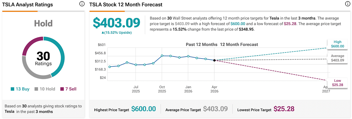 The above button links to Coinbase. Yahoo Finance is not a broker-dealer or investment adviser and does not offer securities or cryptocurrencies for sale or facilitate trading. Coinbase pays us for certain activity generated through this link. Prices displayed are informational. The world’s most famous electric car maker is entering a gambling phase with its new technology. Today, Barclays (BCS) analyst Dan Levy maintained his “Equalweight” rating on Tesla (TSLA), while issuing a stern warning about the company’s massive spending plans. Unlock hedge fund-level data and powerful investing tools for smarter, sharper decisions Discover top-performing stock ideas and upgrade to a portfolio of market leaders with Smart Investor Picks While Tesla fans are excited about the new Terafab chip factory project, Levy is concerned about the actual cost of building Elon Musk’s dream. He kept his price target at $360, even as other analysts have pushed their forecasts much higher. The main takeaway from today’s report is that Tesla might be underestimating how much money it needs to build its future. The company recently revealed plans for the Terafab project, which aims to produce massive amounts of chips for self-driving cars and robots. In today’s report, Levy cautioned that the project could demand expenditures “many multiples” beyond even his most optimistic scenarios. While Tesla is already planning to spend over $20 billion on capital projects this year, Levy warns that the real cost of this new chip initiative will be “likely well more than an order of magnitude higher” than what the company has told the public so far. The high cost of these physical AI projects is starting to show up in the company’s bank account. For years, Tesla was known for its ability to generate cash, but the Terafab era is changing that. Levy highlighted that Barclays projects Tesla’s 2026 free cash flow at “negative $3 billion” even before it starts counting the costs of the new chip factory. This means the company is currently spending more to build its future than it is making from selling cars. Levy noted that while the vision for robots and AI is exciting, a “solid underlying auto business will be required to fund a portion of Tesla’s growth aspirations.” Perhaps the most surprising part of today’s analysis is how little the actual car sales seem to matter to investors right now. Levy pointed out that the usual numbers, like how many cars Tesla delivers each quarter, have taken a back seat to the AI story. He wrote in today’s note that it has become “increasingly evident to us that auto volumes (and broader fundamentals) have increasingly become an afterthought.” At this point, the stock is being moved almost entirely by the narrative of what Tesla could become. Because of this, Barclays is staying on the sidelines, waiting to see if the company can actually afford to turn its massive AI dreams into reality. Analysts remain cautious on Tesla’s long-term outlook. On TipRanks, TSLA has a Hold consensus rating based on 13 Buys, 10 Holds, and seven Sell ratings. The average 12-month Tesla price target of $403.09 implies 15.5% upside potential from current levels. See more TSLA analyst ratings Disclaimer & DisclosureReport an Issue