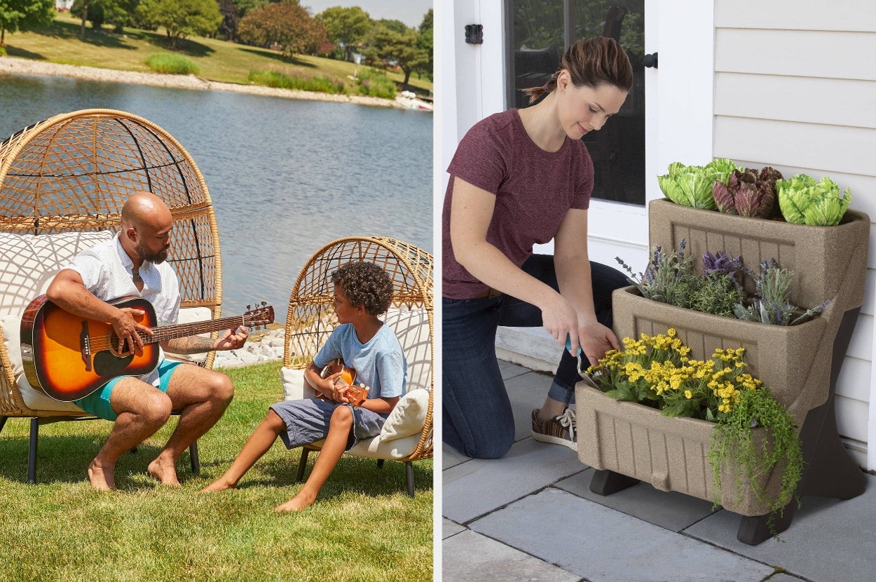 We hope you love our recommendations! While every product is independently chosen by our editors, BuzzFeed and our publishing partners may collect a share of sales or other compensation from the links on this page. You can read more about how our affiliate partnerships work in our Editorial Standards & Ethics Guide. Skip the plane ticket and spruce up your existing outdoor space. Promising review: “I love that the bowl of this firepit is not bolted to the frame and can be independently lifted out. It makes it so much easier to take care of. The assembly was extremely easy. The lid is sturdy and also easy to handle with the included hook. My absolute favorite thing about this firepit was that it came with a cover included. This firepit is sent to you ready to be taken care of well and easily. The cover seems to be water-resistant and has an elastic band at the base and is simple to put in place. The size is perfect and easy to handle. It is lightweight whether the bowl is in the frame or you are carrying each piece separately. If you have been looking for a great and easy-to-care-for firepit, you found it. —anonymous Promising review: “Absolutely adorable!!! So easy to put together and cute as can be. What a perfect kid’s chair for the money!!!! Kids and animals all love it. Walmart is truly stepping up their design game.” —Holly Promising review: “We bought these lights for an outdoor patio wall. They are perfect. The size is medium, large enough to give light but not overpowering. They were simple to hang and the look is just great. The price was right too.” —Sharon Promising review: “We lined about 12 of these up for a backyard party and they totally transformed our backyard. A very inexpensive touch for a loud statement. We had some before and they lasted a couple of years! Highly recommend!” —paige Promising review: “So impressed with the quality! I think we are going to get another one!” —jill Price: $405.99+ (available in five colors) Promising review: “Best product. Kids are in heaven, and grandma as well. My daughter bought this for her grandbabies. Boy, it keeps all six busy.” —Robyn Promising review: “My new 15-foot umbrella has made my outdoor living space complete! The solar lights make evening entertaining special. It completely covers my outdoor furniture and offers not only good shade but also protects my patio furniture from the rain. This was a great purchase!” —Sandra Price: $159.99+ (originally $214.99; available in 12 colors) Price: $554.98+ (available with or without a cover) Promising review: “Very nice sturdy lounges with thick cushion that keeps its shape after seating. My husband put it together without my help. We got 2 of these and they look very nice next to each other. Love the trays underneath as they come so in handy, eliminating the need for other little tables. We have them under patio shade and we live in California, not sure how they would do in full sun. We have them covered in nice pocket beach towels though! We would definitely recommend these lounges!” —Sandina Price: $323.20 (originally $361.74; available in 14 colors) Promising review: “I’ve put together quite a few pools and this is the easiest one so far. Everything snaps together well and disassembles easily. Struggled with draining at the end of the season but that was likely user error, lost the instructions. Survived the summer with my kids, no issues.” —Erica Price: $248+ (originally $299+; available in two sizes and also in styles with floats and games) Promising review: “These chairs were a smoking hot deal so of course we had to get four for our firepit area. They were extremely easy to put together. The required hardware was very organized and the tools required were included. We love that they fold up for easy storage. Highly recommend these chairs.” —DLayne Price: $119.99 (originally $239.99; available in 14 colors) Price: $103.78+ (originally $122.09+; available in five colors) Promising review: “Really love this fountain. Not too big and not too small. It looks more expensive than what it costs. The setup and assembly took 10 minutes. The sound from it is just wonderful. I recommend this fountain and so glad I bought it.” —GianC Promising review: “Better Homes and Gardens planters are quickly becoming my favorite. And this extra tall one is no exception. I love the textured design on the outside. It has very sturdy walls and should hold up for the long term. I was pleased with the first one I bought, so I bought a second for the back deck. I'm excited to have one of this height to use as a statement piece with other average-sized pots in both locations. They have a rubber plug in the drain hole, so it can be used either way.” —Walmart customer Price: $348.99+ (originally $599.99+; available in three sizes and three colors). Promising review: “This has become my favorite piece of outdoor furniture. The canopy can be adjusted to ensure I'm always protected from the sun. It's comfortable and sturdy enough for my elderly mother to sit on it and get up from it without assistance. I might get a second since I like to sit with my legs up so that others can enjoy it too.” —Angela Price: $107.99+ (originally $179; available in seven colors) Promising review: “Great swing. Easy to put together, comfortable, sturdy. The chain is positioned in a way that doesn't interfere with your arm or elbow. Cushions were nice, although they were more of a rust color than red. Love it.” —Judy Promising review: “This is perfect for our herbs. Best thing we ever got for the garden.” —Kim * Things To Make Any Closet In Your House, Well, Better * Easy Ways To Help Make Your Backyard The Best On The Block * Spend A Little, Get A Lot: Home Upgrades That Won't Break Your Budget * Things To Make Your Rental Kitchen Feel More Like A Custom Job * Tips For Hiding All The Parts Of Your Home That Make You Go "Ugh" When You See 'E