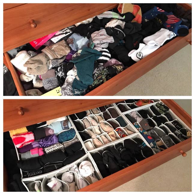 We hope you love our recommendations! While every product is independently chosen by our editors, BuzzFeed and our publishing partners may collect a share of sales or other compensation from the links on this page. You can read more about how our affiliate partnerships work in our Editorial Standards & Ethics Guide. Yes, you can keep your little habit of snagging the funniest coffee mug at the thrift store. Each hanger holds 10 pairs of leggings. After putting these in several stories, I finally bought a pair and my gosh, just using one legitimately freed up a third of a drawer. But because it came with two hangers, I'm using the other one for my nice scarves! (I use tissue paper in between the clamps and my actual scarves.) Promising review: "Yes...I have too many clothes. I LOVE my leggings. These saved me soooo much room! Now I have much more space, AND I can see them all easier." —Larry Seymour Check out how they work on TikTok! And PS: Wonder Hanger is a small biz! Promising review: "I wish I had taken the time to take a before and after pic because I have so much more room in there now than I did before. I found the cutest tops in there that I had completely forgotten about because my clothes were crammed in the closet so tightly. Most of the time, I felt like I had nothing to wear, LOL, and now, I know exactly what I have, and it's even organized by sleeve length and color. I would definitely buy again and actually plan to buy more for my husband and children to use as well." —Mariko Lamb Get 10 from Amazon for $13.99+ (available in three colors and packs of 10 or 24). Promising review: "I wish I bought this years ago. I have dealt with mops falling over and being messy in my small hall closet. Now they are nice and neat. Bonus: There are hooks too, which I didn’t know when I ordered it. Woo Hoo!" —Andrea Each set comes with four bins: a six-cell (for scarves, hankies, and ties), an eight-cell (for undies), a seven-cell (for bras), and a 24-cell (for socks). They're also collapsable and fold flat if you need to store them away! Promising review: "I am a neat freak so these were right up my alley. They are great organizers for my socks, undies and some of my beauty products. Not super sturdy but still pleased with this product and will most likely order a few more for organizing other drawers." —Kelley Anderson Get the set of four from Amazon for $15.97 (available in seven colors). Promising review: "These have been such a huge space saver in our game closet. We put our games in these and got rid of the tattered and broken cardboard boxes. They close tight so when we grab a game everything doesn’t fall out. Our kids can quickly see the pieces and read the label to grab a game to play out of the closet. We love these!" —Tawny Get it from Amazon for $24.99+ (available in two pack sizes). Promising review: "The best way to organize my messy stash of cables and adapters I need to carry because my Macbook Pro only has four USB-C ports, and that's it. Wonderful job of keeping everything organized yet easy to use at a moment's notice." —Santokki Get it from Amazon for $16.99+ (available in four sizes and four colors). Promising review: "I was sick of my cords and compressor hose hanging off of and on top of my table saw. I saw these on Amazon and have (or had) some available wall space in my workshop. What a great solution!" —LrngToFly Get a six-pack from Amazon for $17.99 (available in other sizes and quantities and in another color). Elypro is a small business in New York City making clever organization products for the home. Promising review: "I use these to organize my coffee mugs and my glasses in smaller cabinets. They not only look nicer, they save space without tilting when you try to stack mugs without support. I also use these to stack ramekins and that is also better now. These are adjustable to fit different sizes. I highly recommend these organizers!" —Amazon Customer Get a set of six (to organize 12 mugs) from Amazon for $24.99 (available in three colors). Promising review: "It has doubled my closet space in my apartment where I can’t make any damage in terms of adding another permanent shelf — so this has been a perfect solution. It was easy to assemble and is sturdy. I’ve had it for a couple of weeks now with no issue. Your closet has to be pretty high for this to work or else your shirts above are going to get caught on the hangers below and for my case, some of my shirts are dragging on the floor — just keep this in mind when you’re thinking about purchasing." —Alex Made from heavy-gauge steel and can store up to 36 cans of various sizes. Promising review: "These units were easy to assemble. They felt sturdy. I love that they are made of metal and not cheap plastic. I'm considering buying two more, and going side by side and stocking up on can goods!" —Amazon Customer Get it from Amazon for $25.97 (available in three colors). Promising review: "I am a neat freak and purchased this for my husband (I mean myself!) to organize the pile of hats laying around. I love it, as it cleaned up the hat area. He loves it because he can find the hat he needs easily. I hung them up with ease. They work great. I would purchase again for myself or a gift." —Jessica P Promising review: "Such an efficient and easy way to store hats. Whoever came up with this is a genius!" —Melissa Humphrey Get it from Amazon for $19.99+ (available in white or black and individually or as a two-pack). I have VERY narrow kitchen drawers in my NYC one-bedroom apartment kitchen, and buying one of these organizers has transformed my cutlery drawer. I'm able to safely reach in and grab whatever I need (like a manual can opener for tuna salad or a mini whisk for a hot chocolate) without having to sift tools around. Promising review: "We had our children's smaller silverware separate from the adult silverware tossed in a completely different drawer. I got tired of looking at t