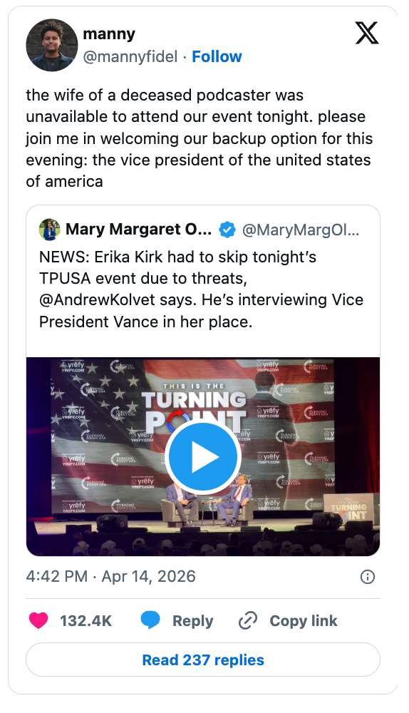 “The Pope, who’s spent his entire adult life studying religion, apparently knows less about it than JD Vance, who’s been Catholic for about five minutes.” I'm an LA-based trending news writer covering health, politics, and internet culture. Turning Point USA seems to have misestimated crowd size for Vance. Akins Ford Arena less than 25% filled for the vice president. pic.twitter.com/K2SnkmuATh God does not bless any conflict. Anyone who is a disciple of Christ, the Prince of Peace, is never on the side of those who once wielded the sword and today drop bombs. Military action will not create space for freedom or times of #Peace, which comes only from the patient… JD Vance has been a Catholic for like 2 seconds and he's already telling the Pope what to focus on and to be more careful when talking about theology.The arrogance of that man. Truly remarkable how many people have told the Pope, in some way or another, to "shut up and dribble." Or corrected him on the Bible, despite their thin education on theology. Or told him to stay out of US affairs, despite him being a US citizen. The hubris is amazing. The Pope, who’s spent his entire adult life studying religion, apparently knows less about it than JD Vance, who’s been Catholic for about five minutes.