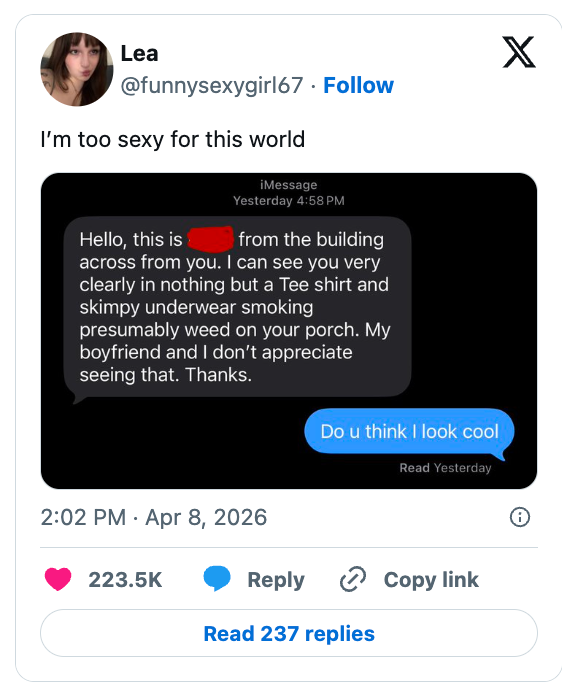 This little slice of joy each week is how I’m coping right now. I'm an LA-based trending news writer covering health, politics, and internet culture. when i read a 1 star review of a movie/book i gave 5 stars and they kinda have a point pic.twitter.com/UGkkkEcyht told my boyfriend I dreamt of Zohran Mamdani last night and he asked if our clothes were on pic.twitter.com/JHoav9FFPc Boss just came up behind me as I was looking at her place on Zillow pic.twitter.com/MDtDQ5focW How I move when I have 8 overdue projects pic.twitter.com/A1I3MZtxWI This being what it's like to take out student loans in America: pic.twitter.com/5YelE1Oj2p Coworker and I are in the same Google Doc at 10:22pm pic.twitter.com/Oy6DlNowfJ People Shared Some Funny AF Tweets This Week, And I Think You Deserve A Little Laugh, So Here They Are For You It's Not Much, But Here Are 29 Funny Tweets From The Week To Help You Unclench Your Jaw For 5 Minutes