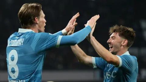 Several armed men robbed a bank in broad daylight in Naples, holding 25 people hostage before making their escape via a tunnel. Police surrounded a branch of CrΓ©dit Agricole in the southern Italian city shortly after the robbery began around midday local time (10:00 GMT). Local outlets reported that they negotiated with the robbers before the hostages could be released, about two hours into the robbery. Firemen could be seen smashing in a window with battering rams and helping people climb out from inside in videos shared on social media. Some hostages simply shook off the shards of glass and walked on. But others looked visibly shaken, crying and hugging their relatives. Six people, who were in a state of shock, were offered medical assistance. One man later told local news site Fanpage.it that the robbers had locked them into a room and that, while they were armed, "they did not use violence". Nobody was seriously injured. "Thanks to the swift response... all the hostages were freed shortly after 13:30 without serious injuries," regional official Michele di Bari said in a statement. A large crowd of bystanders, local residents and firefighters gathered in the square waiting for developments, while ten of thousands of people tuned into a livestream from the scene of the crime. Members of the special forces of the carabinieri armed police were urgently flown in from Tuscany. It was not until several hours later that they stormed the bank by breaking a window. Several shots and the loud noises of stun grenades could be heard on the live feed shortly after. But by then, the robbers had reportedly escaped through a tunnel, local media reported. It was thought they could have vanished into the sewer system. The video feed later showed a number of carabinieri and firefighters peering into a manhole nearby as a crowd continued to mill about the square. Fanpage.it reported that it was not yet possibly to quantify the value of the loot taken because the robbers had seized personal safety deposit boxes rather than cash. The 45-year-old, from Italy, moved seats to sit beside the woman during the night-time journey to Edinburgh. Scott McTominay and Billy Gilmour have already gained hero status after making a big impact at the Italian club. Graeme and Elaine Winn were said to be on a "dream holiday" in Italy when they died. Elaine and Graeme Winn, from Market Harborough, were killed in a cable car crash in Italy. Elaine and Graeme Winn were among four people killed in the incident at Mount Faito, while another was "extremely seriously injured".