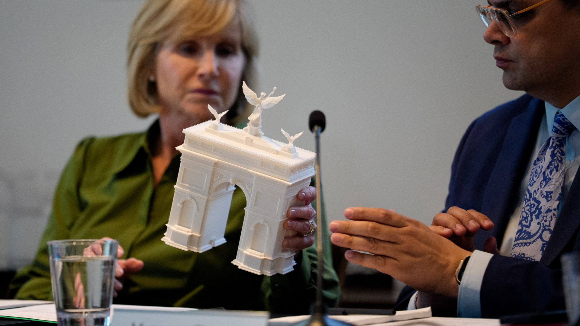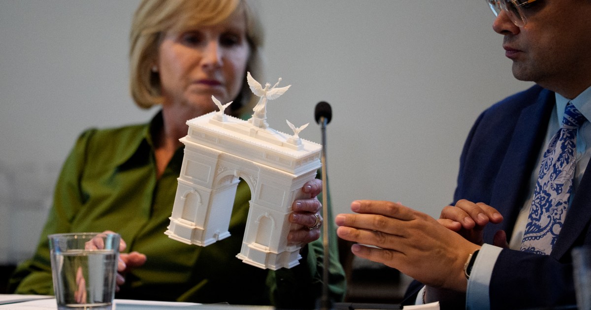 The proposed 76-metre arch would tower over other iconic landmarks in Washington, DC, and has attracted scrutiny. Save Share United States President Donald Trump’s goal of erecting a colossal arch in Washington, DC, has taken another step forward, with a key agency approving his proposed design for the monument. The US Commission of Fine Arts, whose members were appointed by Trump, gave its go-ahead to the president’s design for a lofty 76-metre-high (250-foot) arch. If given final approval, the arch would be built on Memorial Circle, between the Arlington National Cemetery and the Lincoln Memorial. It would tower above other landmarks in the national capital. White House spokesperson Davis Ingle hailed the commission’s approval as a “step in accomplishing President Trump’s promise to the American people from the campaign trail — to Make America Safe and Beautiful Again”. But the arch has faced criticism, including for potentially obscuring views of the national cemetery, a resting place for war veterans. Public Citizen Litigation Group is representing some Vietnam War veterans in a lawsuit against the proposed construction, which they argue needs congressional approval. Even the vice chair of the Commission of Fine Arts, James McCrery II, suggested that Trump’s proposed “Triumphal Arch” ditch the winged statue and eagles on its top. He also opposed the lions at its base, pointing out that African animals are “not a beast natural to the North American continent”. The enormous arch is another effort by the US president to leave his mark on the physical landscape of Washington, DC. In January, he told reporters he wants the arch to be the “biggest one of all”. The commission still needs to vote on final approval for the proposal after reviewing updated designs. Current plans show the arch would be significantly larger than the Lincoln Memorial, which is 99 feet (30 metres) tall, and about twice as tall as the famous Arc de Triomphe in Paris, which the design resembles. The phrases “One Nation Under God” and “Liberty and Justice for All” would be written in gold lettering atop either side of the monument. About three out of every four people who delivered public comments about the project expressed opposition, many of them citing its enormous size. But the arch is one of several Trump projects that have received public pushback. Trump has sought to paint the granite of the Eisenhower Executive Office Building white, and his allies plan to close the Kennedy Center for the Performing Arts, a national theatre complex, for two years of renovations, after adding Trump’s name to the exterior. One of the most permanent changes so far has been the abrupt demolition of the White House’s East Wing, in order to make room for an enormous ballroom, long one of Trump’s priorities. But that project is likewise entangled in legal battles, with critics arguing that congressional approval is required. On Wednesday, Judge Richard Leon clarified that construction on underground structures at the ballroom site could continue, as part of an exemption he previously allowed for national security concerns. But he maintained his short-term injunction against construction on the ballroom itself, batting down Trump’s position that the whole project should proceed. “Defendants argue that the entire ballroom construction project, from tip to tail, falls within the safety-and-security exception and therefore may proceed unabated,” Leon wrote in Thursday’s ruling. “That is neither a reasonable nor a correct reading of my Order!” The president responded on social media by calling Leon an “out of control Trump hating” judge. Leon was appointed in 2002 under Republican President George W Bush.