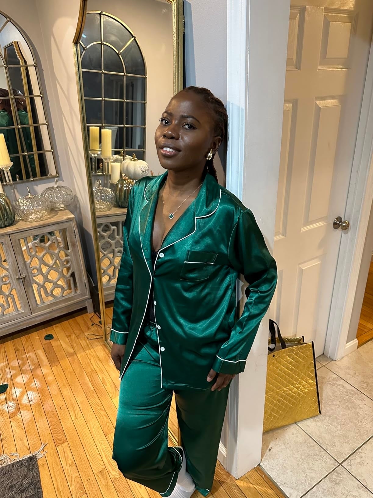 Promising review: "Just buy it!! The quality is way higher than expected. Very soft, stretchy, and thick. The green was not what I had expected, but I loved it. I wore it to an Italian fest and to work. I got so many compliments. It does run big, but it looks so good. The pants are long, but I wore platform sneakers. After I washed them, I could wear them with regular sneakers. Highly recommended." —SHAY