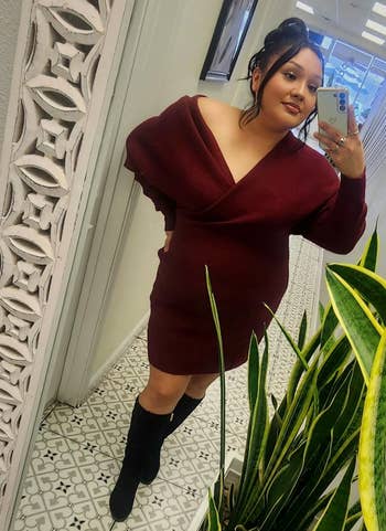 Promising review: "This dress is such high quality. I ordered it for my mom's graduation because I didn’t own any winter dresses, and it is unbelievably comfortable and quite warm. I still recommend a jacket because the sweater material isn’t very thick on its own, but it’s very soft, and I will be wearing it as often as I can get away with." —Ash Sunderman