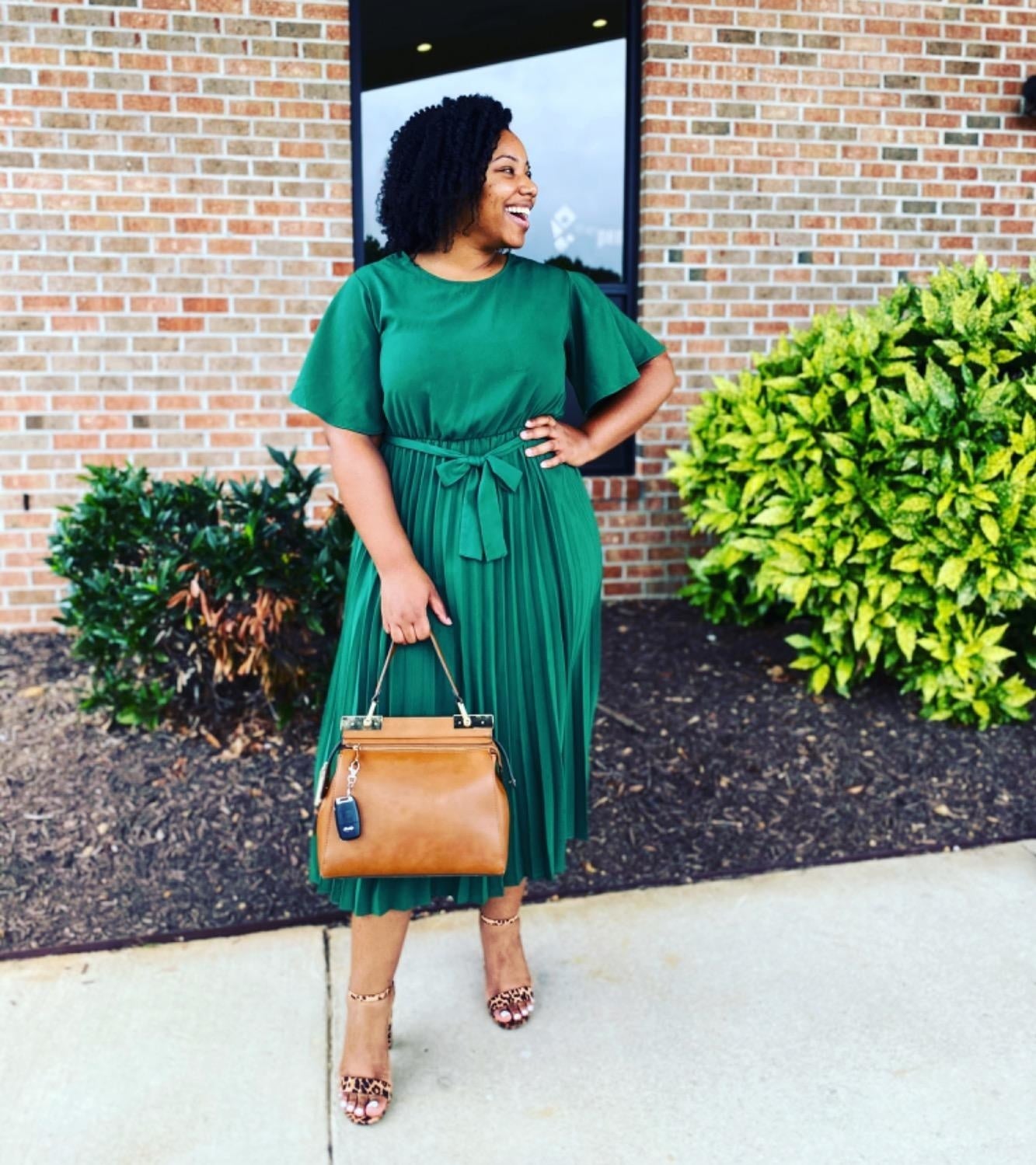 Promising review: "I’ve worn this dress more times than I can count. It's comfy, stretchy. I wear it to work, church, weddings, and funerals. It's so easy to throw on and makes your curves look just right. Depending on the occasion, I may wear it with or without the belt. I will be purchasing more colors." —Kaylie Henderson