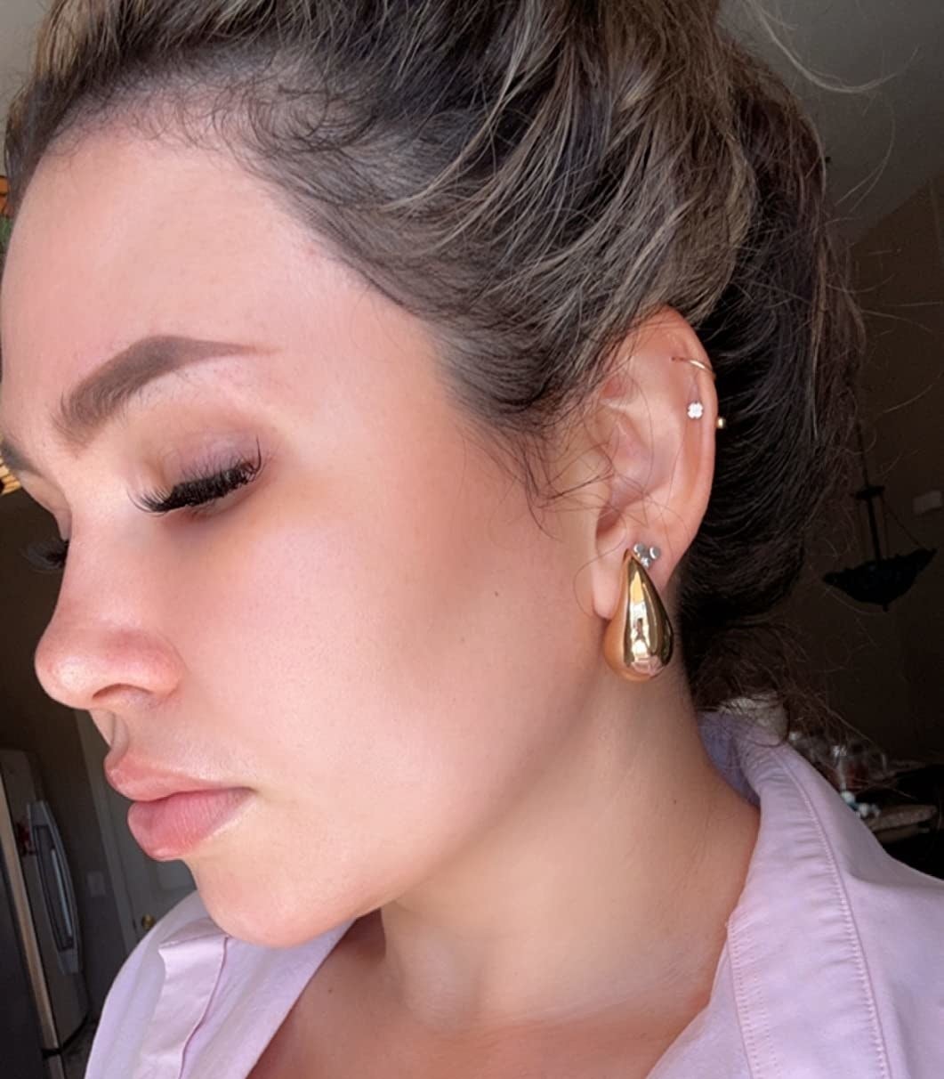 Promising review: "These are gorgeous and they elevate any outfit. They are also not heavy whatsoever. I wore them for hours and forgot they were even on because they are so comfortable." —Arantsa