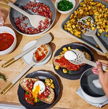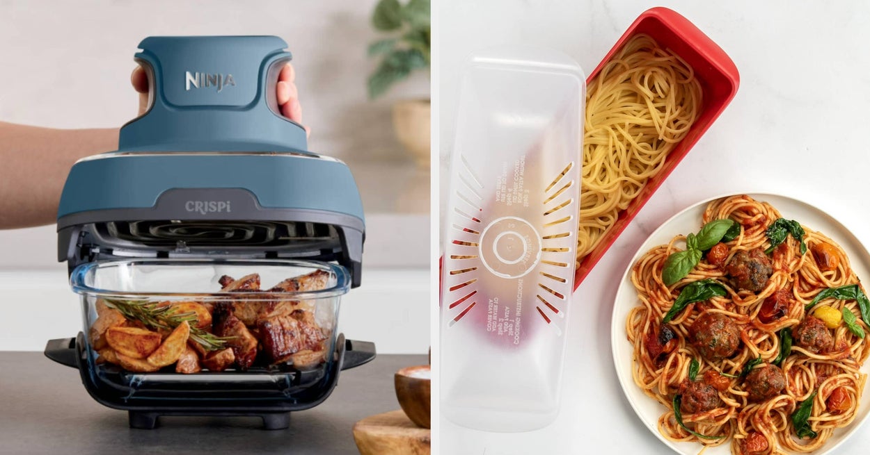 We hope you love our recommendations! While every product is independently chosen by our editors, BuzzFeed and our publishing partners may collect a share of sales or other compensation from the links on this page. You can read more about how our affiliate partnerships work in our Editorial Standards & Ethics Guide. Minimal prep, maximum flavor—your weeknight lifesavers await. Promising review: “I've been smoking pork butt shoulders for quite a few years. This tool helped me tear through two huge pork butt shoulders in no time at all. I was very pleased with their performance, and it saved me a lot of time and trouble. Would definitely recommend.” —jeff Price: $8.88 (also available in a four-pack) Promising review: “I love this bamboo coffee pod holder!!!! Easy to open and close. Wipes off really nicely. Perfect for my little coffee nook area. Wasn't expensive and well worth the money. I would definitely buy this again.” —Dorothy Price: $19.98+ (also available in a two-pack) Promising reviews: “My husband and kids love eggs, and it's supposed to save time instead of having to boil them, so then I figured, why not at least try it? Well, I fired it up tonight, and it was awesome! It is so easy to use. It came with accessories I haven't used yet, but the two egg levels are so convenient. I plugged it in and turned it on after adding the water, and I went about my day until it went off. It's definitely a timesaver and saves water in general, which makes me feel good. I only had to use 40 ml for six eggs to come to a soft boil, and it didn't take long at all to be completely done!” —Faith This set includes a spatula, a turner, a slotted turner, a spoon, a slotted spoon, and a rotating rack for storage. Promising review: “Looks and works great. Cooking is a breeze because of the non-stick coating. The rotating handle makes getting the right tool easy.” —Ijeoma Price: $32.96+ (available in three colors) Promising review: "The Lodge pre-seasoned cast iron skillet stands out for its exceptional build quality, featuring thick walls that deliver superior heat retention and even distribution, perfect for searing steaks, frying bacon and eggs, or baking cornbread with a crispy crust. It's rugged surface grips food for excellent browning while building a natural nonstick patina over time with minimal maintenance—just hand wash, dry, and oil occasionally." —Chris Promising review: “It's lightweight. Fill with water, plug it in, and flip the switch on. When the water boils, it shuts off automatically. The on switch lights up and shuts off when the water boils. It's extremely quiet. The lid can stay open with a push of a button-allows it to air dry. It's a great way to try an electric teapot.” —Asmith This blender also comes with a single-serve cup and spout lid, and a 64-ounce precision processor bowl. Promising review: “This appliance is very powerful, it crushes nuts, frozen fruit with no problem, and makes great smoothies! The dough maker whips the dough perfectly.” —sheryl Promising review: “Clean up is a lot easier. Glad to see these liners coming in various sizes to fit different slow cookers. I'm using my Crock-Pot more often because of these liners.” —sherry Price: $5.51 (originally $6.32; also available in various multipacks) Promising review: “This was a great item for use in the microwave. The container is not too hot to handle. It cooks [pasta] perfectly, then drains easily using the top. It saves time...a must-have item for a quick, tasty meal.” —yankee Promising review: “I really love it! I like the fact that you air fry in a glass container, so you are able to see-through. It's easy to wash in the dishwasher. I found that it's more crispy than a regular fryer. This is my best kitchen purchase for this year.” —veronique Price: $199.99+ (available in three colors) Promising review: “Love this milk frother! Works great for frothing any kind of milk, creating foam in just seconds. I use it for my coffee and matcha tea. Would definitely recommend!” —Janet Promising review: “These drawer organizers are awesome. I only have one small drawer and one massive drawer in my kitchen. I put two of them in the large drawer, and it has made such a HUGE difference in the aesthetics of that drawer. I no longer have to dig around to find what I need. When I open it, I can smile because it looks so wonderful. I'm so pleased with this purchase. if you have a messy drawer in your kitchen, especially your silverware and utensils drawer, by these, you will not be sorry.” —Alyce Price: $14.88 (also available in a 2-pack) The set includes a 3-inch paring knife, a 5-inch utility knife, a 5-inch chef knife, a 5-inch Santoku knife, all-purpose scissors, and a natural wood storage block. Promising review: “My son just moved into his own apartment and needed a basic beginner set of knives. I was pleasantly surprised at the quality of these knives. I have a much more expensive set at home, and I was not expecting much from these, to be honest. However, these knives are so sharp and have a nice feel. They will last him a long time! Excellent quality for the price.” —Givprayze Promising review: "Just what I was looking for, the design is so pretty, the handle details, and the quality are amazing. It has a heavy feel to it and works perfectly for warming up my tortillas or making our pancakes!" —BriGuz Promising review: “Oxo can't be beat. Just look down and see your measurements. Sure beats bending over to look through the side of the glass.” —FRANK Price: $12.97 (also available in a 1-cup capacity) This set includes the spice rack and basil, bay leaves, celery salt, chives, coriander, crushed mint, fennel seed, herbs de Provence, Italian seasoning, marjoram, oregano, parsley, pizza seasoning, rosemary, sea salt, and seasoning salt. Promising review: "This is an awesome spice rack. I have always had five to seven spices in my cupboards. 
