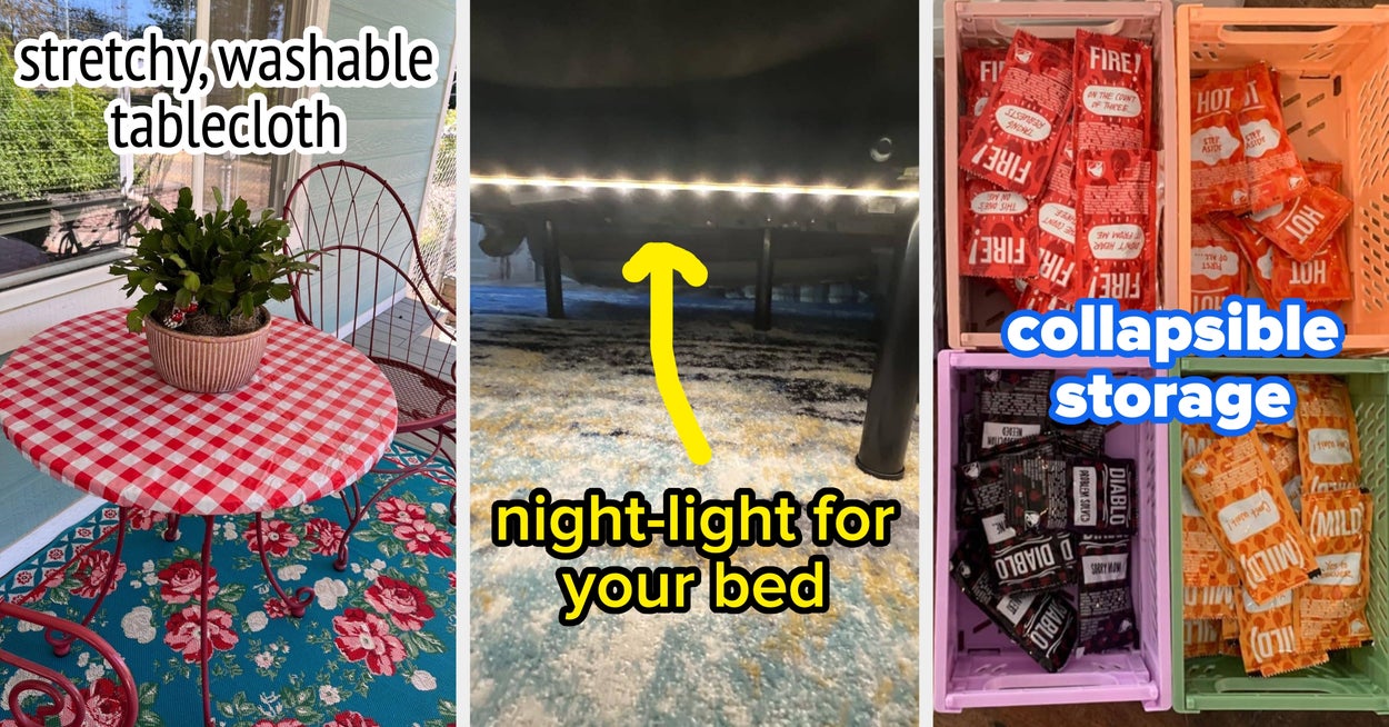 We hope you love our recommendations! While every product is independently chosen by our editors, BuzzFeed and our publishing partners may collect a share of sales or other compensation from the links on this page. You can read more about how our affiliate partnerships work in our Editorial Standards & Ethics Guide. As much as you’re itching to try some peel-and-stick wallpaper, you’re quite attached to your security deposit. Any place where you rest your head deserves a little dash of your personality, even if you're just in for a year's lease. It *is* possible to make a place feel like your own by decorating in a landlord-friendly way, and I've gathered lots of those ideas from years of personal experience. From a colorful bulb that'll add some whimsy to a room you can't paint, to a mini art gallery for your fridge, you're about to love your home even more! Promising review: "Where do I start? I absolutely LOVE this product. I wanted to replace our bathroom mirror, but due to the size, it would have cost a lot! I came across this on Amazon and decided to give it a try. The application process was super easy and applied without bubbles as long as you go slow and rub it down as you go. I kid you not. It looks like wood and feels like it, too! You can feel and see the 'wood grain.' It’s absolutely stunning and looks like I bought a whole new mirror." —Taylor Get it from Amazon for $6.59+ (available in two sizes). The top layer is made of absorbent PU leather, so you can simply rinse or wipe it clean! It also has an anti-skid rubber backing to prevent sliding. Promising reviews: "I like that I can wipe this mat with a wet cloth. It’s water resistant, durable, and pretty!" —Miss Dee "I was a little concerned about how things would dry on this mat since it isn't fabric, but everything seems to dry really well – and it is just so pretty a thing to have on my counter! Can't beat the price either." —Nana M. Get it from Amazon for $15.99+ (available in three sizes and six colors/styles). Promising review: "These are so cute and very easy to set up. I have my hairclips and scrunchies in them. I love that they are stackable, so they don't take up too much space. They're about the same size as my hand, so they're relatively small. They're good for storing little things like mini hand lotions and hand sanitizer. If you're thinking about getting them, I highly recommend them!" —Dog_Mom Get a pack of six from Amazon for $9.99 (also available in two other sizes and six colors). Promising review: "My sister is a librarian, and I just thought this would be such a cute flower vase for her house. She loved it." —dawn gadless Get it from Amazon for $12.99 (available in four designs). Sorfey Store is a small biz specializing in furniture and accessories. Promising review: "Very pleased with the quality. The fabric is not flimsy like some vinyl tablecloths. The 30-inch fit my 28-inch bistro table." —Bev T Get it from Amazon for $16.99+ (available in six sizes and seven colors). Psst, my colleague Jenae Sitzes is a gamer and loooooves Pokémon Pokopia. Promising review: "These were a gift for my son who loves video games. They add a nice style to his room, and they are very comfortable. They fit the throw pillows perfectly." —Jennifer Duarte Promising review: "Very good quality liner. I love the daisy print and it is a good thickness. Super easy to cut (I used a box cutter). Definitely recommend!" —Karen Get it from Amazon for $6.99+ (available in 10 sizes and 18 patterns). Promising review: "I was so in awe of how beautiful this is!! My toddler loves it, said it was 'amazing!' lol. It’s much heavier and it's better quality than what I expected." —Nikki Promising review: "Cute picture frames. Small and useful for placing on the fridge or elsewhere. Magnetic, easy to assemble." —Wilson Promising review: "This thing is so soft and so pretty, and the color is so rich! I thought I'd be throwing it off the bed like, well, a throw pillow (I just got why they're called that), but I end up essentially snuggling it like a stuffed animal because it's so comfortable. It adds the right amount of '60s/'70s campy hotel kitsch to my room." —Ashley Diamond Get it from Amazon for $16.99+ (available in two sizes and nine colors). Promising review: "These pleated short curtains are the perfect touch for my kitchen! They add just the right amount of charm and elegance while letting in natural light. The pleats give them a polished, tailored look, and the quality of the fabric is fantastic — lightweight yet durable." —Liza Get two panels from Amazon for $13.99+ (available in eight sizes and 10 colors). Promising review: "I love these bulbs. They make any room all warm and cozy. Also a fantastic night-light for the little ones. :) Get you some!" —Amazon Customer Get them from Amazon for $18.76+ (available in three styles). Promising review: "I love these. I use them in my pottery studio to have something cute decorating the space (I have three), but then I can move them around to work as task lighting over the pieces I am working on. They are so great!" —Leysia Promising review: "I've had the ugly plate-style candle warmers before and they don't even come close to this one. This one gives off the nicest glow, and the different styles are so pretty. I love that it has a timer feature and I feel much safer having this instead of lit candles. This would make a great gift for anyone. I will definitely be buying more for other rooms." —Catherine Vorce Get it from Amazon for $23.97+ (available in 10 styles; check out a whimsical flower option!) Promising review: "I wanted to add some interesting pots to my indoor collection to break up all the terracotta. This pot is really cute with the polka-dot cats and has a subtle crackle glaze effect on the pottery. Drainage hole is a good size. It would have been nice to get a matching saucer, but I’ve got plenty that don’t match. Price was fine for 
