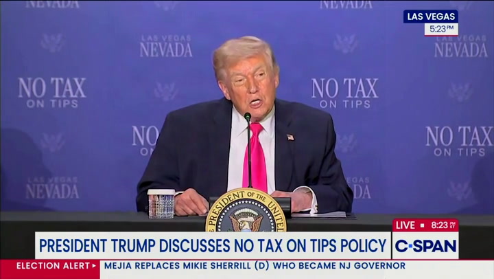 President Donald Trump appeared confounded by a common phrase during a public appearance in Nevada on Thursday. The president was in Las Vegas to promote his “no tax on tips” policy, and was joined by Secretary of the Treasury Scott Bessent and Nevada Lieutenant Governor Stavros Anthony for an event at the AC Hotel. Delivering a speech on the benefits of his policy, which allows employees who receive tips to deduct up to $25,000 in tips when filing their taxes, the 79-year-old came across a term he claimed to have never heard before.