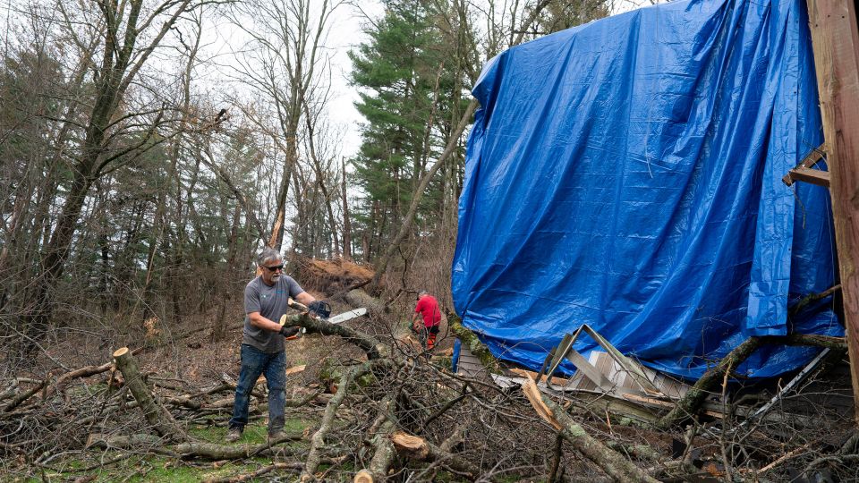 A final round of widespread dangerous severe storms headed for the central US Friday could cause more destruction and bring more rain to parts of the Great Lakes already dealing with historic flooding. These regions had a brief pause in widespread storms on Thursday after more than three dozen reports of tornadoes and over 300 reports of large hail up to the size of softballs earlier this week. Lightning is also believed to have struck and killed a man in Waukesha, Wisconsin, on Wednesday night, according to the city’s police department. And heavy rain from the storms has forced water rescues and caused rivers to surge past major and record flood levels in Michigan and Wisconsin, testing flood infrastructure and forcing evacuations. Multiple rounds of rain this week have worsened ongoing river flooding in parts Michigan and Wisconsin, where the ground is water-logged from one of the wettest starts to spring on record and melted snowpack. Rivers in the two states have already hit or are forecast to reach major or record flood levels in over 20 locations. That includes the Muskegon River, which rose above record levels Thursday morning. The swollen river forced mandatory evacuations on Thursday morning for “anyone remaining in the floodplain below Croton Dam” in Newaygo County, the county’s emergency services said. Water rescues also took place near Evart, Michigan, as the river rose and started to impact homes, according to the Evart Fire Department. This level of flooding is “unprecedented” in Michigan state Rep. Cam Cavitt’s district, which includes several counties in northern Michigan, he told CNN. “We’re a hardy people,” he said. “This is a rural area, and we take care of our own. But this … this is more than we can handle.” Dams across Cheboygan County are “at capacity,” county Emergency Management Director Lt. Jeremy Runstrom told CNN on Wednesday. This includes the Alverno Dam, which crews are working to fortify. The integrity of the Alverno Dam is particularly significant, because failure would send a torrent of water downstream to the Cheboygan Lock and Dam Complex, Cavitt said. “If that dam would go, it would take the Cheboygan dam with it,” he said Wednesday. Residents near and north of the Cheboygan complex were told to be ready to evacuate on Thursday morning as water levels continued to rise there, reaching 4.92 inches below the top of the dam by the afternoon. An evacuation order would be triggered if water reaches 1 inch below the top of the dam, a news release from the Michigan Department of Natural Resources states. Crews and engineers have worked around the clock to fortify the structure, deploying pumps and sandbags, removing gates to allow water to flow more freely, and working to get a turbine running that would allow even more water to escape. “We expect that we might see some topping (of the dam),” but with all the fortifications in place, “we don’t expect it will exceed that,” Michelle Crook, Senior Project Engineer at the Michigan Department of Natural Resources, said in a Tuesday briefing. Officials lifted an earlier evacuation order in the county for residents in the Little Black River watershed Wednesday afternoon. The order was issued due to the breach of two earthen dams that flooded some homes and affected hundreds of people, Cavitt told CNN. In Antrim County, Michigan, officials have also advised all residents and businesses downstream of the Bellaire Dam to prepare for possible evacuation. Water levels were stable on Thursday morning, but had risen to within 12 inches of the top of the dam on Tuesday afternoon. An evacuation order would be triggered at an inch below the top, according to a county news release. A flash flood watch is in effect for the potential failure of the Hesperia Dam in west-central Michigan. Local officials have reported water is rising rapidly in the White River and may soon overtop the dam, according to the National Weather Service. The Hesperia Area Fire Department has advised residents living downstream of the dam to prepare for the possibility of evacuation. Residents in low-lying areas of Waupaca County, Wisconsin, have been told to evacuate as floodwaters rise, according to the Waupaca County Sheriff’s Office. Around 1,800 people in New London are impacted by the notice, county Emergency Management Director Zachary Van Asten said at a Thursday morning news conference, as well as residents of Weyauwega, Clintonville, Fremont and Manawa. County dams are “stressed to the max,” but holding, Van Asten added. Earlier this week, water started to move around the Big Falls Dam and topped the Marion Dam, but levels at both have since dropped, he said. Natural gas is being shut off for around 2,200 customers in flooded areas of New London and the village of Shiocton in Outagamie County due to concerns flooding could damage infrastructure and cause uncontrolled gas flows, We Energies spokesperson Matt Cullen said at the news conference. Shiocton residents had been told to evacuate by Wednesday afternoon due to flooding. “Many people have chosen to stay in their homes,” a Thursday update from the village said. “With that being said, the streets are now flooded and we ask residents to stay home, avoid driving on flooded streets.” The storms also caused flash flooding in Milwaukee Wednesday night, stranding vehicles on flooded roadways. Some highways in the city were closed as drivers became stranded in high water, the Milwaukee County Sheriff’s Office said. The city’s fire department said it responded to around 50 calls for rescue from rapidly rising water on Tuesday night. More motorists were stuck in high water Thursday morning and tow truck drivers had joined in the rescue efforts, according to CNN affiliates CBS 58 and ABC 12. Residents should also expect delays and detours to bus service, the Milwaukee County Transit System announced. Milwaukee on Thursday morning joined Gr