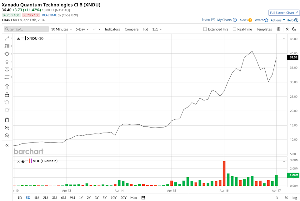 The above button links to Coinbase. Yahoo Finance is not a broker-dealer or investment adviser and does not offer securities or cryptocurrencies for sale or facilitate trading. Coinbase pays us for certain activity generated through this link. Prices displayed are informational. Just last year, Nvidia (NVDA) CEO Jensen Huang had this to say about quantum computing: “Someday we'll have very useful quantum computers. We're probably five or six orders of magnitudes away, 15 years for useful quantum computers and that would be on the early side.” Fast forward to April 2026, Nvidia claims to have released the first-ever group of open-source AI models for quantum computing. While Huang's muted assertions about quantum computing at the start of 2025 rattled the shares of the leading quantum computing stocks, the latest development, unsurprisingly, had the opposite effect. Shares of quantum computing companies ended markedly higher. However, one stood out. Quite starkly too. Profit Surged at TSMC. Why Is the Stock Still Falling After Earnings? Microsoft Stock Warning: Why Piper Sandler Analysts Just Slashed Their MSFT Price Target by More Than 15% Infleqtion Jumps on New Nvidia Quantum Computing Models. Should You Buy INFQ Stock for Q2? Tired of missing midday reversals? The FREE Barchart Brief newsletter keeps you in the know. Sign up now! Founded in 2016, Xanadu Quantum (XNDU) is a full-stack quantum computing company. Its core technology includes the use of photonic quantum computing, which uses light instead of trapped ions and superconductors. The key advantage of this technology is that it operates at room temperature, thus saving enormous cooling costs and consequently making it more scalable. Valued at a market cap of about $7.5 billion, shares of Xanadu exploded on the Nvidia AI model news by rallying by almost 30% in yesterday's trading session. Moreover, the shares have been having a dream run this year, already up over 203% on a year-to-date (YTD) basis. XNDU stock is seeing some incredible price action today too, as just in early morning trading, the stock is already up over 11%. Now, with momentum firmly on its side, can Xanadu continue its sensational upward trajectory? Let's find out. Xanadu stands out due to its balanced focus on hardware and software. On the hardware side, the team computes using particles of light rather than traditional electrons. This photon-based architecture is revolutionary because it lets the core computational processes run at room temperature, which avoids the massive cooling headaches faced by most quantum developers. At the same time, their PennyLane software platform has grown incredibly popular across the global industry. Programmers utilize this open-source tool across various competing platforms, making it a foundational piece of the modern quantum landscape. When compared to its peers like D-Wave (QBTS) or Rigetti (RGTI), the competitive advantage of Xanadu is particularly noteworthy through its approach to scalability. Many competitors rely on superconducting circuits or trapped ions, like IonQ (IONQ), which face severe technical bottlenecks when connecting multiple machines. Converting electronic signals into light for networking and back again causes serious data loss. Since Xanadu already computes using light, it can seamlessly network multiple server racks using standard fiber optics. This inherent networking ability, combined with reduced cooling needs, gives the firm a massive structural edge in building the infrastructure of the scale of data centers. However, even with this promising trajectory, the company still needs to carefully navigate some steep technical and financial threats. The most daunting scientific hurdle remains the pure fragility of quantum states, where tiny environmental disturbances can thoroughly ruin complex calculations. Figuring out this error correction puzzle will take years of relentless research. Moreover, the business burns through capital quickly and recently posted a net loss topping $70 million due to heavy development costs. They also face fierce market competition from deeply funded tech giants and established players like IBM (IBM) and Alphabet (GOOGL) (GOOG), making execution excellence a compulsion, not a choice. In terms of raw and real financial numbers, however, Xanadu is still finding its feet. Having been listed just in the first quarter of 2026, the company has only reported its results for 2025. Xanadu's revenues for 2025 were $4.6 million, up 188% from the prior year, as the company revealed that it increased its customer count. Loss per share, however, widened to $14.29 from $9.35 in the year-ago period. Rising R&D and business combination costs were cited as the reasons for this increase in losses. This is less concerning if the business combination costs are kept minimal or even eliminated in the subsequent quarters. Also, for an early-stage company like Xanadu in a field like quantum computing, R&D should not be looked upon as costs but rather as investments. However, a clear path to return on these investments should become clearer over time. Overall, Xanadu ended 2025 with a cash balance of $16.1 million, much higher than its short-term debt levels of about $3 million. Xanadu has opted for a unique path to make its place in the exciting world of quantum computing through its full-stack bet on hardware and software. Within this, it has differentiated itself with its photon-based technology and PennyLane software. With revenues coming in from some leading customers like Lockheed Martin (LMT) and a balance sheet marked by manageable debt levels for now, Xanadu is on the right path. However, complacency will not do any good for the company right now, as competition is fierce. Thus, it must be relentlessly focused on execution while embarking towards profitability eventually. On the date of publication, Pathikrit Bose did not have (either directly or indirectly) positions in any of the se
