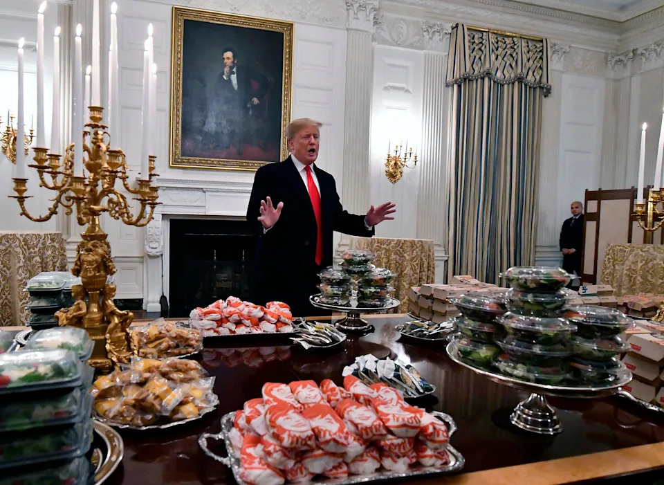 President Donald Trump's behavior and comments have long led political opponents to question his mental health, but now, the accusation that he is unhinged is coming from more than the usual liberal suspects in the past few weeks. Prominent conservative pundits − from former Fox News hosts Megyn Kelly and Tucker Carlson to conspiracy theorist Alex Jones and podcaster Candace Owens − are suggesting the president is unwell. "I really think that his mental capacity needs to be examined," Marjorie Taylor Greene said on an April 15 appearance on CNN International. The former Republican congresswoman from Georgia said she's been "shocked and horrified" at the president's recent rhetoric, such as his warning that "a whole civilization will die" and Iranians will be "living in Hell" if his demands aren't met. Jones, founder of Infowars and a longtime Trump supporter, said during a March 31 episode of his new program, "The Alex Jones Show," that GOP incumbents running for reelection need to "cut the bait" on the president before the 2026 midterm elections. "And he does babble and, you know, sound like the brain’s not doing too hot," he said. Owens, who has spent recent years pushing racist and antisemitic tropes, referred to Trump as a "genocidal lunatic" in an April 7 post on X, echoing Democrats when she called for using the 25th Amendment of the U.S. Constitution to remove him from office. "Our Congress and military need to intervene," she said. "We are beyond madness." The comments have exposed another raw nerve in the ongoing Make America Great Again civil war over Trump's widespread use of military strikes on foreign soil. Some former White House officials from the first Trump administration are echoing the sentiment. Ty Cobb, a former White House lawyer, said the president is "clearly insane" during a March 31 interview with former CNN reporter Jim Acosta. "These screeds that come out nightly.... highlights the level of insanity and depravity," Cobb said. "I think he's gone." Trump lashed out at those MAGA media figures and accused them of trying to get "cheap publicity." "They’re not 'MAGA,' they’re losers, just trying to latch on to MAGA," he said in an April 9 social media post. Most of Trump's allies on Capitol Hill are standing by the president. Others in the MAGA ecosystem online have dismissed concerns about his mental health being raised by their fellow conservatives. During a recent episode of his podcast, former FBI Deputy Director Dan Bongino, who left the administration in January, slammed right-leaning critics as "people pretending to be one of us who grifted" off Trump. He suggested the president's behavior is more strategic than psychotic. "No, it's not 25th Amendment territory, you losers," Bongino said. "It may be psychiatric, you know Baker Act time for you talking about it, but not for the president. I promise, he's in a really good spot." Trump has always fueled his MAGA movement with fiery and exaggerated rhetoric, experts say. Those long-winded, often meandering ‒ and by Trump's admission sometimes "dark" ‒ remarks were on display during the 2024 election, such as when he suggested the United States needed "one really violent day" to deal with property crimes. "One rough hour," Trump said during a Sept. 29, 2024, rally in Erie, Pennsylvania. "And I mean real rough. The word will get out and it will end immediately." That tendency is increasingly visible amidst the actual work of governing. During a Cabinet meeting in March at the White House, for example, the president raised eyebrows for engaging in a five-minute tangent about his love for $5 "Sharpie" permanent markers. Earlier that month, when updating reporters on the war in Iran, he stopped mid-remark to admire the White House curtains. "I picked those drapes in my first term," Trump said. He has also long been known to make demonstrably false claims, from continuing to assert that he won the 2020 presidential election to saying during an April 15 Fox Business interview that no other president has ever ended a war. "Nobody’s ever ended one war," Trump said. "Who’s ended one? Nobody." Multiple historians have noted that U.S. presidents have played significant roles in ending various conflicts and negotiating peace agreements, such as President Theodore Roosevelt winning the Nobel Peace Prize in 1906 for ending a war between Russia and Japan. At one point during the Fox interview, host Maria Bartiromo asked about Republican Sen. Thom Tillis' opposition to selecting Kevin Warsh as the next chair of the Federal Reserve. Trump said the North Carolina lawmaker was no longer in Congress. "You know Thom Tillis is no longer a senator, right," Trump asked. "He quit." Bartiromo reminded the president that Tillis was still in the Senate and had only forgone seeking reelection in 2026. Trump replied: "Well, no, he quit, but he quit." But criticism about his mental state on the political right has more to do with launching an unpopular war in Iran and using melodramatic language to issue threats, such as saying the United States would destroy every bridge and power plant in Iran − which would constitute a possible war crime. President Donald Trump receives a DoorDash delivery of McDonald's from Sharon Simmons before he speaks to the press during an event outside the Oval Office of the White House on April 13, 2026 in Washington, DC. The president spoke about the No Tax on Tips, Pope Leo XIV and the ongoing negotiations with Iran. RFK Jr. appeared on the “Katie Miller Podcast” on Jan. 13, 2026. When asked which member of the administration has the healthiest diet and fitness routine, he mentioned Shawn Duffy and Pete Hegseth. When asked who had the most "unhinged" diet, Kennedy answered, "The president,” citing Trump’s love of McDonald’s, candy, and constant Diet Coke. See Trump's love for fast food starting with tables of it for the the college football playoff champion Clemson Tigers in the State