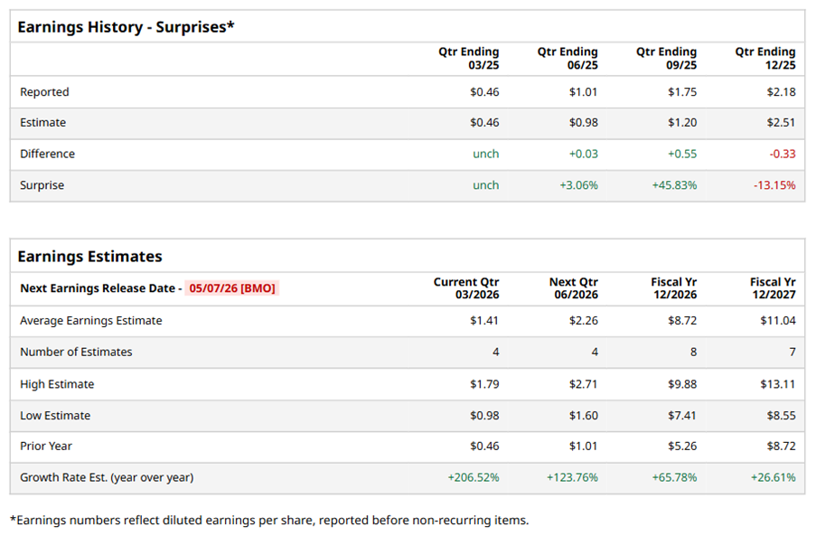 The above button links to Coinbase. Yahoo Finance is not a broker-dealer or investment adviser and does not offer securities or cryptocurrencies for sale or facilitate trading. Coinbase pays us for certain activity generated through this link. Prices displayed are informational. Irving, Texas-based Vistra Corp. (VST) operates as an integrated retail electricity and power generation company. With a market cap of $55.3 billion, the companyis also involved in wholesale energy purchases and sales, commodity risk management, fuel production, and fuel logistics management activities. The leading integrated retail electricity and power generation company is expected to announce its fiscal first-quarter earnings for 2026 before the market opens on Thursday, May 7. Ahead of the event, analysts expect VST to report a profit of $1.41 per share on a diluted basis, up 206.5% from $0.46 per share in the year-ago quarter. The company beat or matched the consensus estimates in three of the last four quarters while missing the forecast on another occasion. Is Irrational Market Behavior Predictable? Crude Oil Prices Jump as Middle East Tensions Escalate Markets move fast. Keep up by reading our FREE midday Barchart Brief newsletter for exclusive charts, analysis, and headlines. For the full year, analysts expect VST to report EPS of $8.72, up 65.8% from $5.26 in fiscal 2025. Its EPS is expected to rise 26.6% year over year to $11.04 in fiscal 2027. VST stock has outperformed the S&P 500 Index’s ($SPX) 34.9% gains over the past 52 weeks, with shares up 41.6% during this period. Similarly, it outperformed the State Street Utilities Select Sector SPDR ETF’s (XLU) 18.7% gains over the same time frame. On Feb. 26, VST shares closed up marginally after reporting its Q4 results. Its net income came in at $233 million, down 52.4% year over year. The company’s adjusted EBITDA declined 12.2% from the year-ago quarter to $1.7 billion. Analysts’ consensus opinion on VST stock is bullish, with a “Strong Buy” rating overall. Out of 17 analysts covering the stock, 16 advise a “Strong Buy” rating, and one gives a “Hold.” VST’s average analyst price target is $239.75, indicating an ambitious potential upside of 46.7% from the current levels. On the date of publication, Neha Panjwani did not have (either directly or indirectly) positions in any of the securities mentioned in this article. All information and data in this article is solely for informational purposes. This article was originally published on Barchart.com