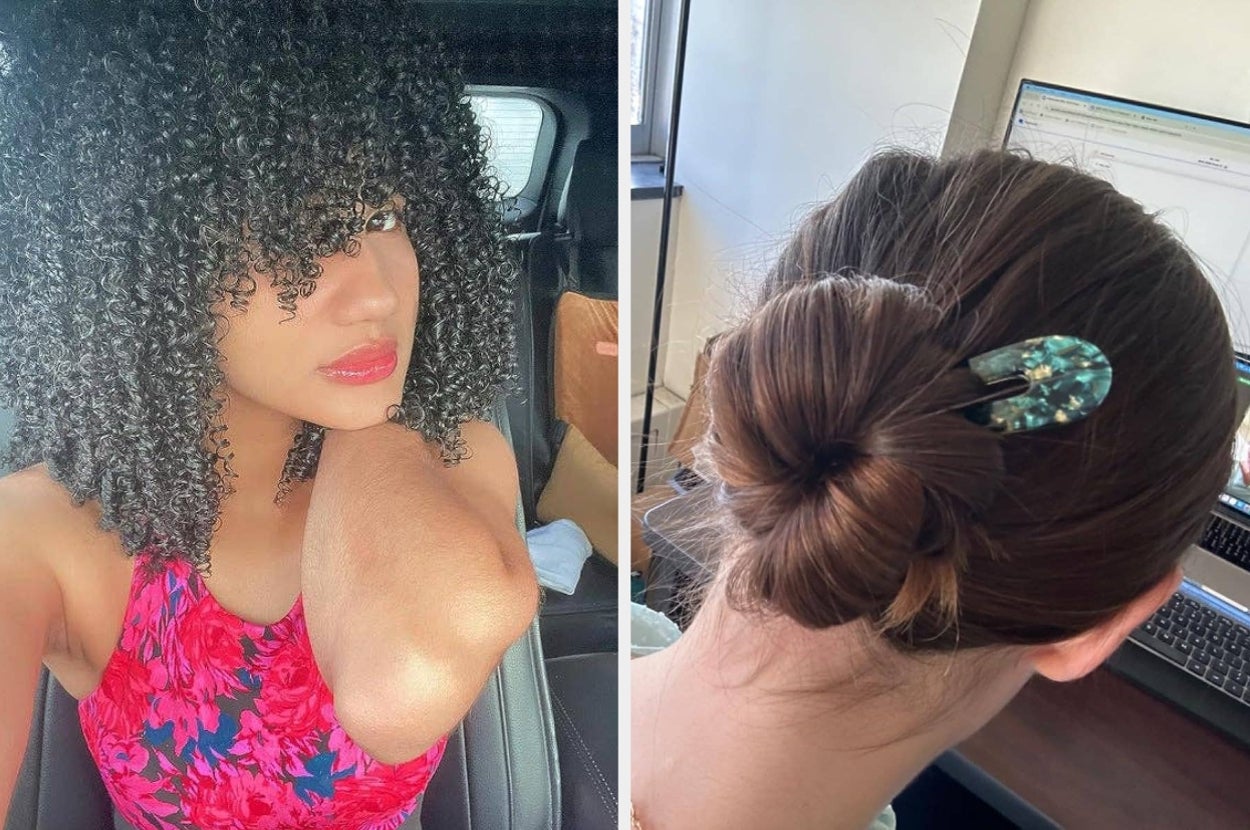 We hope you love our recommendations! While every product is independently chosen by our editors, BuzzFeed and our publishing partners may collect a share of sales or other compensation from the links on this page. You can read more about how our affiliate partnerships work in our Editorial Standards & Ethics Guide. Easy solutions for frizz, dryness, and split ends, plus styling hacks for cute updos and curls — we’ve got it all here. Figuring out the best way to handle your hair can be frustrating, especially since everyone's working with a different length, density, and texture. Some products are designed to work best for specific hair types, like fine hair or coily strands, while others are a nonnegotiable, no matter what your mane looks like — like prepping your hair before you pick up that hot tool (seriously, put it down and grab that heat protectant!). From the moment you step out of the shower, how you treat your hair affects how it will end up looking while styled, and these easy-to-use products will help you through the entire process. Promising review: "Love these because they actually dry my hair pretty fast and are very soft on my hair. They stay in place, and I can go about my business without having to worry about my towel falling. Very comfy too." —M. Antillon Get it from Amazon for $6.16+ (available in two colors). It's recommended for all hair types and textures where dryness and frizz are an issue! Promising review: "It’s amazing. I have spiral curls. This stuff takes amazingly. I put this on before I dry my hair with a diffuser, and my curls were drop dead gorgeous and the frizzies were next to nothing." —CharlieFB "My hair is fine, soft natural platinum silver. If I use heat on it to style it I use this product now. Before this product, I didn’t realize how easily silver hair would yellow and burn. This product is wonderful because it protects from high heat...up to 450. It smells great too and it is not sticky or tacky. Keeps your hair soft and smooth too. I highly recommend it!" —Tex Get it from Amazon for $12+ (available in two sizes). Promising reviews: "If you have long and/or thick hair, this is absolutely necessary! Just a few sprays over your head and your hair will dry so much faster. If you're thinking, 'it's so expensive for such a small amount,' you only need a small amount, and it lasts a really long time. I have long AND thick hair; I use it every time I wash my hair, and a bottle lasts me about 6 months." —Wanda H. "This product was AMAZING. It made my 4c kinky-curly hair so silky soft and cut my blow-drying time down significantly. It also has a very pleasant smell, and I couldn't stop myself from using it. I'd recommend buying the bigger size as the small one will not last long, and the amount is that good for the price you pay." —MB Get it from Amazon for $16+ (available in three sizes and two-packs). It's designed for all hair types and reviewers across the board mostly report a good experience with it, from users with fine, thin hair to coarse, curly strands. That said, JVN says it's especially good for people with frizzy, wavy, curly, or coily hair. As someone who's never had the patience to blow dry their hair, I picked this air dry cream up after seeing its heat-free results in this TikTok and reading all the positive reviews (plus, ya know, I feel like I'd trust Jonathan Van Ness with my hair). For context, I have extremely thin, fine hair that is mostly pretty straight. This air-dry cream has a really nice, silky consistency and smells like the salon (IDK how else to describe it, but it's a pleasant smell), and it doesn't make my hair feel greasy or crunchy after I've worked this through it. It definitely helps cut down on frizz and makes my hair feel really silky and healthy, even into the next day. If you don't have any natural wave to your hair, this isn't going to create that (at least not in my experience), so it makes sense that it's recommended for the hair types mentioned above. But even if you have straight, fine hair, if you don't already have a good leave-in conditioner, I'd still recommend this cream for its smoothing, hydrating benefits. A little goes a long way, and the bottle has a lot of product in it! Promising review: "I'm 40 years old with wavy/curly hair. I've air-dried my hair for most of my life and just accepted I would have frizz. Even with using anti-frizz products. Not with JVN's air dry cream. No frizz!! My hair was silky smooth all day long. Not greasy or heavy from the cream. I will definitely buy again! And would highly recommend. Great value for money." —Kelly D. Get it from Amazon for $26+ (available in two sizes). Check out a TikTok of the spray in action. This is designed to work on all hair types, with reviewers with 2a–4c curls swearing by it! Promising review: "Amazing!! I had NO idea that my frizzy-haired little girl had beautiful curls. I went down an Instagram rabbit hole and saw a similar girl show how her frizz was curls. I ordered this!! My mind has been blown!! This has changed our lives. It smells so good! It is easy to use and air-dry. Before my daughter woke up with terrible bed head that looked like this! Now it is gorgeous, soft curls. We will definitely buy again and tell everyone about this product!!" —Amazon Customer Get an 8-ounce spray bottle from Amazon for $9.99. It has two heat settings (low and high), plus a cool air option, and it's designed to work on all hair textures — reviewers with 2b–4c hair mentioned it working for them. Promising review: "Absolutely the BEST dryer I have ever owned. I was a little skeptical at first because I've used other blow dryer brushes and I wasn't wow'd (including the much more expensive Dyson). I have very thick, really curly hair and getting a smooth blowout easily and without an extensive drying time is something I thought impossible until I purchased this brush. Not only do I get a smooth blowout in about 15 minutes (ver