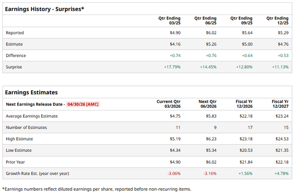 The above button links to Coinbase. Yahoo Finance is not a broker-dealer or investment adviser and does not offer securities or cryptocurrencies for sale or facilitate trading. Coinbase pays us for certain activity generated through this link. Prices displayed are informational. With a market cap of $191.8 billion, Amgen Inc. (AMGN) is a global biotechnology company that discovers, develops, manufactures, and delivers human therapeutics for a wide range of diseases, including cancer, cardiovascular conditions, and autoimmune disorders. It markets leading medicines such as Enbrel, Prolia, and Repatha while collaborating with partners like AstraZeneca plc and UCB to expand its pipeline and global reach. The Thousand Oaks, California-based company is expected to release its fiscal Q1 2026 results after the market closes on Thursday, Apr. 30. Ahead of this event, analysts expect AMGN to report an adjusted EPS of $4.75, down 3.1% from $4.90 in the prior year's quarter. However, it has surpassed Wall Street's bottom-line estimates in the past four quarters. Tesla Earnings, Hormuz and Other Key Things to Watch this Week Netflix Generates Massive FCF and FCF Margins - NFLX Price Targets Are Higher Profit Jumped 58% at Taiwan Semi. Does That Make TSM Stock a Buy Here? Stop Missing Market Moves: Get the FREE Barchart Brief – your midday dose of stock movers, trending sectors, and actionable trade ideas, delivered right to your inbox. Sign Up Now! For fiscal 2026, analysts forecast the world's largest biotech drugmaker to post adjusted EPS of $22.18, a 1.6% rise from $21.84 in fiscal 2025. Moreover, adjusted EPS is projected to grow 4.8% year-over-year to $23.24 in fiscal 2027. AMGN stock has increased 27.1% over the past 52 weeks, lagging behind the S&P 500 Index's ($SPX) 34.6% gain. Nevertheless, the stock has outperformed the State Street Health Care Select Sector SPDR ETF's (XLV) 9.5% rise over the same period. Shares of Amgen jumped 8.2% following its Q4 2025 results on Feb. 3, reporting stronger-than-expected $9.9 billion in revenue and adjusted EPS of $5.29. Investor confidence was further boosted by strong forward guidance, with 2026 adjusted EPS projected at $21.60 - $23 and full-year revenue of $37 billion - $38.4 billion, slightly ahead of Wall Street expectations. Additionally, optimism around Amgen’s obesity pipeline, particularly MariTide, in six Phase 3 trials and positioned as a less-frequent alternative to weekly GLP-1 drugs, reinforced the stock’s rally. Analysts' consensus rating on AMGN stock is cautiously optimistic, with a "Moderate Buy" rating overall. Out of 35 analysts covering the stock, opinions include 13 "Strong Buys,” two "Moderate Buys," 17 "Holds,” one "Moderate Sell," and two "Strong Sells.” The average analyst price target for AMGN is $357.57, suggesting a potential upside of 1.6% from current levels. On the date of publication, Sohini Mondal did not have (either directly or indirectly) positions in any of the securities mentioned in this article. All information and data in this article is solely for informational purposes. This article was originally published on Barchart.com