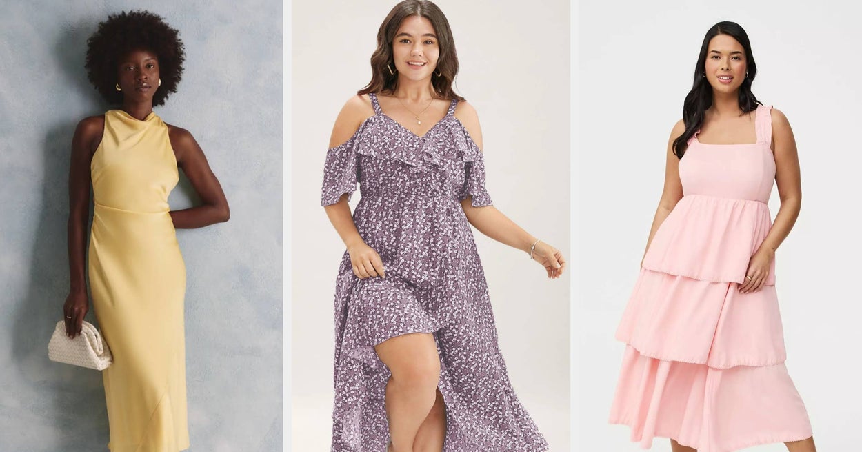 We hope you love our recommendations! While every product is independently chosen by our editors, BuzzFeed and our publishing partners may collect a share of sales or other compensation from the links on this page. You can read more about how our affiliate partnerships work in our Editorial Standards & Ethics Guide. You’ll be the second-best-dressed (after the bride, of course). Unless otherwise specified, all sizes in this post are listed in women’s. Promising review: "Perfect dress for a formal wedding. Fit perfectly. The fabric felt really nice, and I loved how it moved. Felt comfortable all night, honestly loved everything about it." —Amber S. Get it from Lulus for $99 (available in sizes XS–XL and in 11 colors). Promising review: "Truly obsessed with this dress. So comfy, wore for five hours straight while running around a venue and was comfortable the whole time. Thinking I should get another color." —Joy Danielle Roach Get it from Amazon for $47.99+ (available in sizes XS–XXL and 37 colors). Get it from Lane Bryant for $56.97 (originally $94.95, available in sizes 12–28). Promising review: "This dress is beautiful!! I wore it for a beach wedding; it feels flowy and feminine. It seems to wear well on many different body types, so I purchased it. Thankfully, I did — would love another occasion to wear it again!" —summer evans steed Get it from Amazon for $36.99+ (available in sizes S–XL and 32 colors). Get it from Pretty Little Thing for $27.50 (originally $55, available in sizes 0–12). Promising review: "This dress is spectacular. The sunflowers pop, the comfort is phenomenal and I received many compliments when wearing this dress. Great for work or for a summer party or event. It was perfect to pack for my work travel and was not wrinkled at all. LOVE IT." —Colette Vallee Get it from Amazon for $24.99+ (available in sizes 16–24 and 13 colors/patterns). Get it from Gap for $118 (available in sizes XXS–XXL and in three colors). Promising review: "I am so very happy with this dress. I wore it to a friend's wedding and got so many compliments! It fits as expected per the size chart, but since the back is ruched elastic with a corset-type tie, you can adjust this to your liking. I had to cinch it pretty tight to keep it from sliding down my back (maybe some fabric tape would help). That said, I would NOT size down, as then it wouldn't fit in the waist. This dress offers great coverage in the back despite being a halter (I am wary of halter tops as they seem to have absurdly low backs, but not this one). I did wear this dress with a petticoat, but it can be worn without. It is well-made and a good medium-thick material, but still breathable for warmer weather." —Noxxie Get it from Amazon for $29.99+ (available in sizes S–3XL and several colors/patterns). Get it from Urban Outfitters for $59 (available in sizes XXS–XL and in five colors). Promising reviews: "I'm horrible about writing reviews, but I HAD to for this dress because it’s truly one of the most gorgeous dresses I own. I wore it for date night, but actually bought it for weddings. I’m a wedding photographer, and for my black tie/black dress-y weddings, this is perfect. It doesn’t fall, it’s comfy, it fits perfectly, and it’s modest (to me, lol, no cleavage spillage and not short). I love it so much, I ordered it in olive green as well, just to have!! It looks and FEELS a lot more expensive than it is. It’s an absolute gem and a steal. I’m already getting questions and link requests, haha. I got so many compliments when I wore out for date night. Gahhhh, if you’re on the fence, take this as your sign!!!!" —Betty Aceituno "I wore this to my friend's rehearsal dinner and got so many compliments! It was a last-minute buy and worked out perfectly! The top has a material to keep it from falling down or constantly having to fuss with it. Color and design are super cute, too!" —Jenna Beck Get it from Amazon for $40.99+ (available in sizes XS–XL and 31 colors). Promising review: "I wore the orange one to my cousin's fall wedding, and I didn't want to take it off. It is SO COMFORTABLE! The material is nice, and I am considering buying another color. It can get a bit wrinkly, but I just threw it in the dryer for a bit and shook it out, and it touched up nicely. Buy it! You'll feel like a character from a Jane Austen novel." —Amazon Customer Get it from Amazon for $35.99+ (available in sizes S–XL and in 32 colors/patterns). Get it from Abercrombie & Fitch for $120 (available in sizes XXS–XXL and in seven colors). Promising review: "This dress is beautiful! I am wearing it to a mountain wedding next week, and I am so excited to wear it." —D Get it from Bloomchic for $29.61 (originally $32.90, available in sizes 10–30 and in six colors). Promising review: "Bought and wore this for a wedding. It was perfect. Nice high neck and love the cross straps in the back. Shows off your back beautifully. Perfect mid-length, wore it with small heels." —Kerry Get it from Quince for $149.90 (available in sizes XS–XL and in 10 colors). Promising review: "This asymmetrical plus size dress is absolutely gorgeous! The asymmetrical design adds a stylish, modern touch that really stands out. The fabric is comfortable, breathable, and drapes beautifully without clinging in the wrong areas. I felt confident and comfortable wearing it, whether dressed up or kept casual. It hugs in all the right places and gives such an elegant look. Definitely a must-have for plus-size wardrobes. Highly recommend! 💕" —J Moore Get it from Amazon for $39.99 (available in sizes L–4XL and in 18 colors and patterns). Promising review: "I always get so many compliments on this dress. It can pass off as a wedding guest dress but then can also be worn for a dinner out! It is comfortable, and the pockets are everything. The length works for heels or sandals. Breathable material! Recommend!" —ColiesAmazonCloset Ge