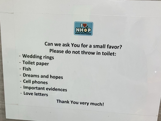 “Hey if a public bathroom door is locked don’t forget to try to repeatedly open it and give the person using it paralyzing anxiety” I'm a Senior Staff Writer who writes a wide range of topics, spanning from people's real-life drama to pop culture to funny things I find on the internet. Tablet says: "I'm not sure where to find "Deez nuts" Note says: "Daylin is ready for money because she lost a tooth." Sign says: "Please do not throw in toilet: