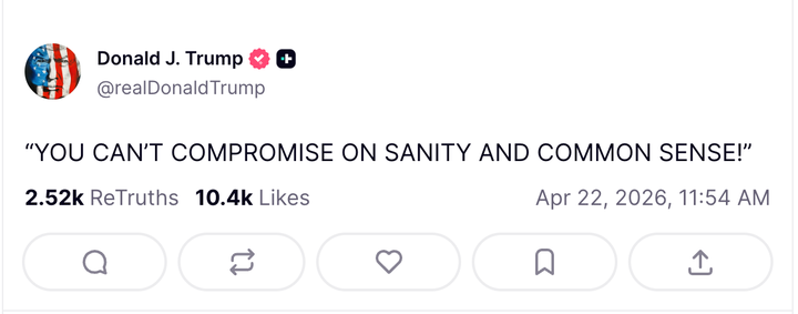 The White House’s social media account was mocked on Wednesday after it reposted a puzzling Truth Social comment by Donald Trump. The message was brief for the president ― just eight words ― but was in his trademark all-caps and lacked any apparent context. “YOU CAN’T COMPROMISE ON SANITY AND COMMON SENSE!” he wrote. All-caps messages like the one Trump posted often come across as rude, like the poster is shouting. Still, the White House social media team faithfully reprinted the capital lettering when it quoted Trump’s message on X, following up with a fawning “So true, Mr. President!” “YOU CAN’T COMPROMISE ON SANITY AND COMMON SENSE!”So true, Mr. President! pic.twitter.com/ui5yZvGjEu But amid ongoing speculation about Trump’s cognitive and physical health, lots of social media users had a different reaction to the post: Mockery. Brutal mockery. In fact, one woman couldn’t believe the White House let such an obvious target for sarcastic reactions fall through the cracks. Wait, what? Who cleared that with a straight face? 😂 https://t.co/I5sNUjJczb Others just laid into the White House. Then what the fuck are you still doing here? https://t.co/xZupAX2JCd The USA sure as fuck did https://t.co/8slHcVu3EO sAniTy & cOmMoN sEnSe. From this administration? Piggy, please 🤡That’s enough twitter for today, y’all. 🥴 https://t.co/LYlX08jaea pic.twitter.com/W31RRyhRK6 🤣 if only it all were not so terrifying. https://t.co/9aXmkWNXnY Former HuffPost journalist Ahmed Shihab-Eldin has been detained for days in Kuwait. He must be freed immediately. Learn more here. Credit: Grace Rivera By entering your email and clicking Sign Up, you're agreeing to let us send you customized marketing messages about us and our advertising partners. You are also agreeing to our Terms of Service and Privacy Policy.