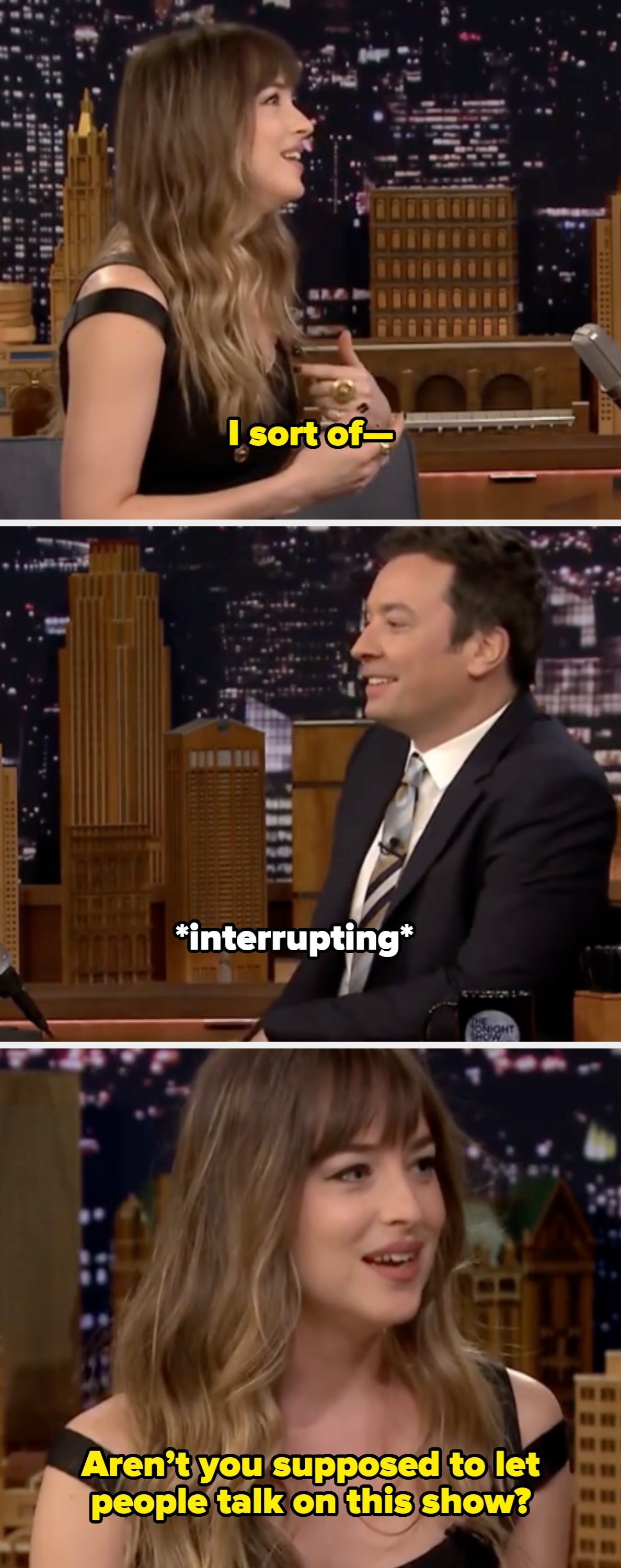 Ellen: How was the party? I wasn’t invited. Dakota: Actually, no, that’s not the truth Ellen. You were invited. Last time I was on the show, last year, you gave me a bunch of shit about not inviting you, but I didn’t know you wanted to be invited. Ellen: Well who doesn’t want to be invited to a party? Dakota: Well I didn’t even know you liked me. Ellen: Of course I like you. You knew I liked you… Dakota: But I did invite you and you didn’t come. Ellen: This time you invited me? Are you sure? Ellen: How do you know? I don’t think so. Dakota: Ask everybody. Ask Jonathan, your producer… Dakota: Aren’t you supposed to let people talk on this show? Jimmy: If I had your email or your phone number I would have called you a gazillion times... Rami: You have my email and phone number. Jimmy: That’s true, but I decided to not call you. Martin: This is the greatest show on television because there is no host in late night that pretends to care the way you do. Martin: I mean, no on captures phoniness the way you do. It’s a gift... Martin, later: I think it's so brave of you, five years in, to decide suddenly to abandon the comedy format. It's shaking her up. Steve: Actually, Marty and I learned from your show. We were backstage watching the monologue and we realized, wow, he must put the laughs in later. Abby: He's a smart guy, and he's a perfect Fox News host. Sunny: Is he a perfect Secretary of Defense? Abby: For one, I would say the memes, the cartoons and the moving memes, have got to stop. It’s really — there are people that are dying. That are losing their lives. Sunny: Do you think he's qualified to be the Secretary of Defense? Abby: I don’t hope for the demise of this country or the people who are in charge right now, so I pray for the best. I am very concerned because the way they are playing this game — Sunny: But do you think he's qualified to be the Secretary of Defense? Abby: — the way they are playing this game right now is like checkers. When the rest of the world is playing chess… Sunny: It sounds like you don't think he's qualified to be the Secretary of Defense. Abby: You know what, I’m very concerned… Sunny: So are you saying that Pete Hegseth is not qualified? Sunny: Pete Hegseth, respectfully who is unqualified for his job. Abby: I'm not here defending – by the way, I don't think Pete is qualified for the job. Savannah: What's so hard for me to witness is people stating that the president is a racist because I’ve seen them firsthand — Savannah: — one of my best friend's lives, a Black woman who has been with him for 18 years. Sunny: So he has a Black friend? He's a racist. Whoopi: Here’s the problem, Savannah, and why we have a different take on it, many of us have a different take on it. Because when you target DEI programs with executive office — with executive orders — your first week in office, arguing that the policies undermine national unity, you know, when you shared racist posts about the Obamas, when you pursued the death penalty for the Exonerated Five — after you knew they had been exonerated — these are the reasons his behavior is so hard and I don’t know whether you know about this, but in the ‘70s he was accused of discriminating against Black tenants because he wouldn’t rent to them. Whoopi: No, that was a proven fact. They took him to court. Kelly: If you kick every Latino out of this country, then who is going to be cleaning your toilet, Donald Trump? Rosie: Oh, that’s not…Latinos are not the only people doing that. Kelly: No, I didn’t mean it like that, come on. I would never mean it like that. Jimmy: The last time you were here, I don’t know if you remember, it was right after you’d opened your big studio in Atlanta. Tyler: Yeah, that you didn’t come to, the big party I had… I remember, I’m still scarred from it. You said you would send me a gift and I still don’t have the gift… Jimmy: I apologize for that, I don’t know what I was doing… oh, COVID, I think COVID was happening. Jimmy: I figured it must have been intended for Jimmy Fallon or something… why would I be invited to your party? Tyler: Well, it said Jimmy Kimmel and I did a special video to you, saying please come, so I don’t know how you could have gotten that mistaken. Tyler: And now you’re remembering why you haven’t invited me back since then. David: How many times have you been in rehab? David: How will this time be different? What are they rehabbing, first of all? What is on their list… Lindsay: We didn’t discuss this in the pre-interview, just saying… David: Is it alcohol? Do you drink too much? Lindsay: We’ve discussed this in the past… Lindsay: We’re here for a movie…let’s stay on the positive. Come on now… Cher, later: I thought that I would never want to do this show with you. David: Now, why? Let’s explore this a little. Why? Because you thought I was a — David: …I knew you probably felt that way. Cher: Because I told the guy on your show. Madonna: Incidentally, you are a sick fuck. I don’t know why I get so much shit. David later, asking a question: ...Is that an untrue rumor? Madonna: Isn’t that an oxymoron, an untrue rumor? Madonna: "Untrue rumor." That’s like "funny David Letterman." Madonna, later: Money’s made you soft… you just kiss up to everybody on your show now. Madonna, later: You do irritate me sometimes… you are always fucking with me on the show. David: ...There's something wrong with her. She can't be stopped. Madonna: There's definitely something wrong with me. I'm sitting here. Katie: Your private parts are different now aren’t they? Carmen: I don’t want to talk about it because it’s really personal. I’d rather talk about my modeling stuff…there’s more to trans people [than their genitals]. She went on: "There’s a young woman named Islan Nettles who on August 17 was just walking down the street with some friends, minding her ow