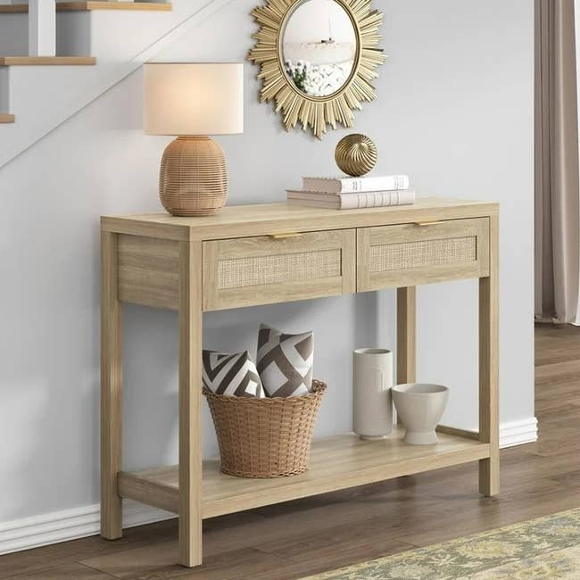 We hope you love our recommendations! While every product is independently chosen by our editors, BuzzFeed and our publishing partners may collect a share of sales or other compensation from the links on this page. You can read more about how our affiliate partnerships work in our Editorial Standards & Ethics Guide. You don’t need a concierge or a massive credit line to turn your home into a sanctuary that rivals the world’s most exclusive resorts. Promising review: "This is a great little table to pair with an armchair or a sectional! Easy to move around and the right size to hold a drink, phone, or remote. Great packaging, arrived with no defects. So happy with the price point and how great it looks with my decor!" —shannon Price: $39.97 (available in two finishes) Promising review: "The PERFECT bookshelf for a smaller space/corner! I've been wanting to put something in this corner for so long, and this bookshelf is the perfect size and is so cute!" —Abby Promising review: "As you can tell, we are big fans of West Elm's mid-century modern design catalog. However, we are larger fans of BHG's uncompromising value, quality, and design. The chairs are remarkably well-made. The swivel is smooth. The fabric is sturdy, yet supple. This is a must-have piece for any home." —BiggE Price: $248+ (available in six colors/styles) Promising review: "Love the price, size, and height of this cart. Very easy to assemble. The gold is a perfect matte gold, not shiny and cheap looking. Perfect fit for a small corner and very versatile. Using now as an accent table. Can’t wait to decorate it for each holiday and turn it into a bar for parties. Great buy!" —Katie Promising review: "Super soft pillowcase! Washed well using the washer and dryer!" —April Price: $26.44 (originally $39.99; available in two colors) Promising review: "Wow, solid mirror, looks great! It's heavy and looks great in my bathroom." —AshleyL Price: $49.97+ (available in two colors and in a four-pack) Promising review: "It adds the perfect modern touch to my living space with its sleek, mid-century style. The matte black finish is clean and elegant, and the two wood shelves are a major bonus — perfect for small plants, books, or decorative pieces. The light it gives off is warm and cozy, great for reading or just creating a relaxing vibe in the room. The assembly was super simple and took me about 15 minutes. I was also impressed with how sturdy it feels once everything is in place. For the price, you really can't beat the value. It's both a lamp and a stylish display piece, all in one. I've already gotten tons of compliments. Definitely recommend this if you want something affordable that still looks high-end!" —Akira Promising review: "Beautiful cabinet... Well worth the money spent. I just put this together. It took this 66-year-old woman about three hours, but the picture instructions were easy to follow. I completed one step at a time and felt a sense of accomplishment. The cabinet is beautiful — much nicer than I anticipated. The wood is heavy and well-made. The hardware used to put it together made me feel that this piece of furniture will not fall apart. It's sturdy! I am very pleased and wholeheartedly recommend." —Sueb22 Price: $79.99+ (available in two colors) Promising review: "It's an amazing quality, super cute, and efficient coffee table. Works great for school and working from home! Don't hesitate, get it!" —Karaliz Price: $145 (available in two colors/finishes) Promising review: "I was pleasantly surprised at how nice these console tables are for the price. They look really high-end, and I love the added storage. I would definitely recommend!" —Anonymous Price: $99.99+ (available in two colors/finishes and in a two-pack) Promising review: "Great quality and design, sturdy, and easy to assemble. Well-made. All wood, with the exception of the sustaining cross bar being metal, which gives it that extra sturdiness. The cushion adds that extra comfort. I was able to assemble it within minutes." —Sandra Price: $103+ (available in two colors/finishes) The set includes four dinner plates, four salad plates, and four bowls. Promising review: "I am OBSESSED with these dishes! I saw them online and ordered them immediately. The quality is amazing. I love the weight of them. The pattern is beautiful, and I love the coordinating pieces. I also ordered a set of coffee mugs and some appetizer plates. They were delivered quickly and packaged nicely to keep all the pieces from breaking. I would love to order more dinner and salad plates and pick them up curbside at my local Walmart. Thank you for a beautiful product!" —April Price: $52.97 (originally $62.88; also available in a three-pack) Promising review: "It was the biggest and widest mirror I could find in this arch shape. Beautiful and worth it. Heavy and sturdy. You can lean it or hang it on a wall." —Viviana Promising review: "I love this ottoman! Honestly, it's exactly what I'm looking for. You can store blankets and stuff inside, which is a bonus, and it's so soft. I'll sit on it when watching TV." —Erika Read more about aromatherapy and stress and tension at Johns Hopkins. Also, according to Johns Hopkins, you may want to avoid diffusing oils around larger groups and young children because of the side effects of different oils. You may also want to avoid using an oil diffuser around pets with breathing problems, according to the ASPCA. Promising review: "This diffuser is amazing! It has the option of turning the light off, and the diffuser will automatically shut off when it runs out of water." —anonymous Promising review: "We have this in our bedroom. It looks quite natural for a faux tree. Very dense leaves. The pot is very small, so it will fit in pretty much any decorative pot. The photo shows the shape accurately. The prices were very good." —jlwether Price: $79.99+ (available in four sizes) Promising review: "Love that this trash ca